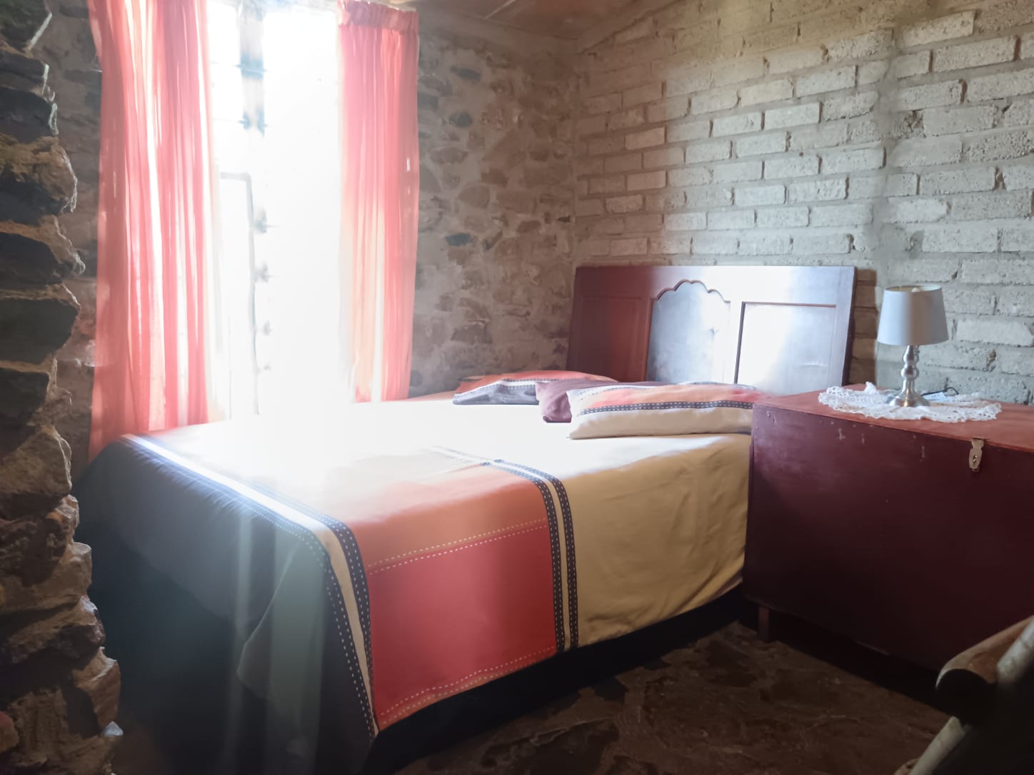 The rustic farmhouse is warm and inviting, featuring 4 well-sized bedrooms and 1 full bathroom. A comfortable living room, braai stoep and built-in bar create an ideal setting for relaxed family time and entertaining friends. Cozy farm kitchen with gas stove leading to living areas.There is plenty of potential to modernise or expand to suit your lifestyle.