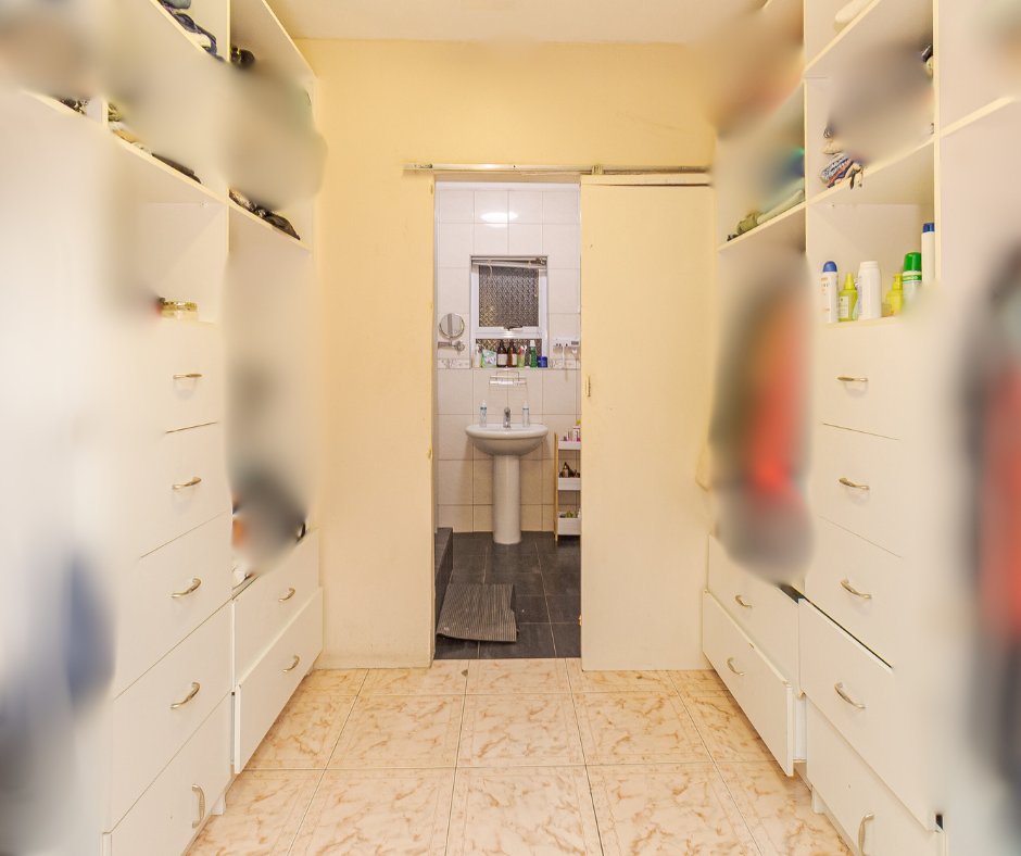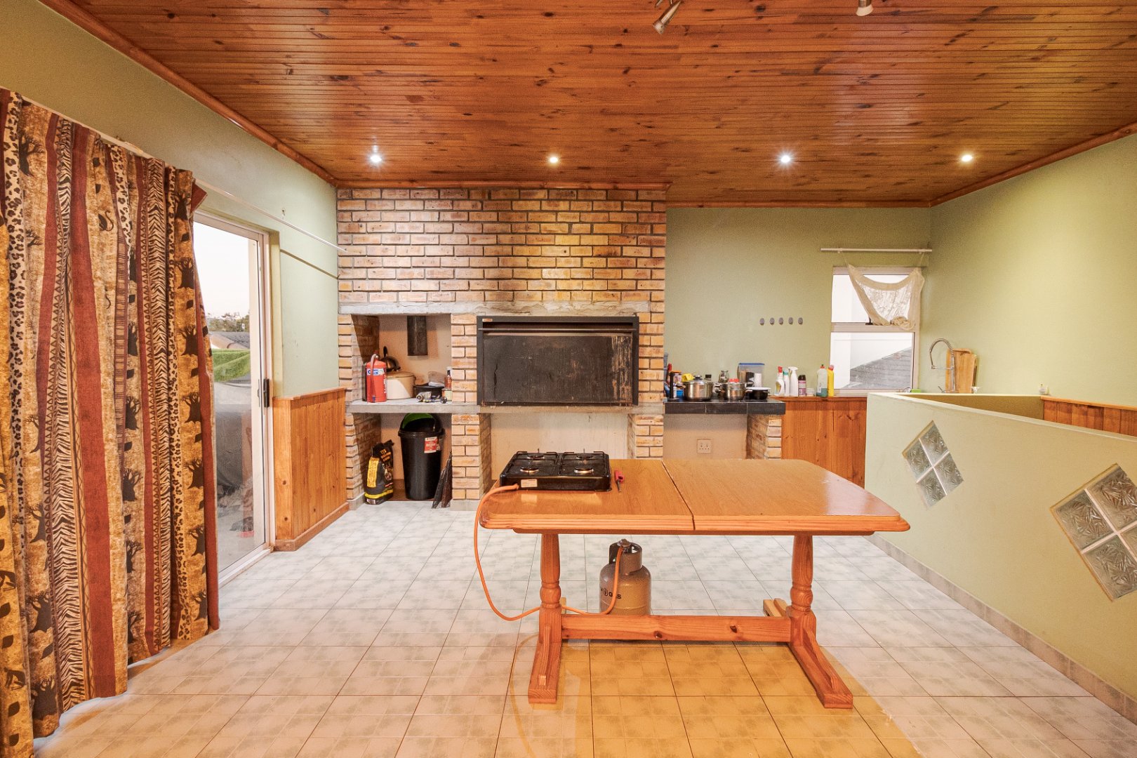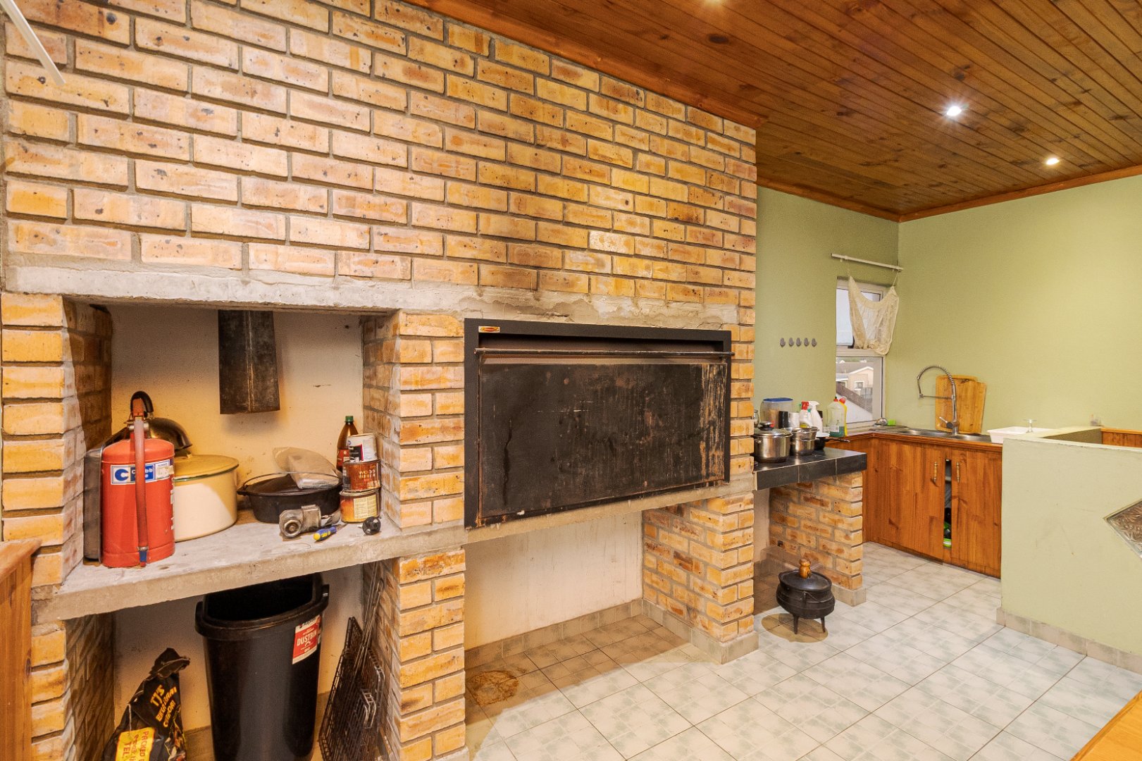 One of the standout features of this home is the upstairs entertainment area. Complete with a built-in braai and sliding doors that lead to stairs down to the backyard, this space is perfect for weekend get-togethers or quiet family evenings. The large backyard offers space for kids to play, a built-in fire pit for outdoor socialising, and plenty of room to relax.