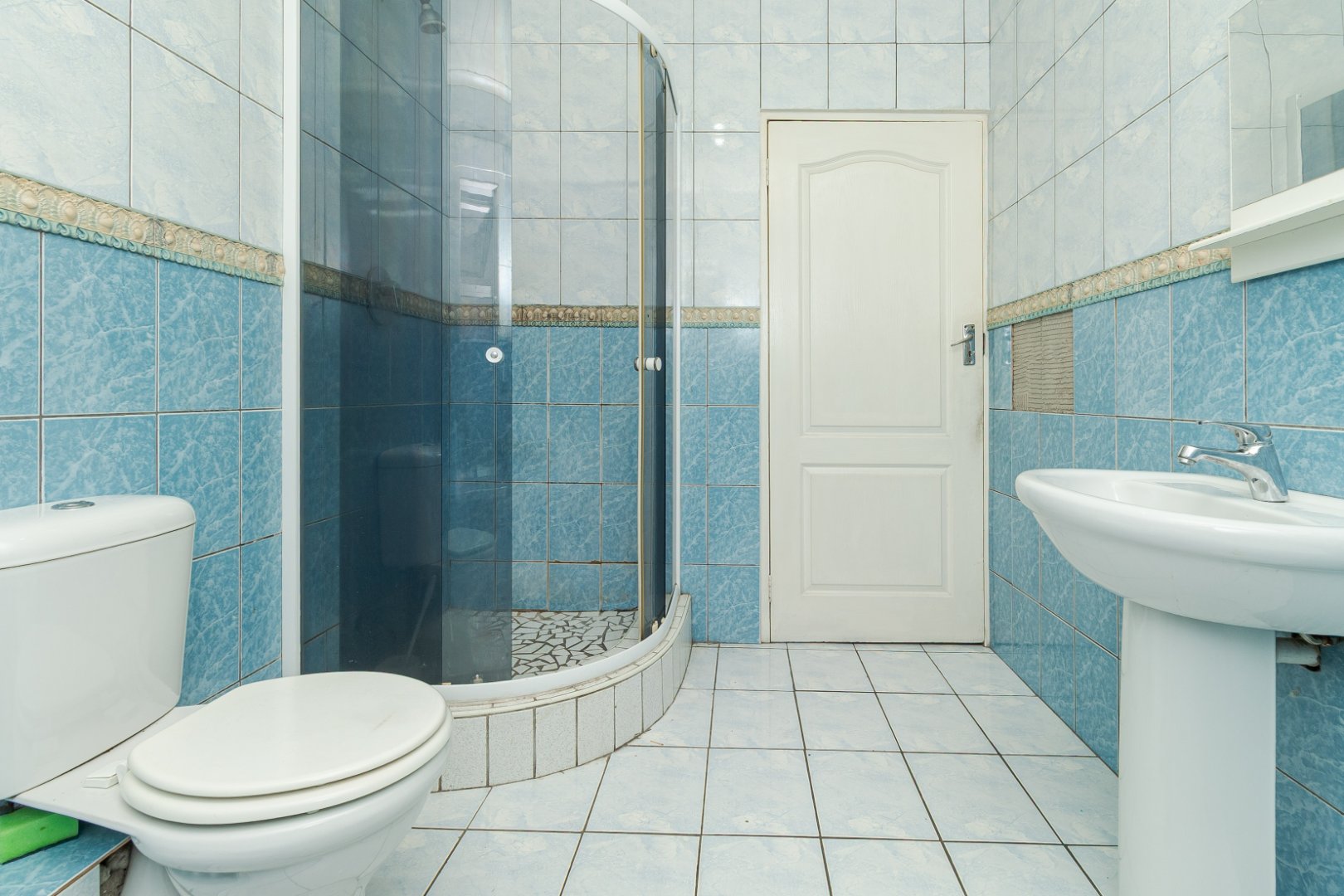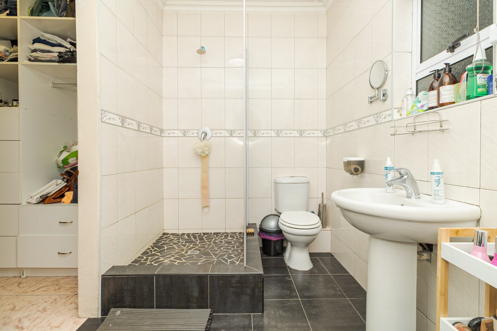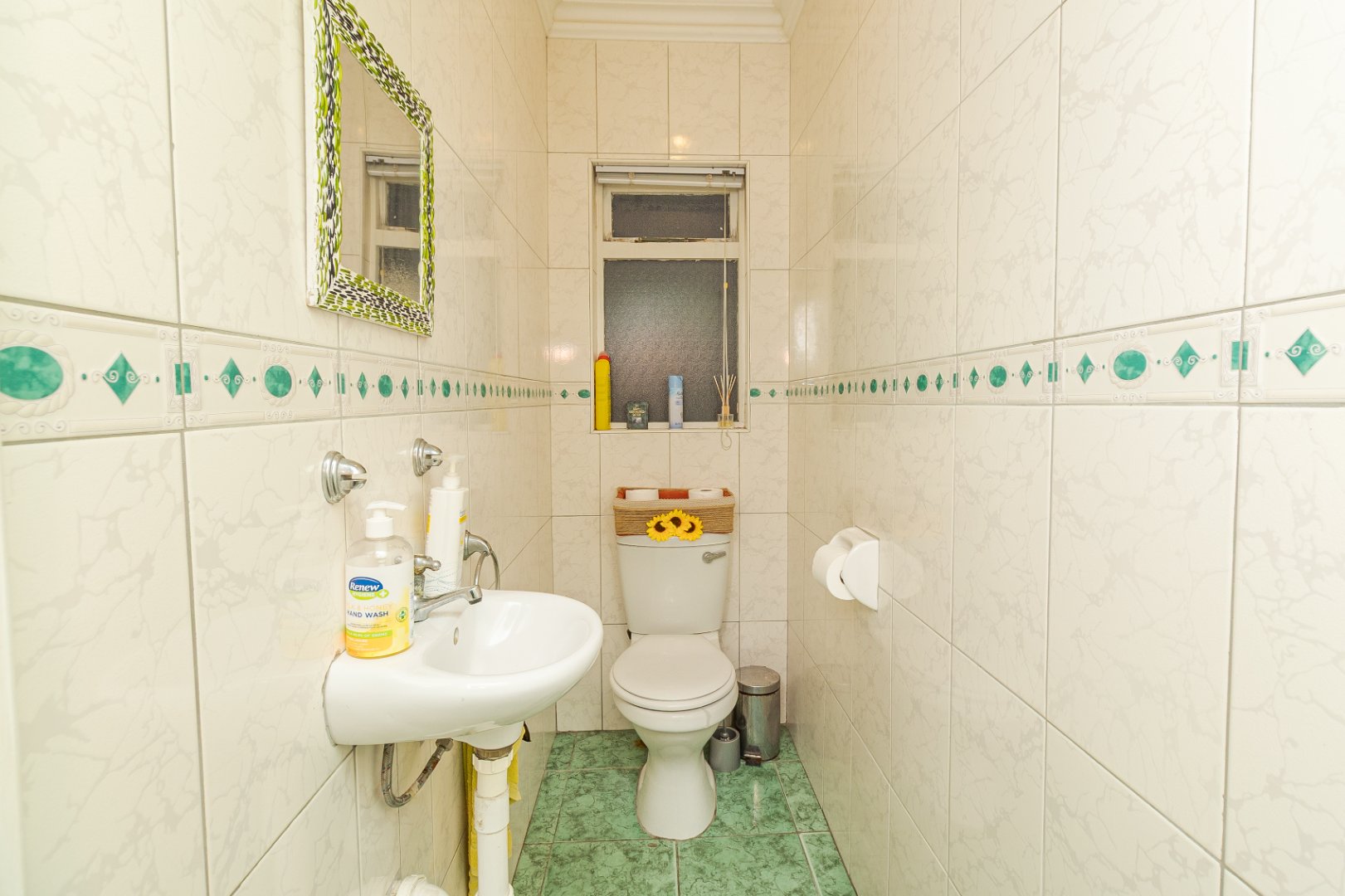 The main bedroom is conveniently situated downstairs and includes built-in cupboards and an en-suite bathroom, providing a private retreat for parents or extended family members. A guest toilet on the ground floor adds further convenience.