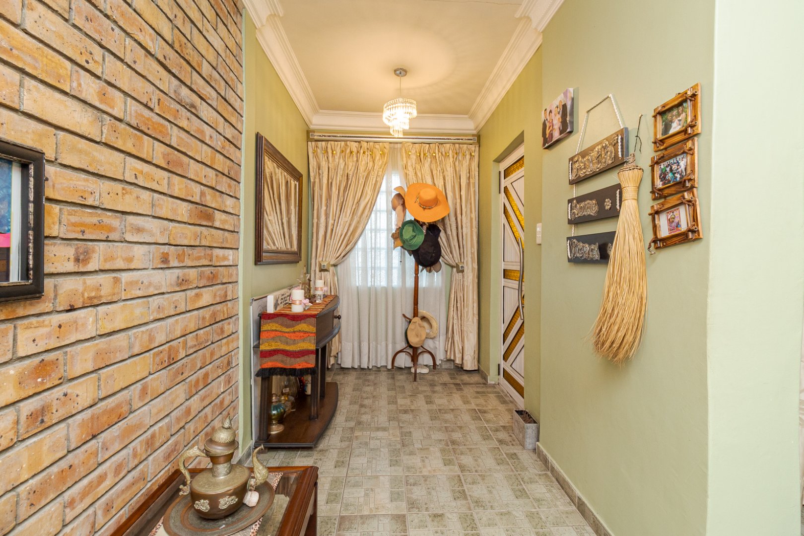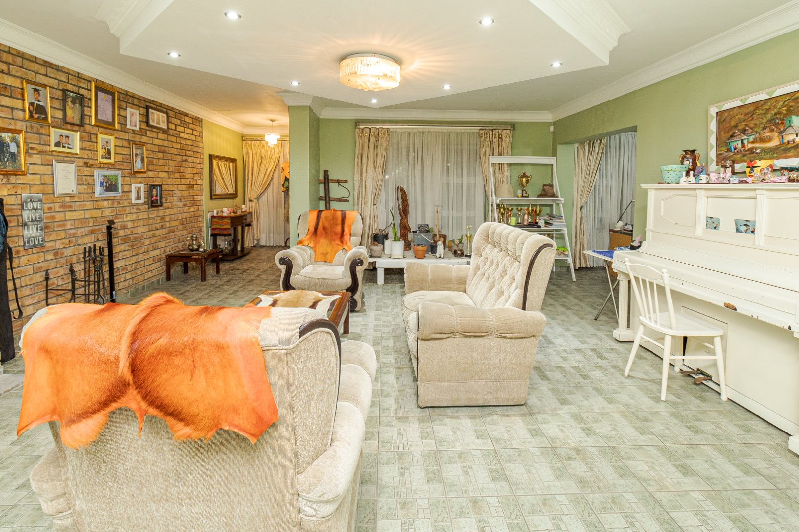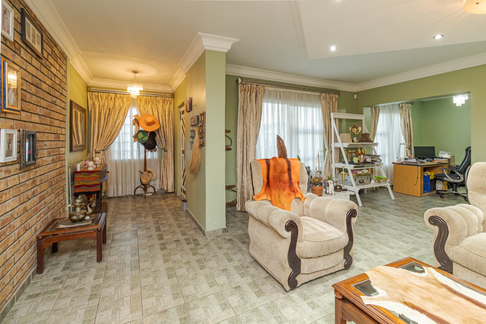 In addition to the main house, there is a versatile flatlet or storeroom that can be used for guests, storage, or as a work-from-home area. A double garage provides secure parking for two vehicles, with additional parking space available on the paved driveway.