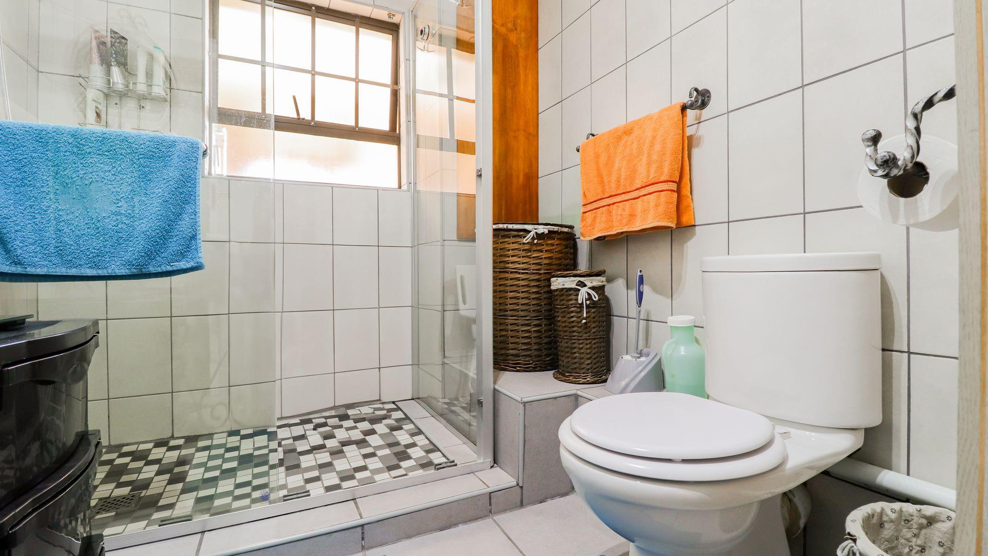 The apartment features a well-appointed bathroom with a shower, basin and toilet. It's designed to provide comfort and convenience, with enough space for all your essentials.