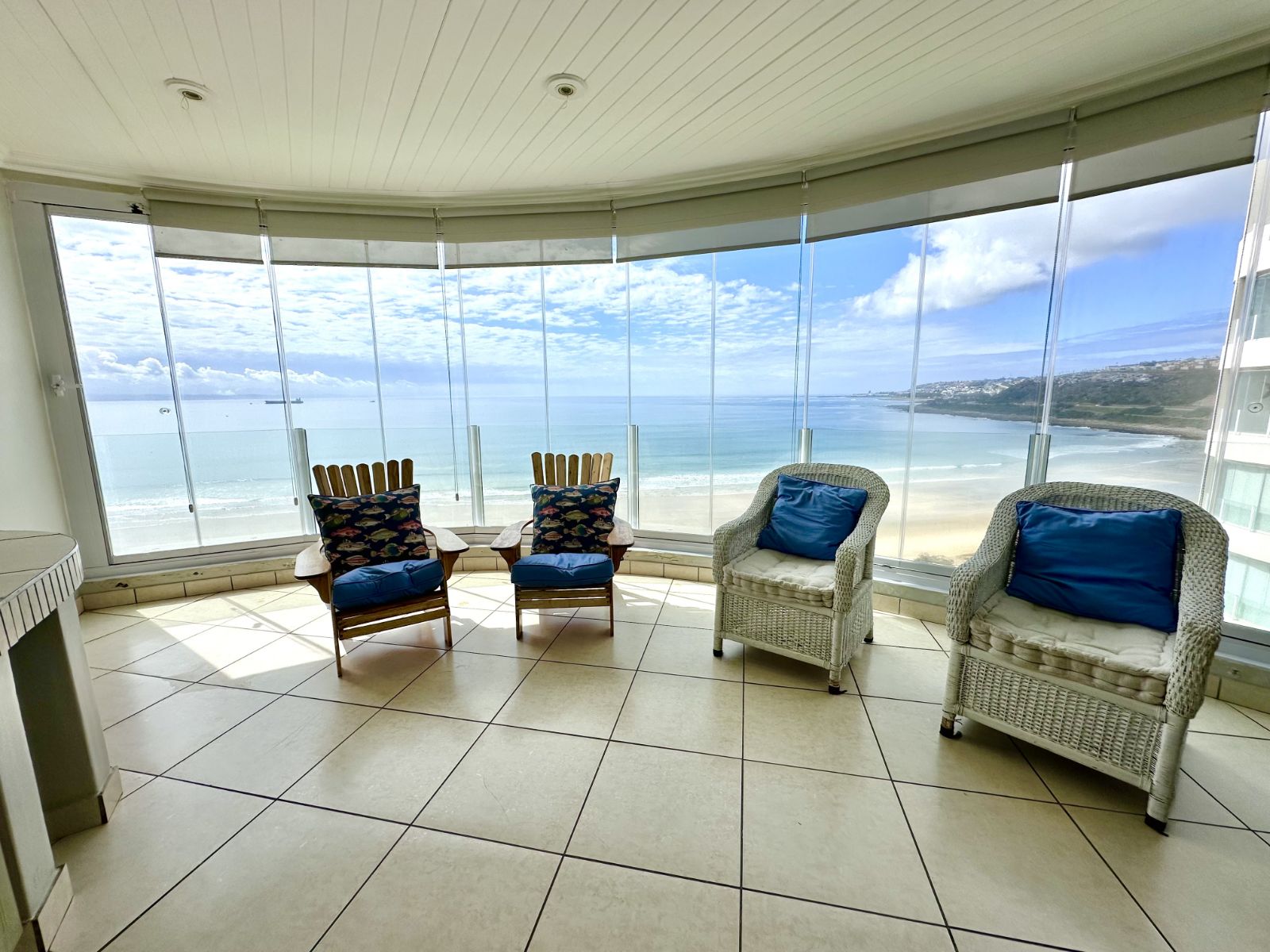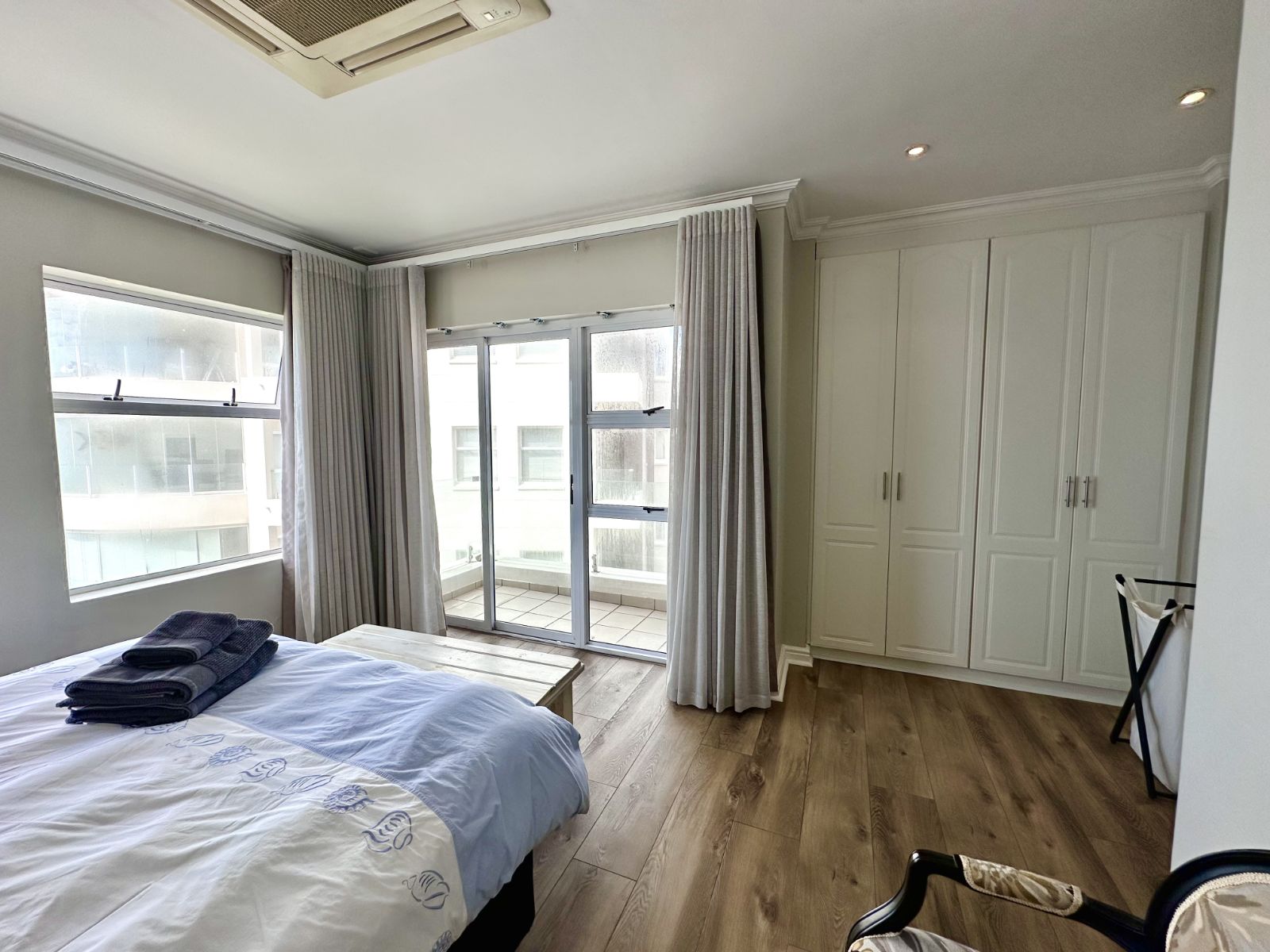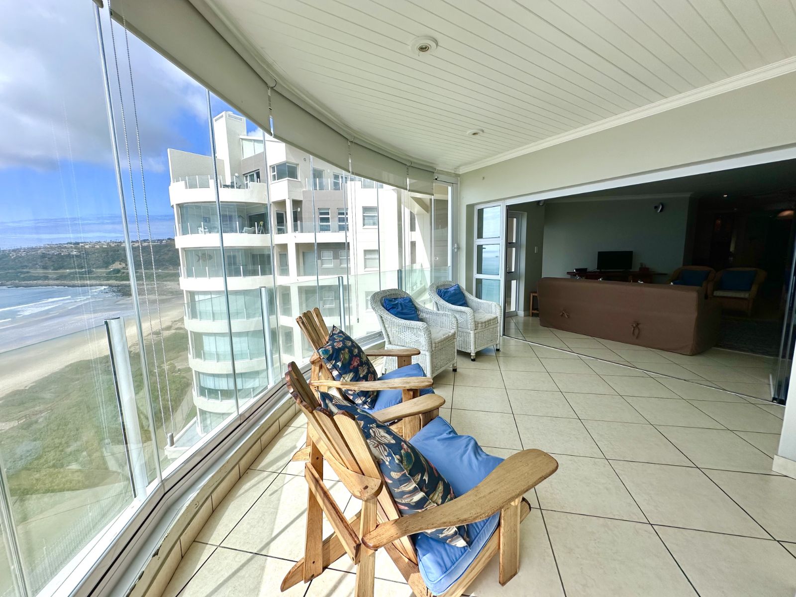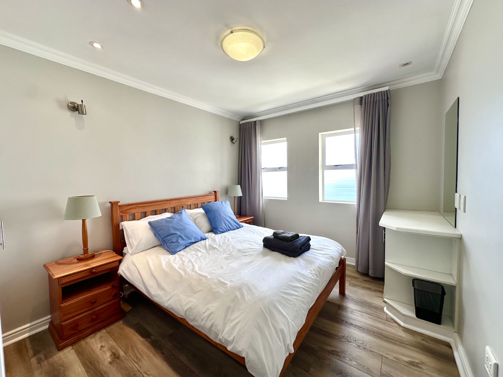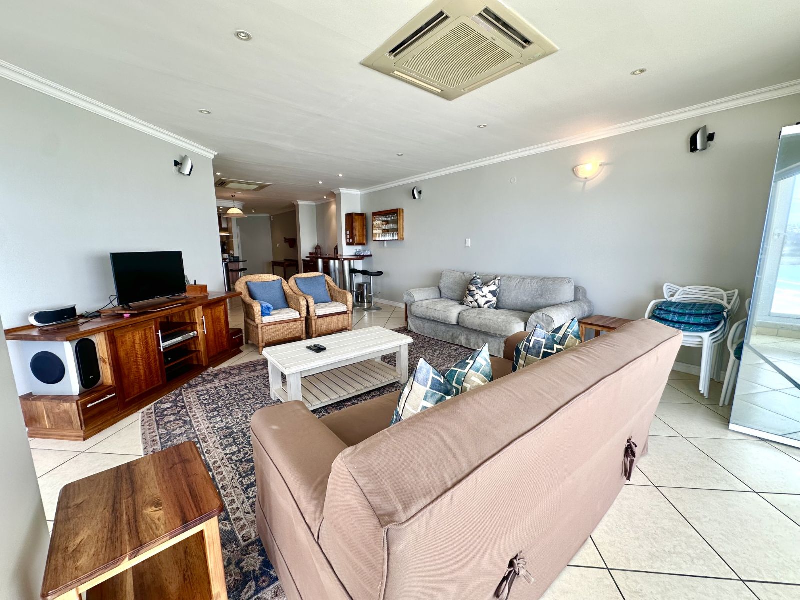 Inside, the apartment features three spacious en suite bedrooms, each providing a private retreat. There is also a guest bathroom for added convenience. The open-plan living area includes a well-appointed kitchen with a scullery, a stylish dining area, and a cozy lounge, ideal for both relaxation and entertaining. A separate bar area adds a touch of luxury, and the patio, with its glass doors and built-in gas braai, is perfect for enjoying the coastal breeze and stunning views while dining outdoors.