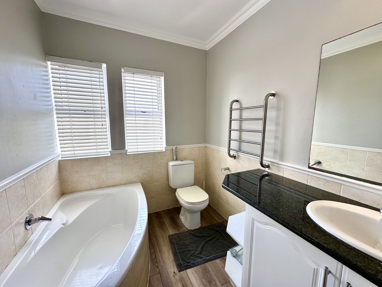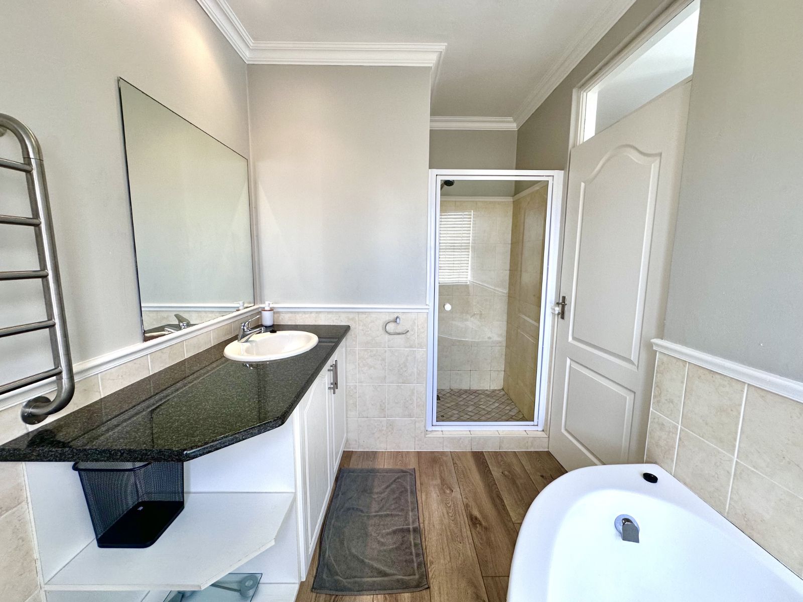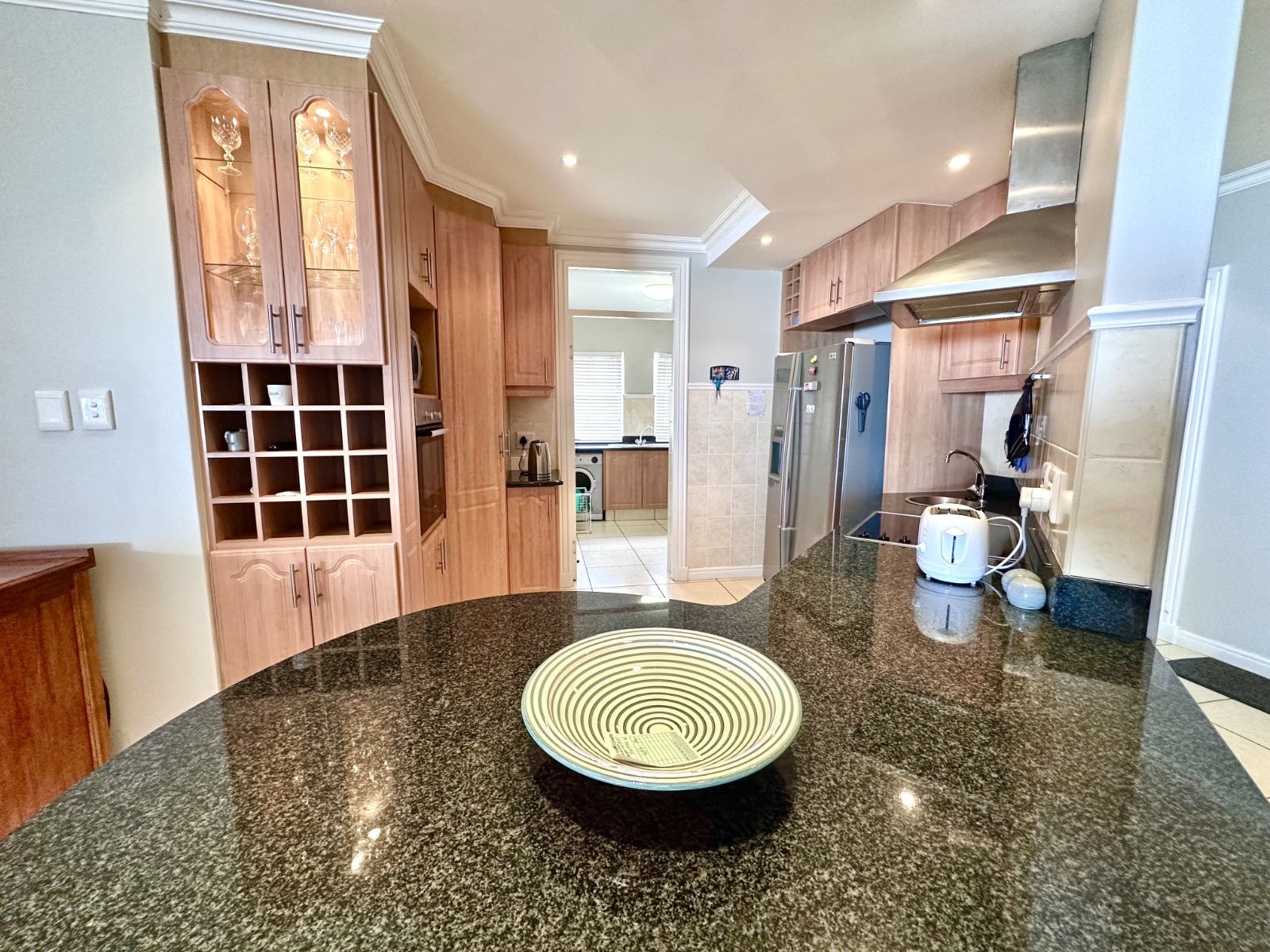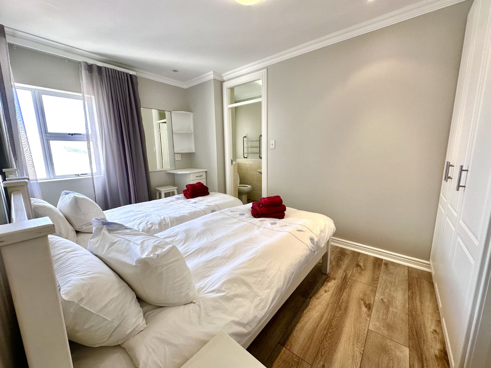 Inside, the apartment features three spacious en suite bedrooms, each providing a private retreat. There is also a guest bathroom for added convenience. The open-plan living area includes a well-appointed kitchen with a scullery, a stylish dining area, and a cozy lounge, ideal for both relaxation and entertaining. A separate bar area adds a touch of luxury, and the patio, with its glass doors and built-in gas braai, is perfect for enjoying the coastal breeze and stunning views while dining outdoors.
