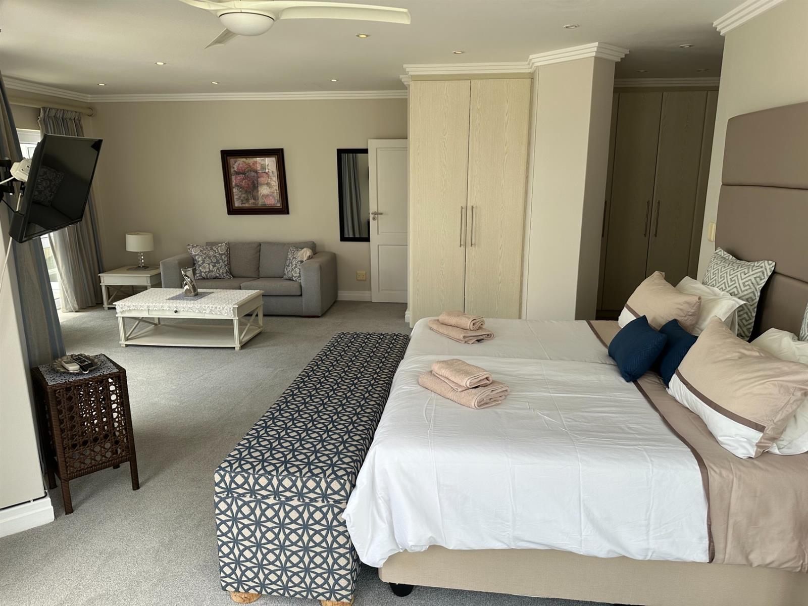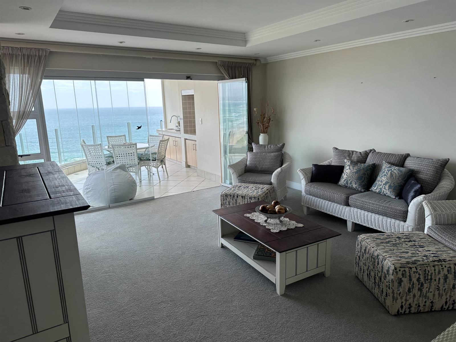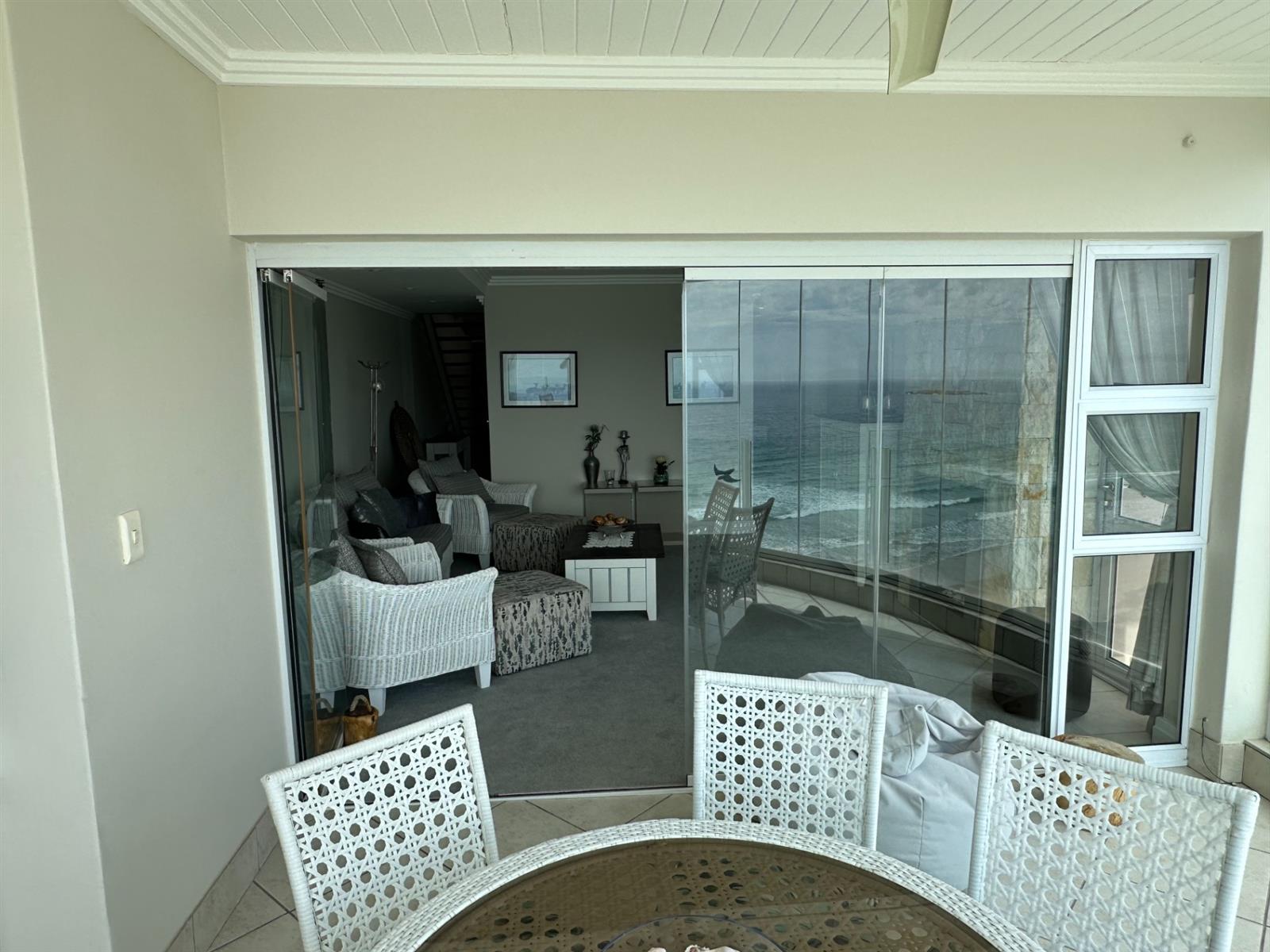 The primary en-suite bedroom takes pride of place on the upper level, featuring a personalised design, private balconies, and panoramic views of the magnificent South African coastline. A small kitchenette adds convenience and a touch of luxury to this serene retreat.