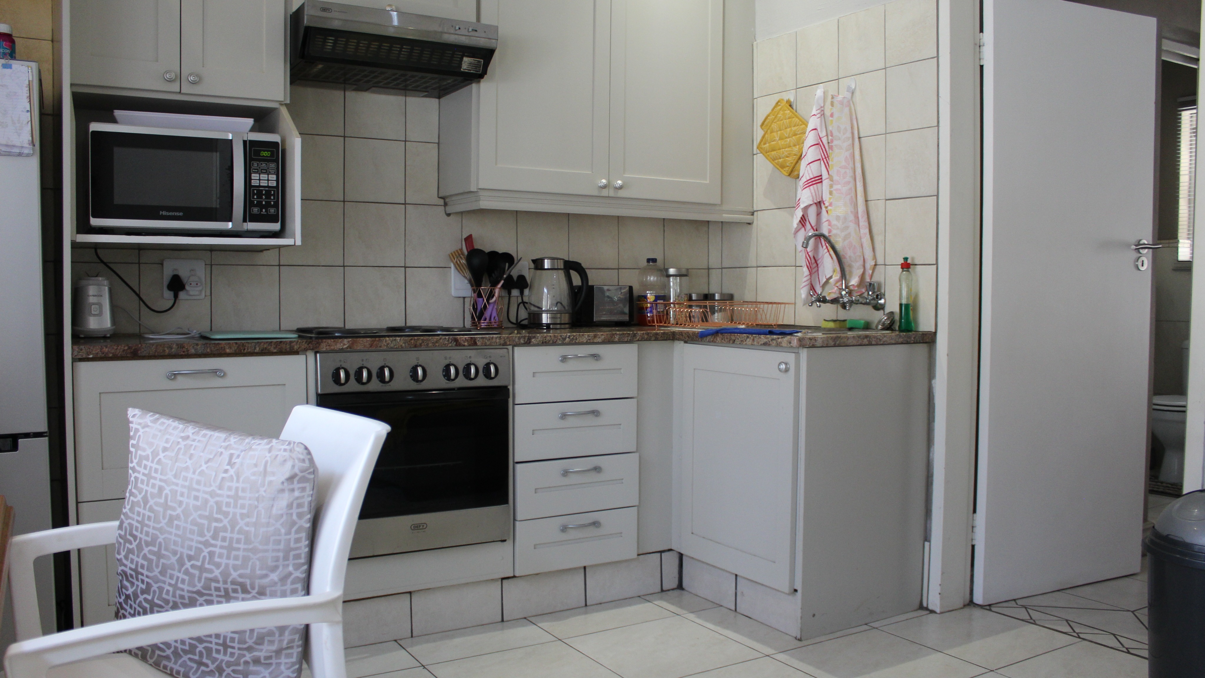 The complex has a shimmering blue pool and braai area for communal use. Security features of the flat include burglar bars and security doors, whilst the complex has a perimeter wall, electric fencing and access control... just to name a few special features.