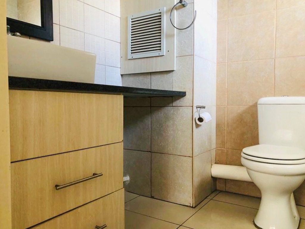 The well-sized bedroom includes built-in cupboards, providing ample storage space, while the neat bathroom is fitted with a shower, basin, and toilet for your convenience. Occupation can be arranged immediately upon delivery of guarantees.