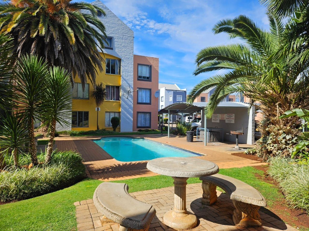 Residents enjoy access to a variety of communal amenities, including a sparkling pool for relaxation, a communal braai area perfect for social gatherings, and on-site laundry facilities for added convenience.