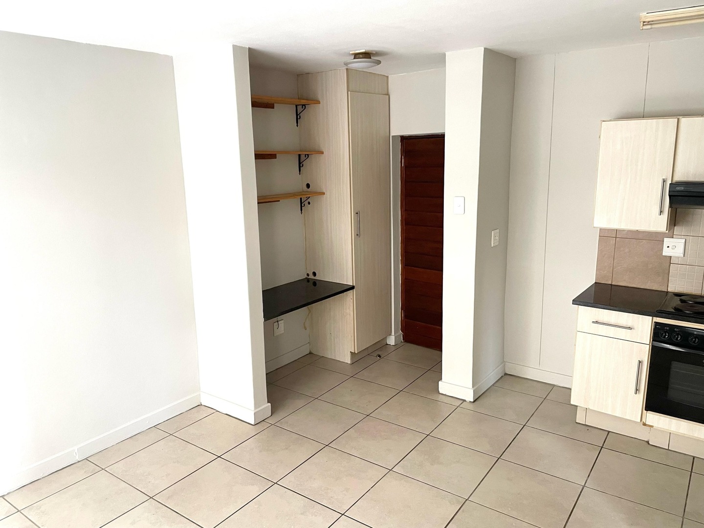 -Modern Kitchen, with an undercounter oven and stove top.