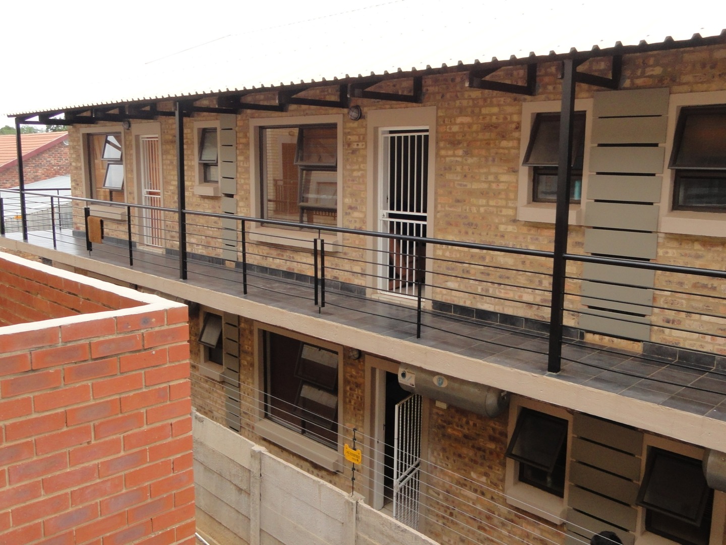 Ruim een slaapkamer woonstel naby aan die Noord-Wes Universiteit se Potchefstroom Kampus. Die eenheid het ‘n oop plan sitkamer en kombuis. Volle badkamer met stort in. Geleë naby die Noord-Wes Universiteit in ‘n veilige, stil straat. Ekstra veiligheids aspekte soos die veiligheidshek by die voordeur en die afstandbeheerde hek en elektriese omheining verseker studente se veiligheid in die kompleks. Elke woonstel het geallokeerde parkeer plek.