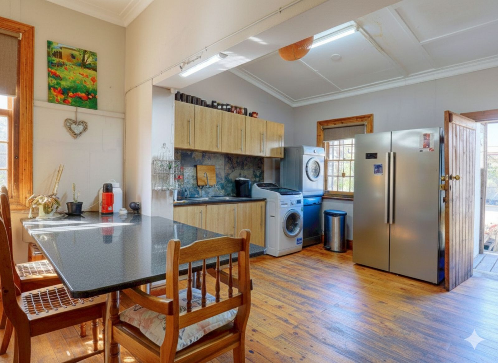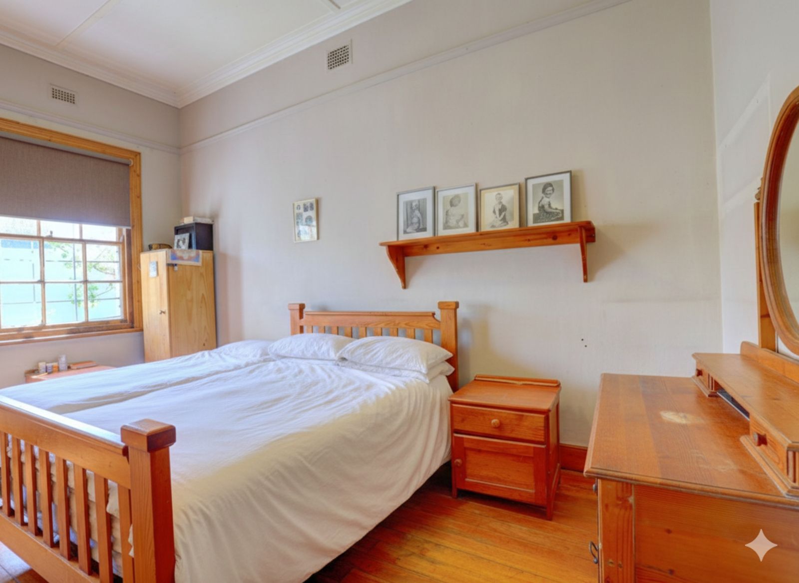 This exceptionally scarce property offers a rare blend of vintage character and heartwarming charm, making it feel like home the moment you step inside. The residence is defined by its beautifully maintained original features, including classic wooden flooring, wooden window frames, and wooden door frames that add a sense of timeless elegance to every room. The main house is designed for comfort, boasting three remarkably spacious bedrooms and a neat full bathroom. The living areas are equally impressive, featuring a cozy lounge and an expansive kitchen that provides plenty of room for family gatherings and culinary creativity.