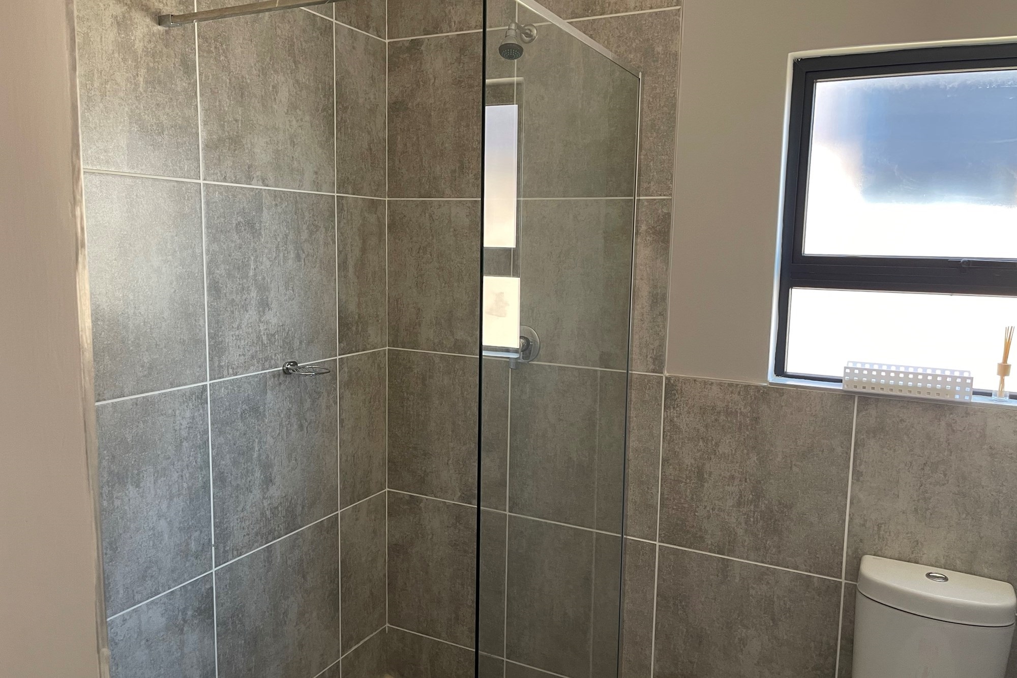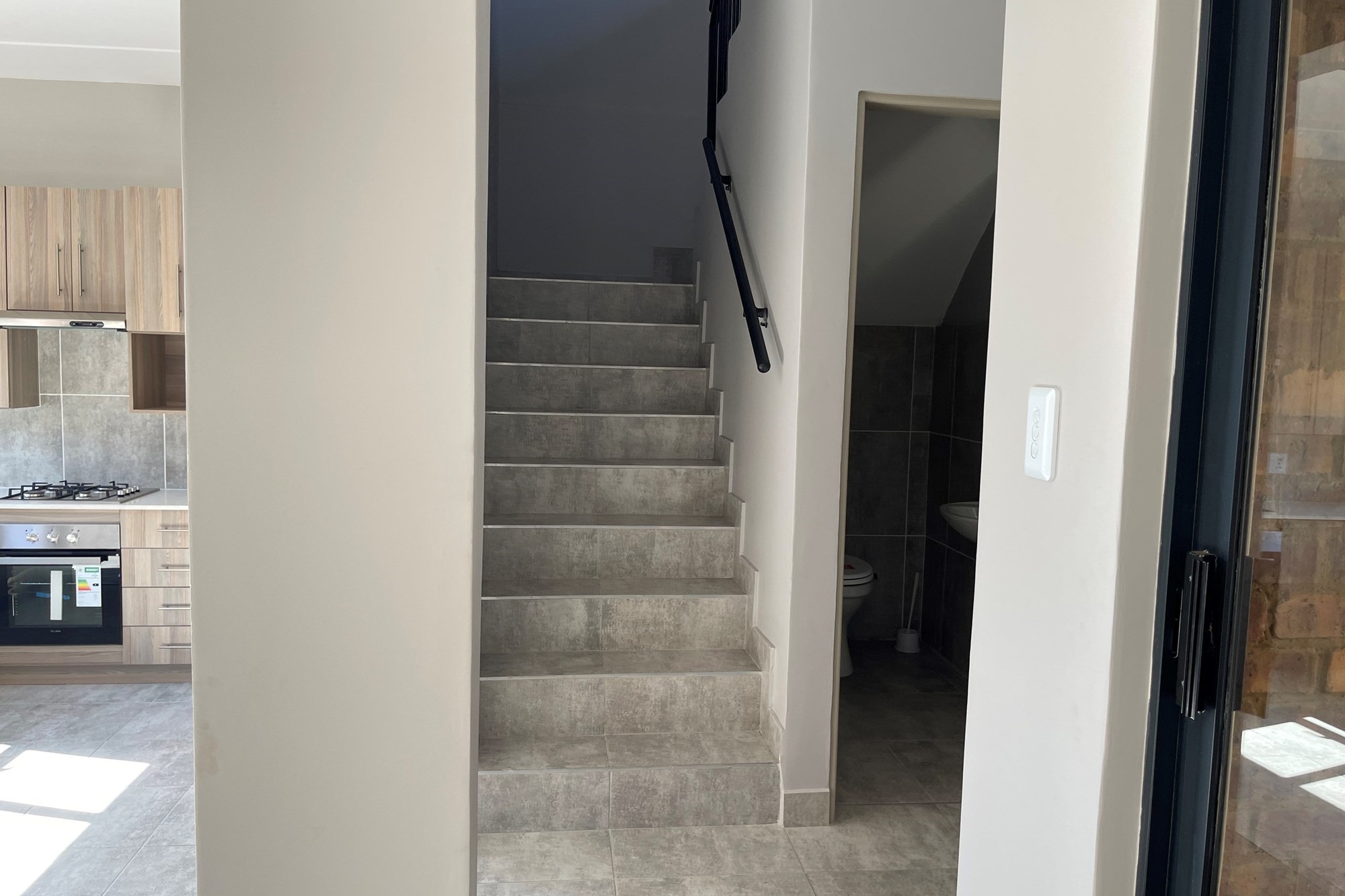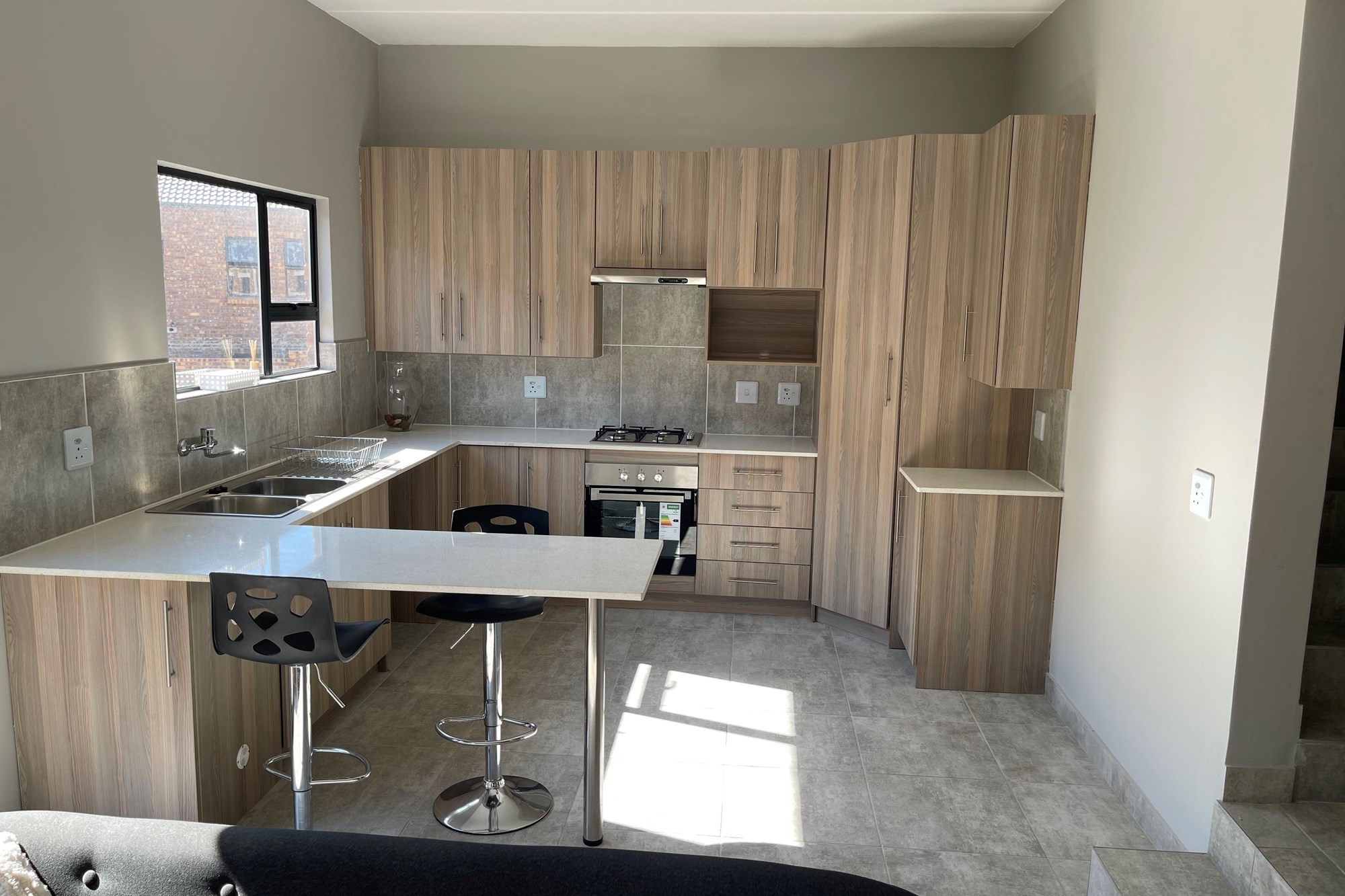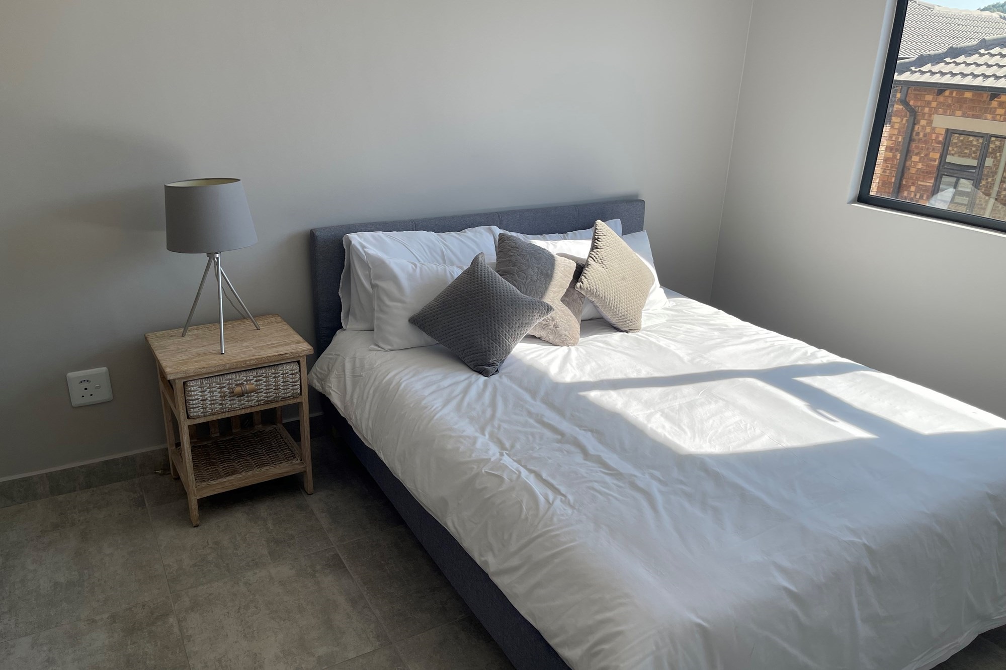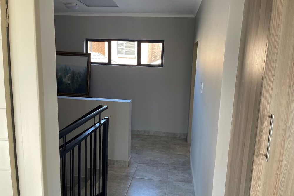 This double story apartment offers 3 bedrooms, master bedroom is en-suite, bathroom with a shower, separate toilets including a quest toilet, living area, dining area and a nice kitchen with wooden cupboards.