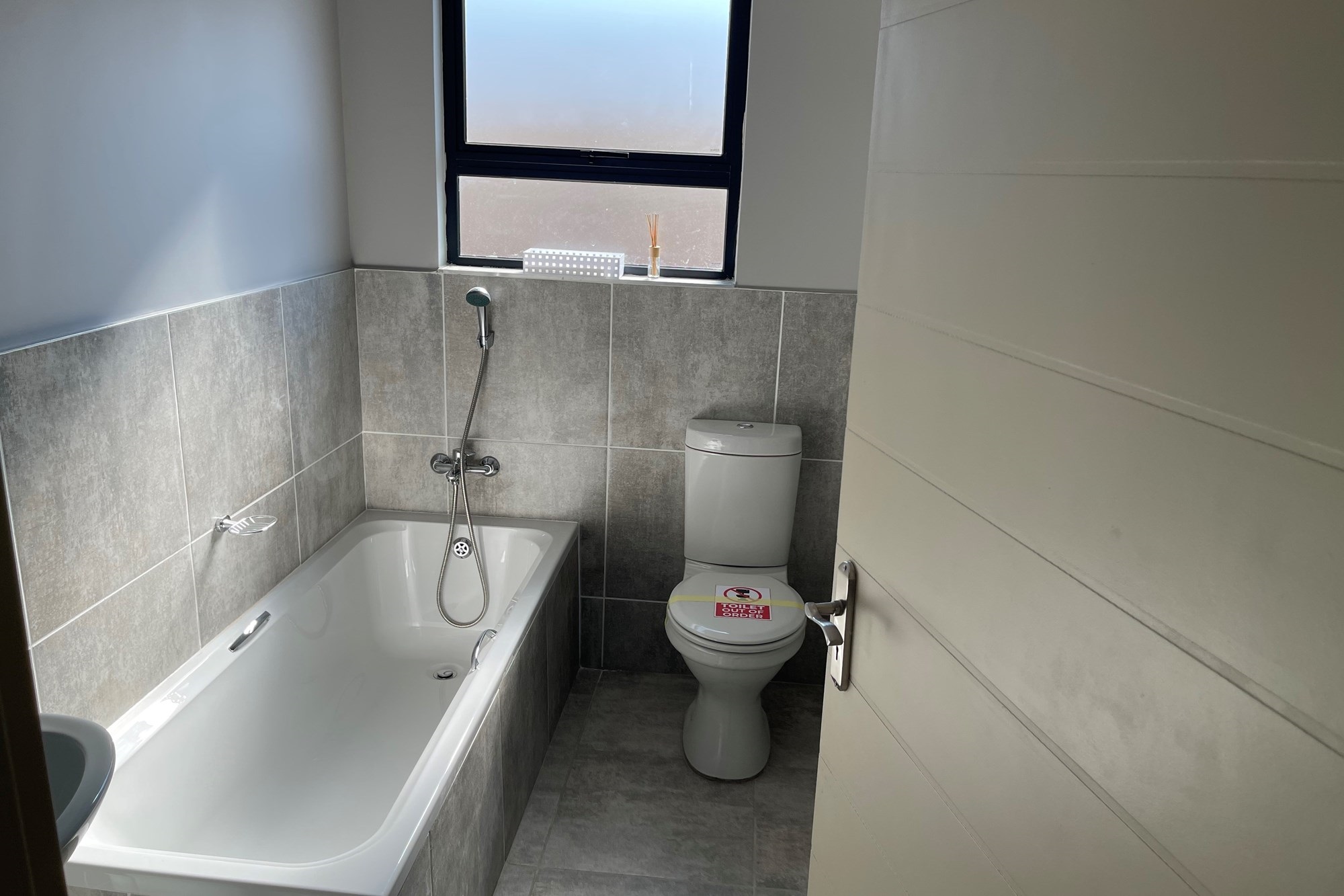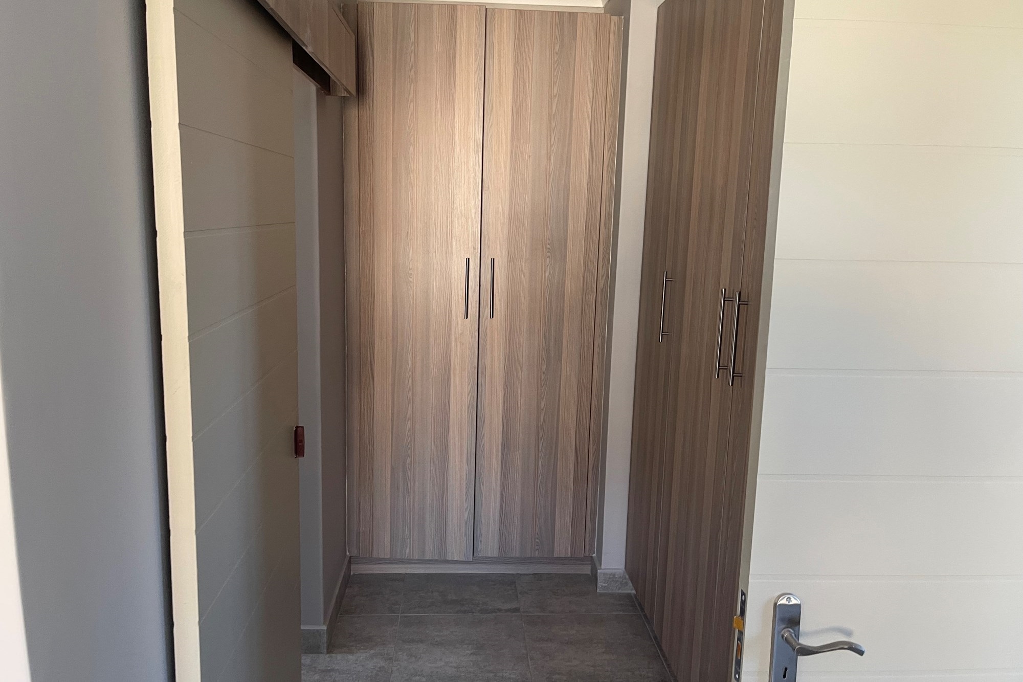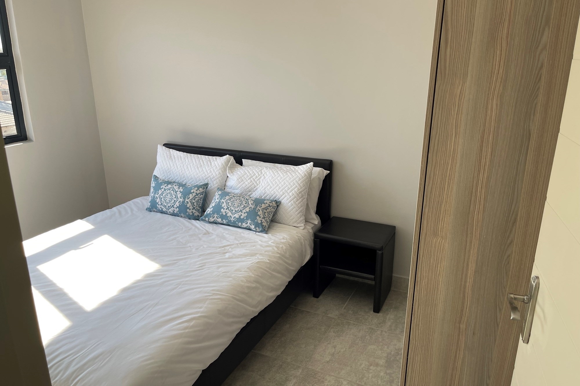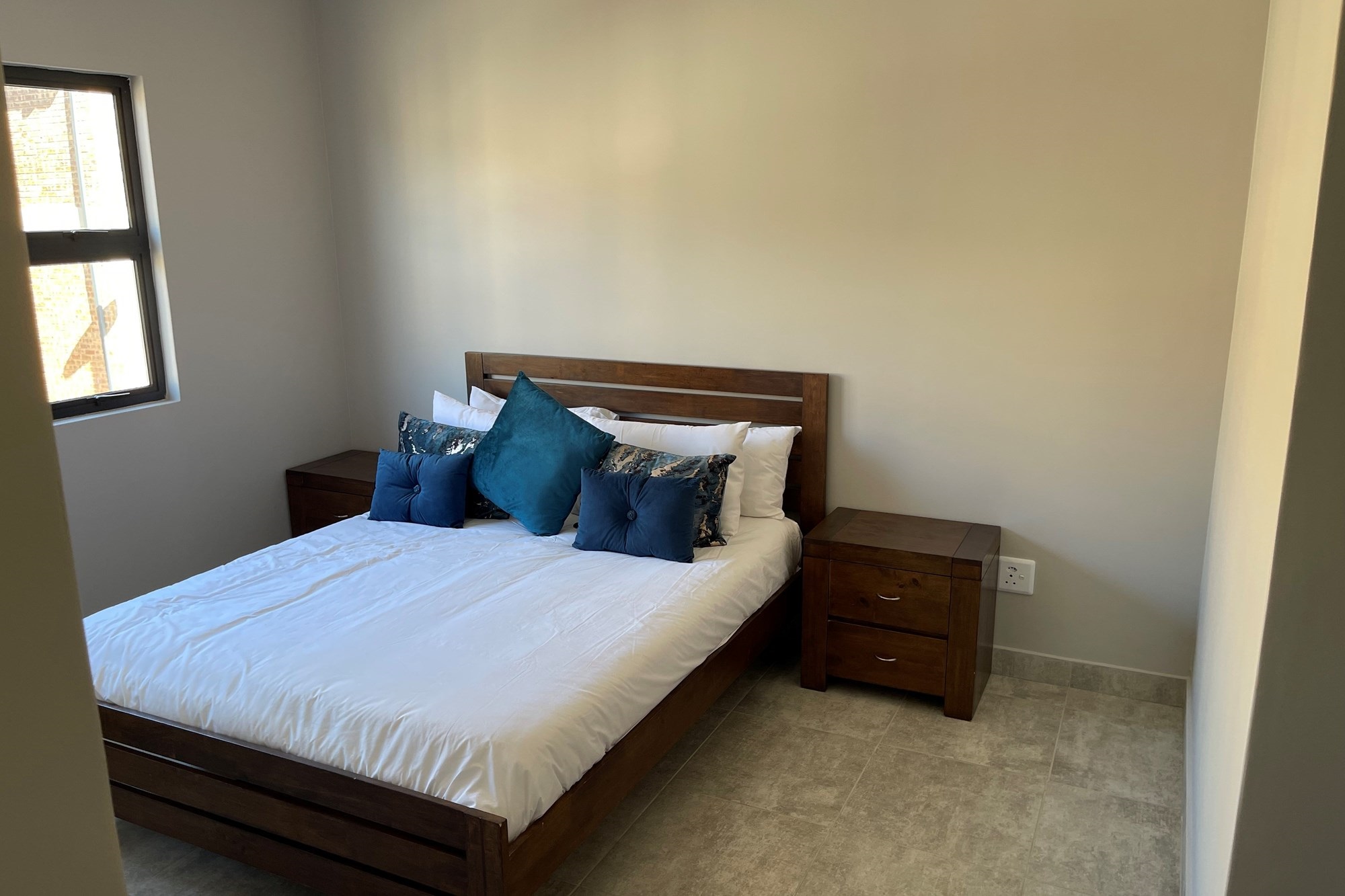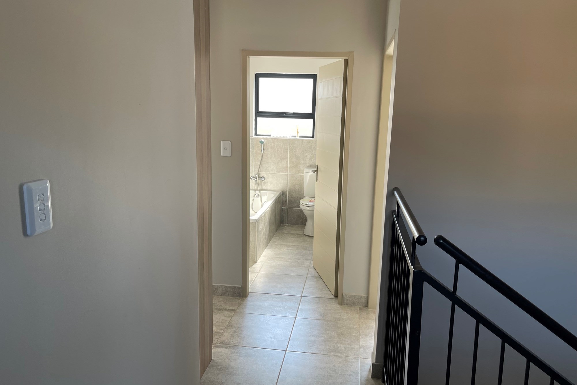 This double story apartment offers 3 bedrooms, master bedroom is en-suite, bathroom with a shower, separate toilets including a quest toilet, living area, dining area and a nice kitchen with wooden cupboards.