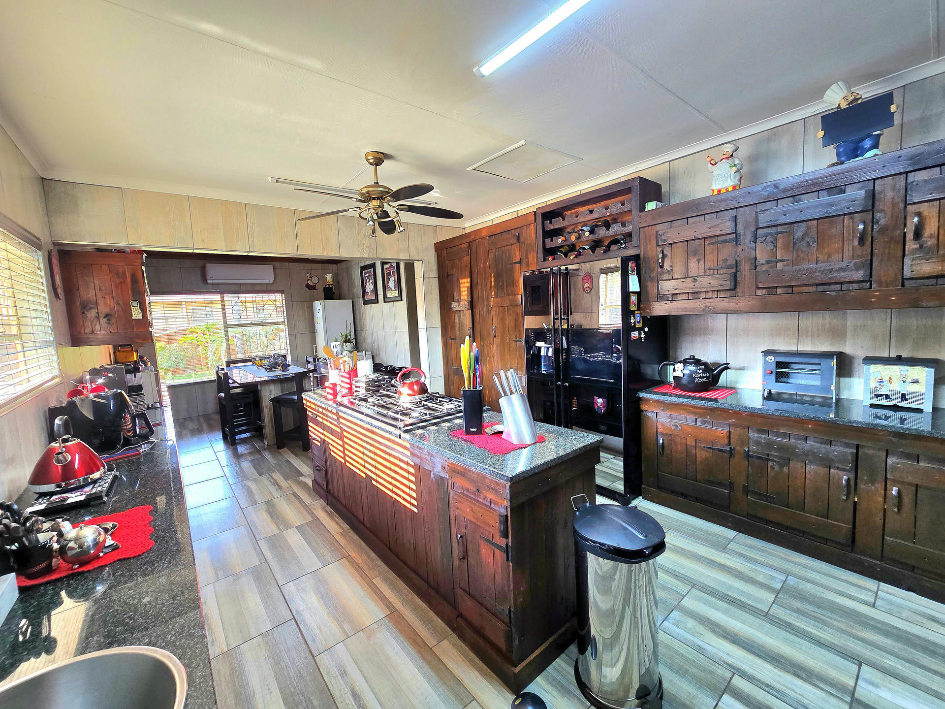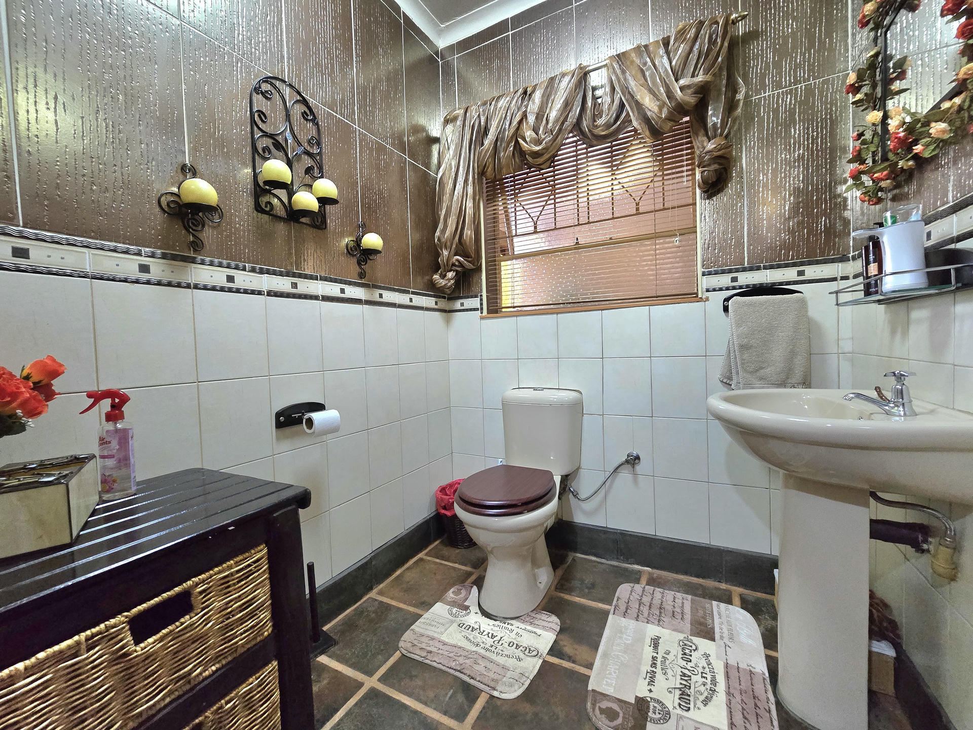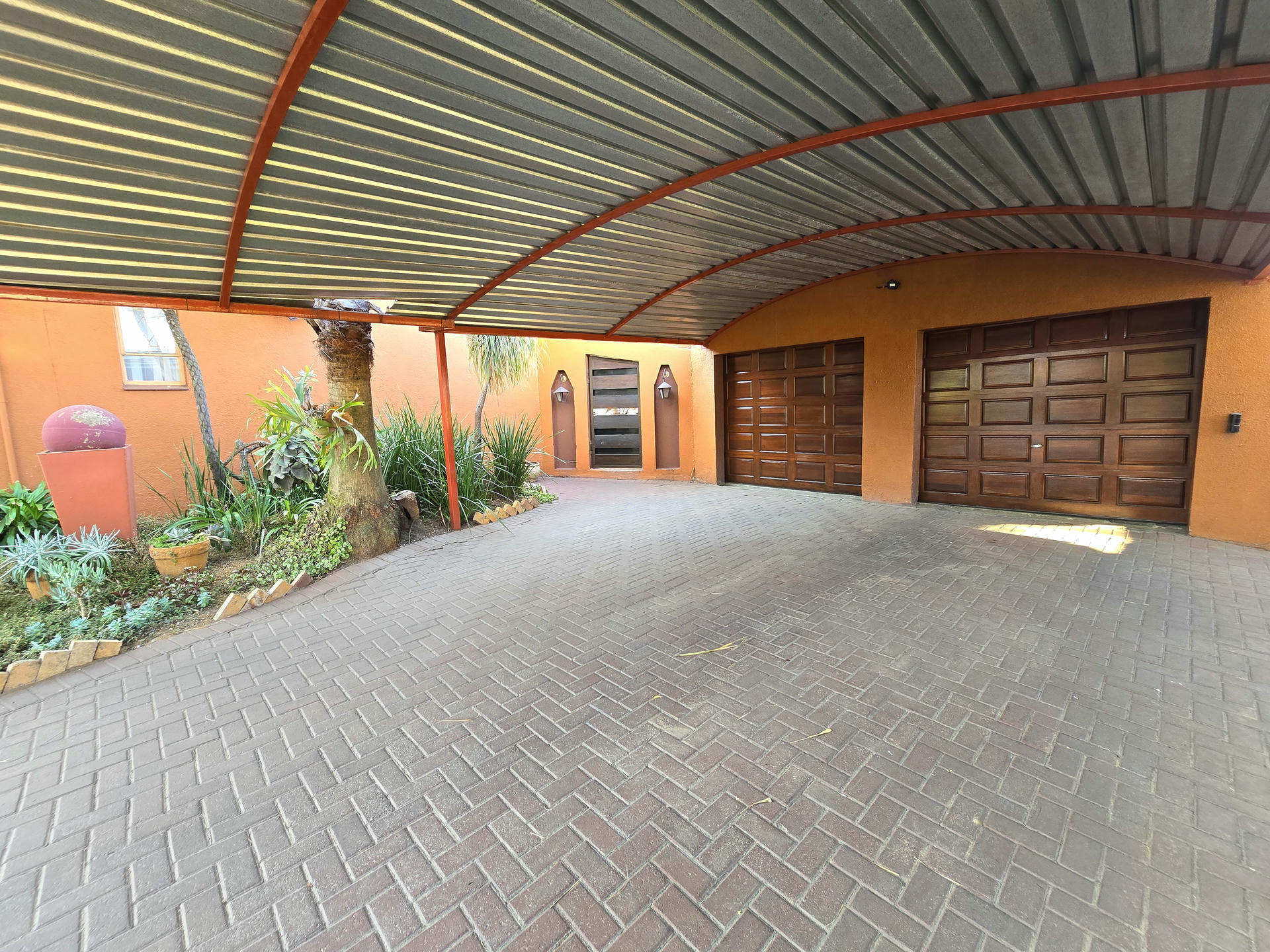 The outdoor spaces are equally inviting, offering a sparkling heated swimming pool, lush landscaped gardens, koi pond, and a large covered entertainment area complete with built-in braai and bar. Whether it is family gatherings or relaxed weekends, this property is designed for year-round enjoyment. Inside, air conditioning in the main bedroom, dining/kitchen, and lounge ensures cool comfort during summer months, complemented by a cozy fireplace for winter evenings. Secure parking is provided by four garages and large carports, offering ample space for multiple vehicles.