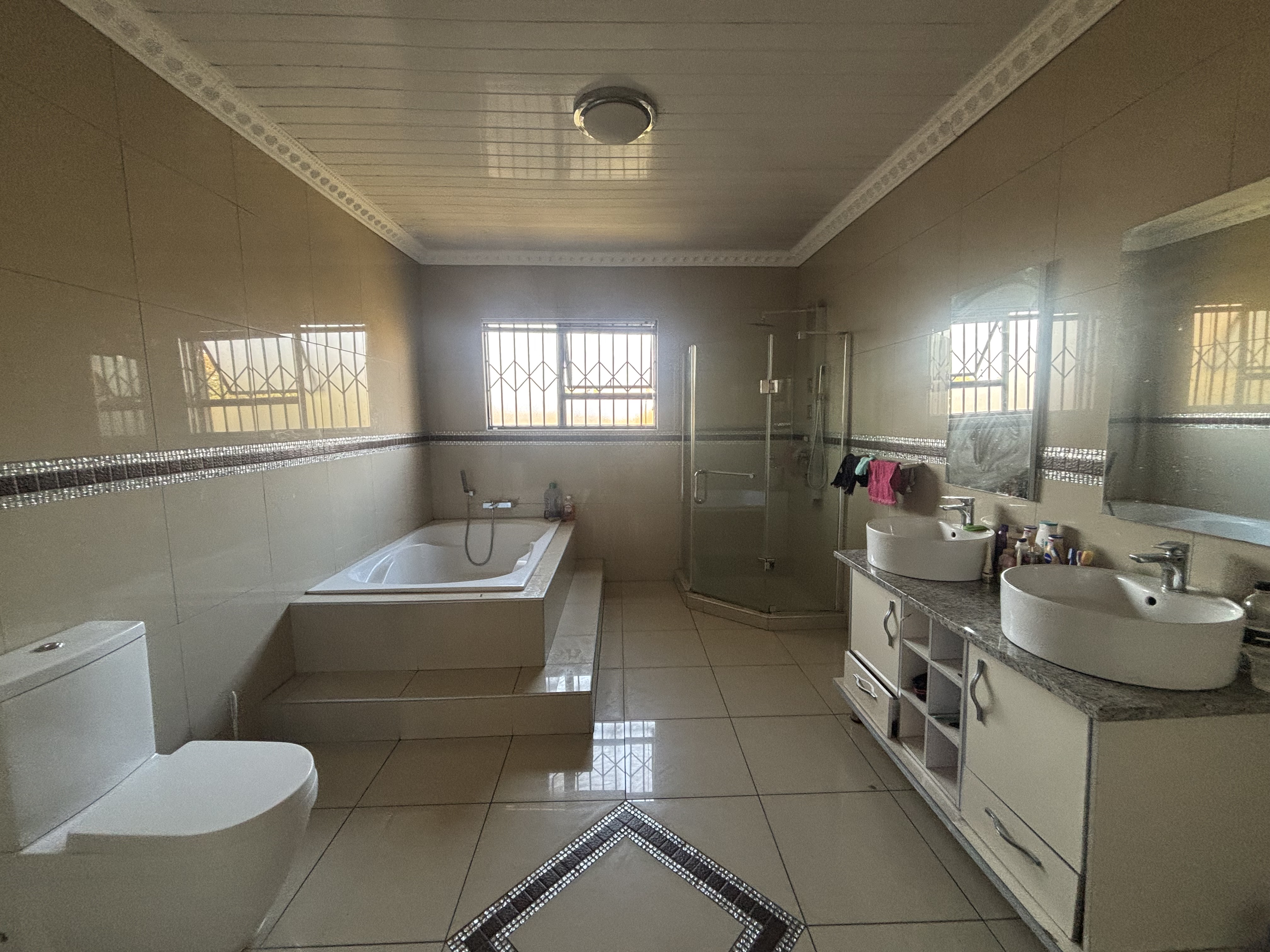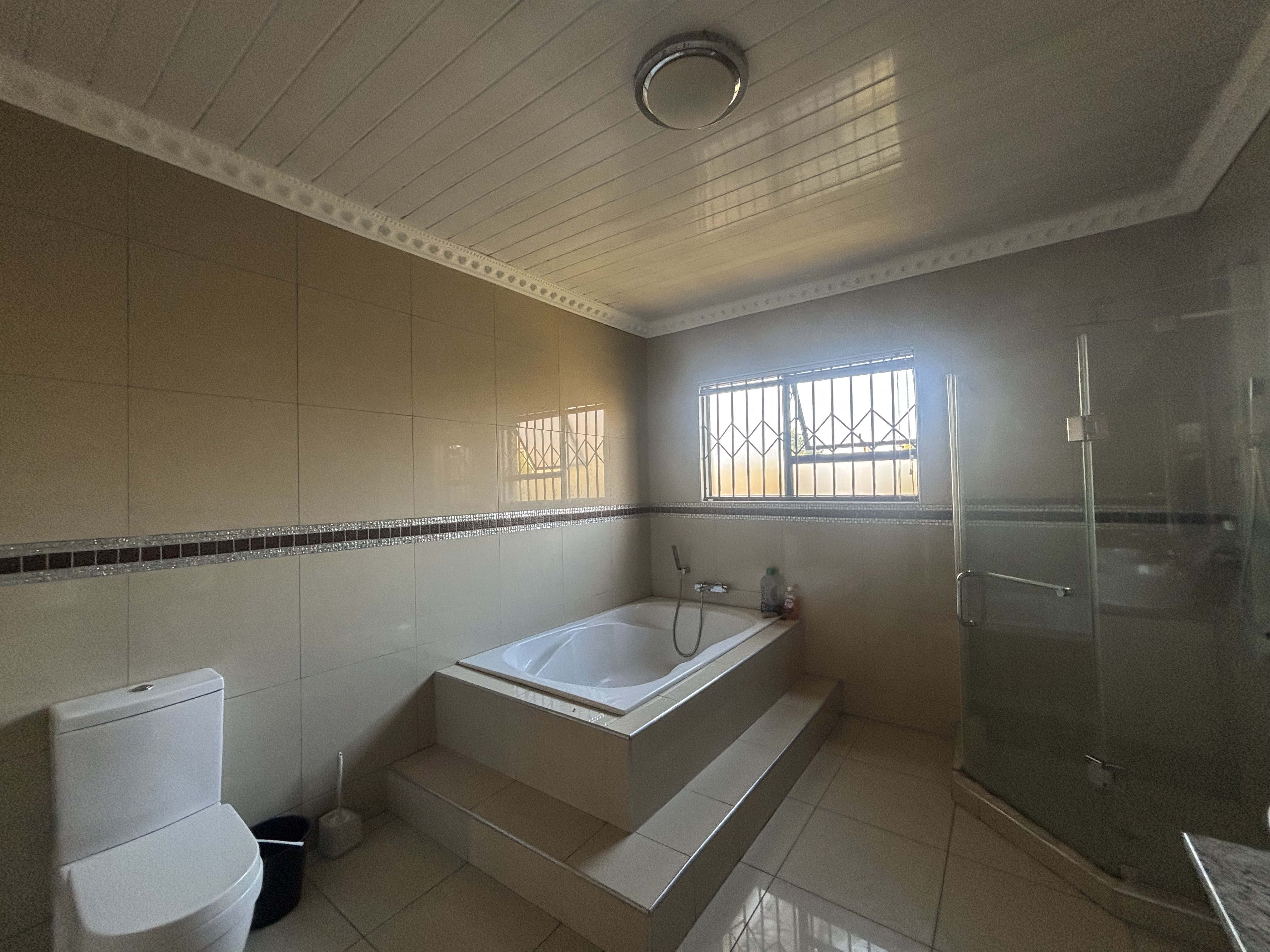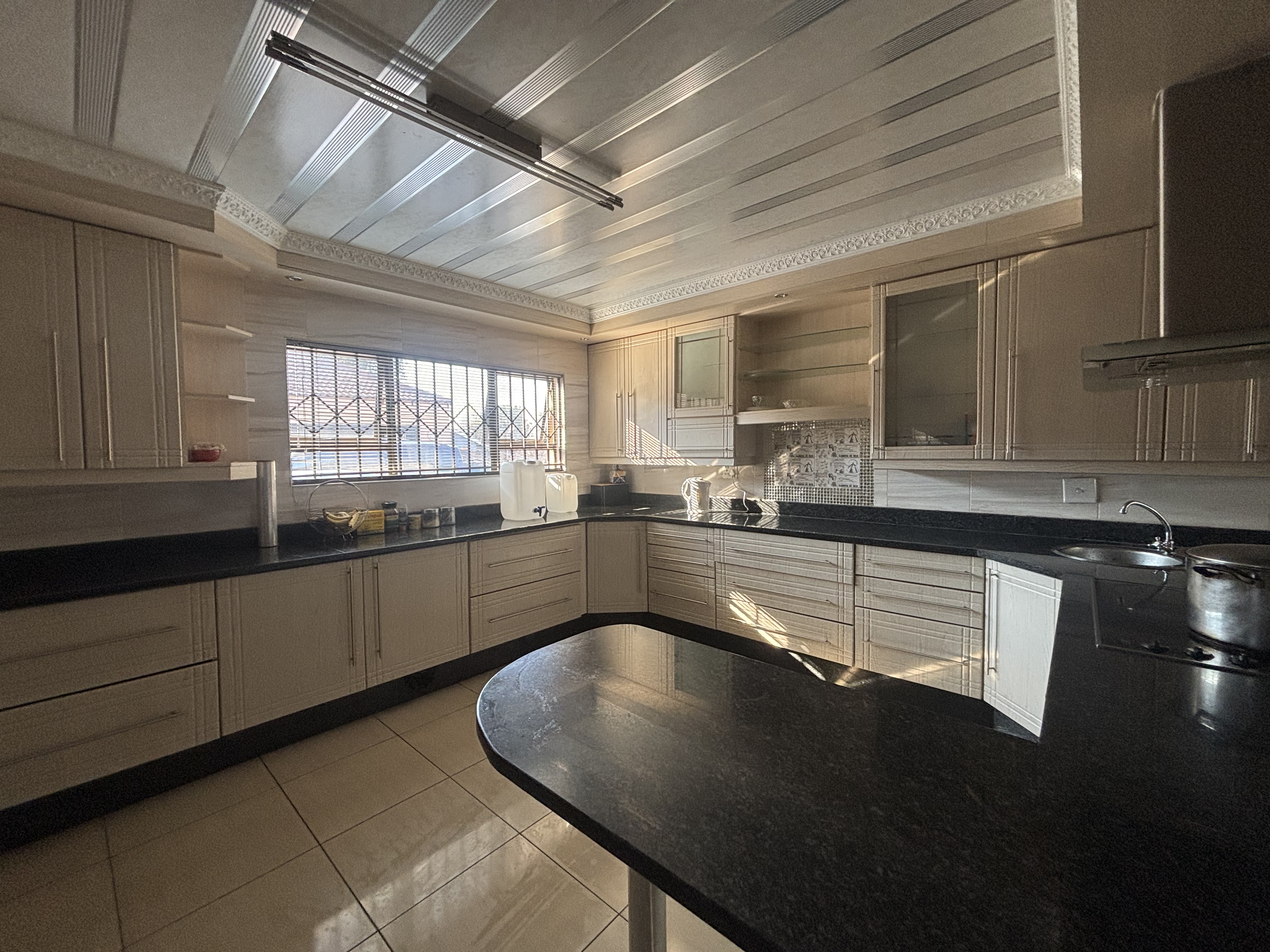 Situated on an large stand, this residence features three living areas, a contemporary kitchen equipped with granite countertops, a scullery, and a laundry room. It offers four bedrooms, each with built-in cupboards, along with two full bathrooms and a convenient guest toilet.