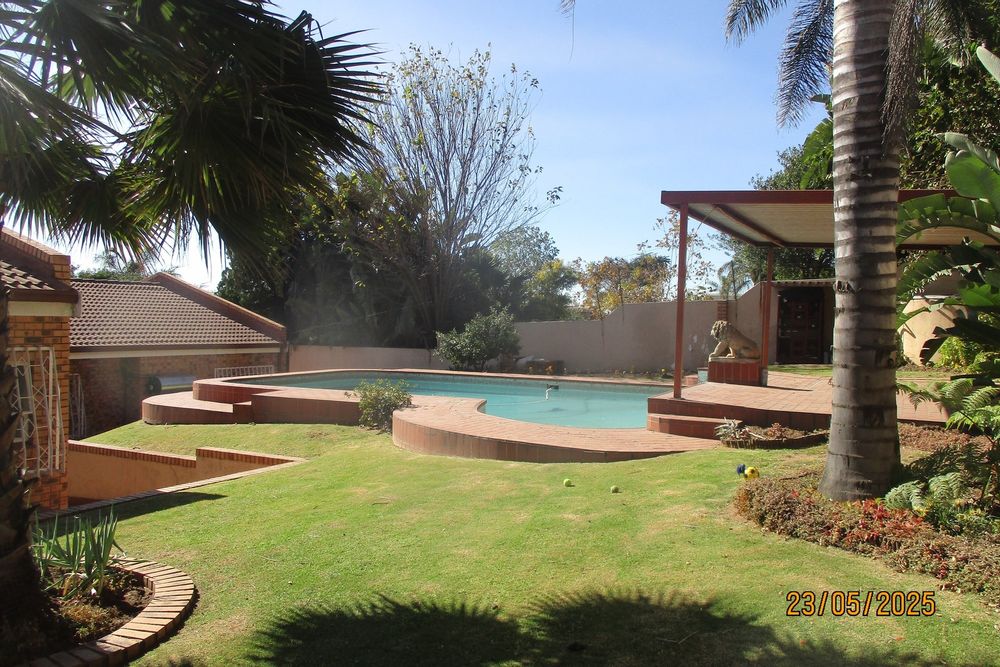Outdoor entertaining is a breeze with a beautifully landscaped garden, a sparkling swimming pool, and a covered patio with a built-in braai. Additional features include a spacious storage room, air conditioning, ceiling fans, and an advanced security system complete with intercom and alarm for peace of mind.