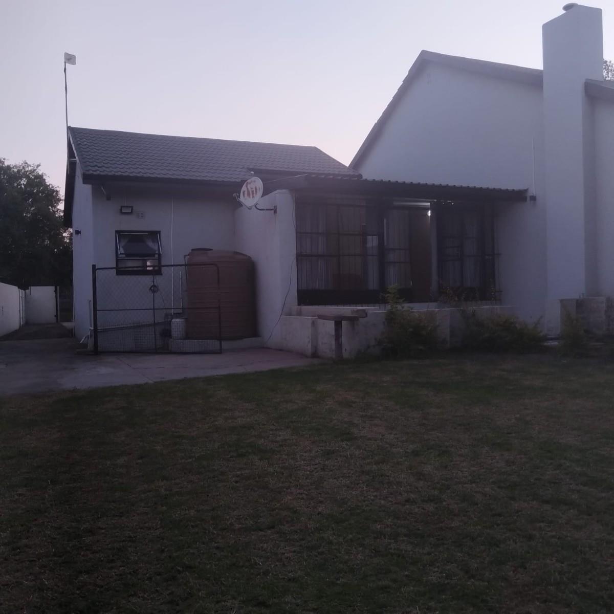The main house boasts a modern kitchen fitted with granite countertops, ample cupboard space, and a gas stove. The kitchen flows seamlessly into a dedicated dining room and a comfortable lounge, creating an inviting living space. Three well-sized bedrooms are on offer, with the main bedroom opening onto a private patio. The home features two bathrooms, including a main en suite. Parking is provided by a double carport.