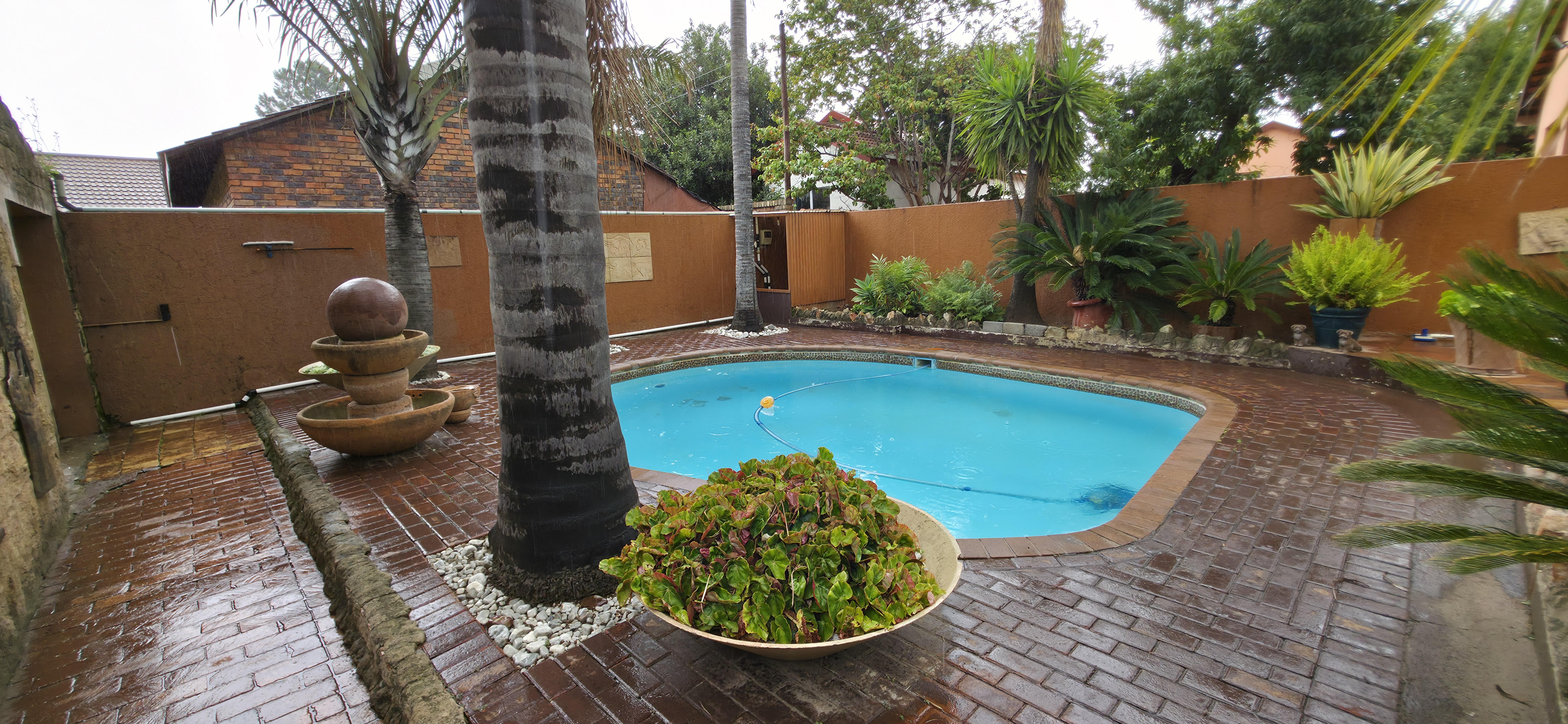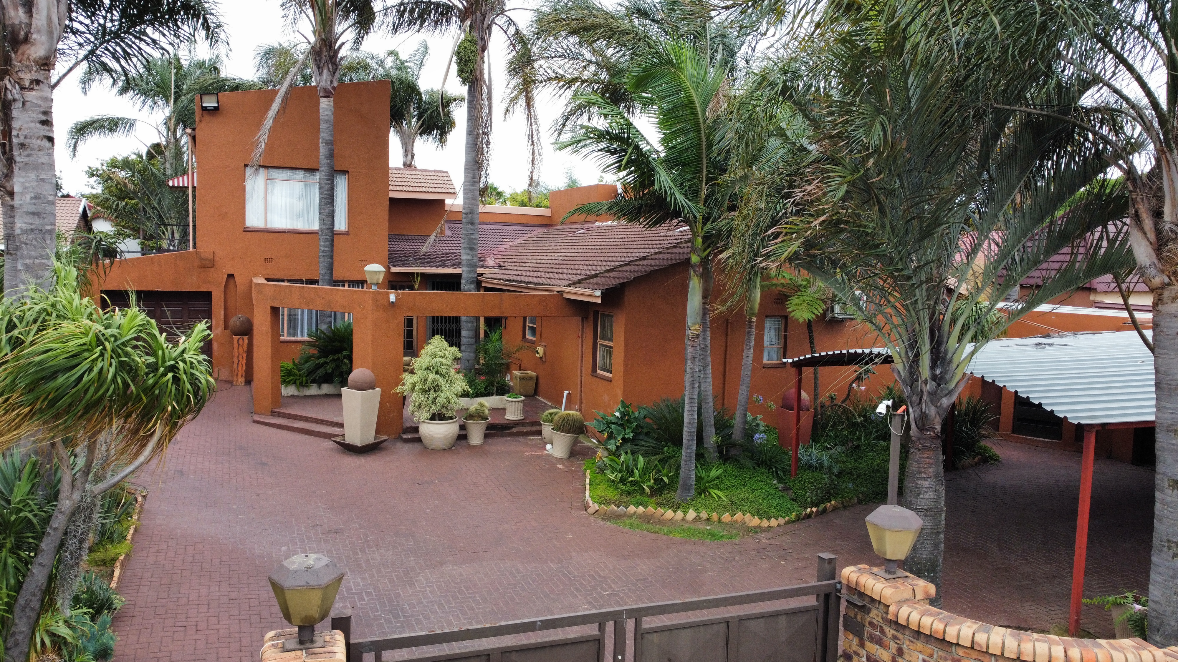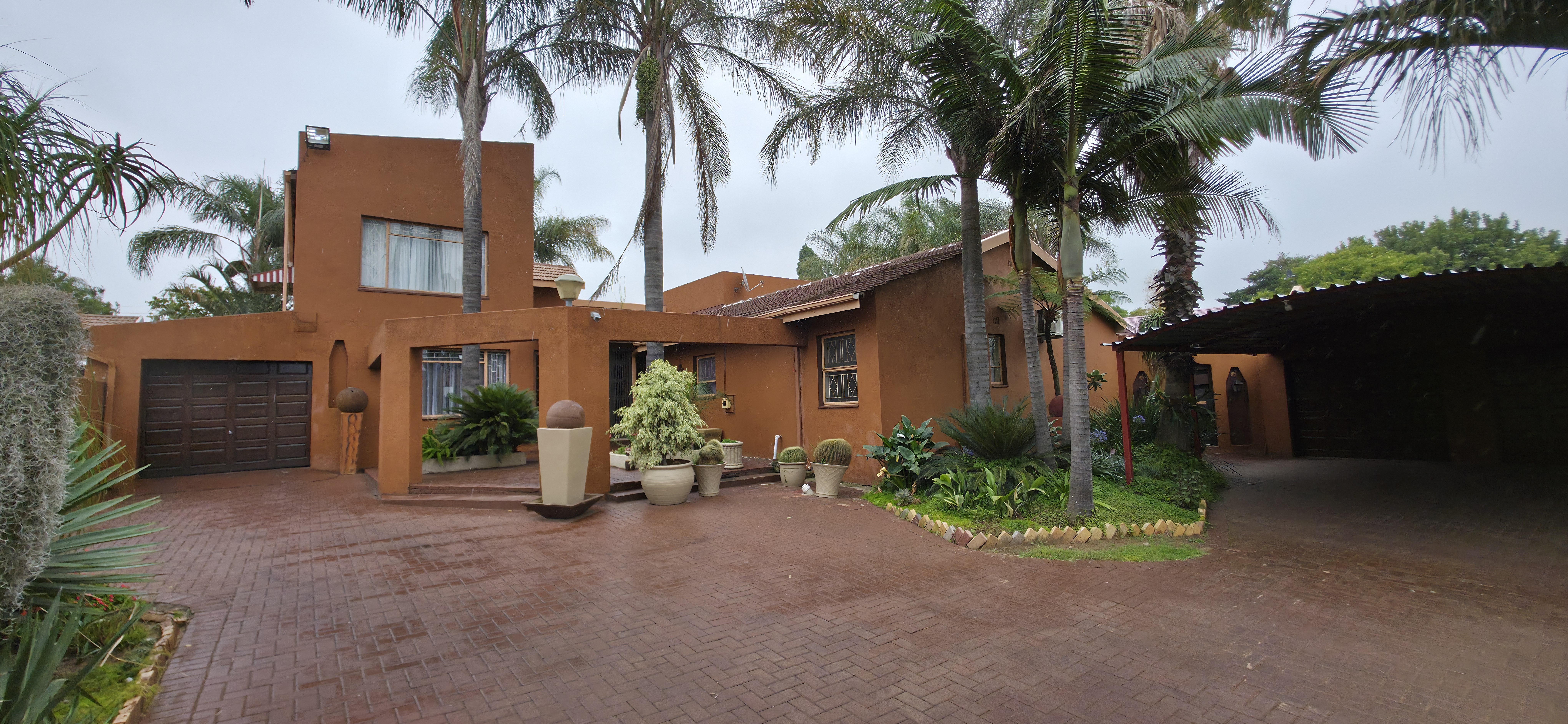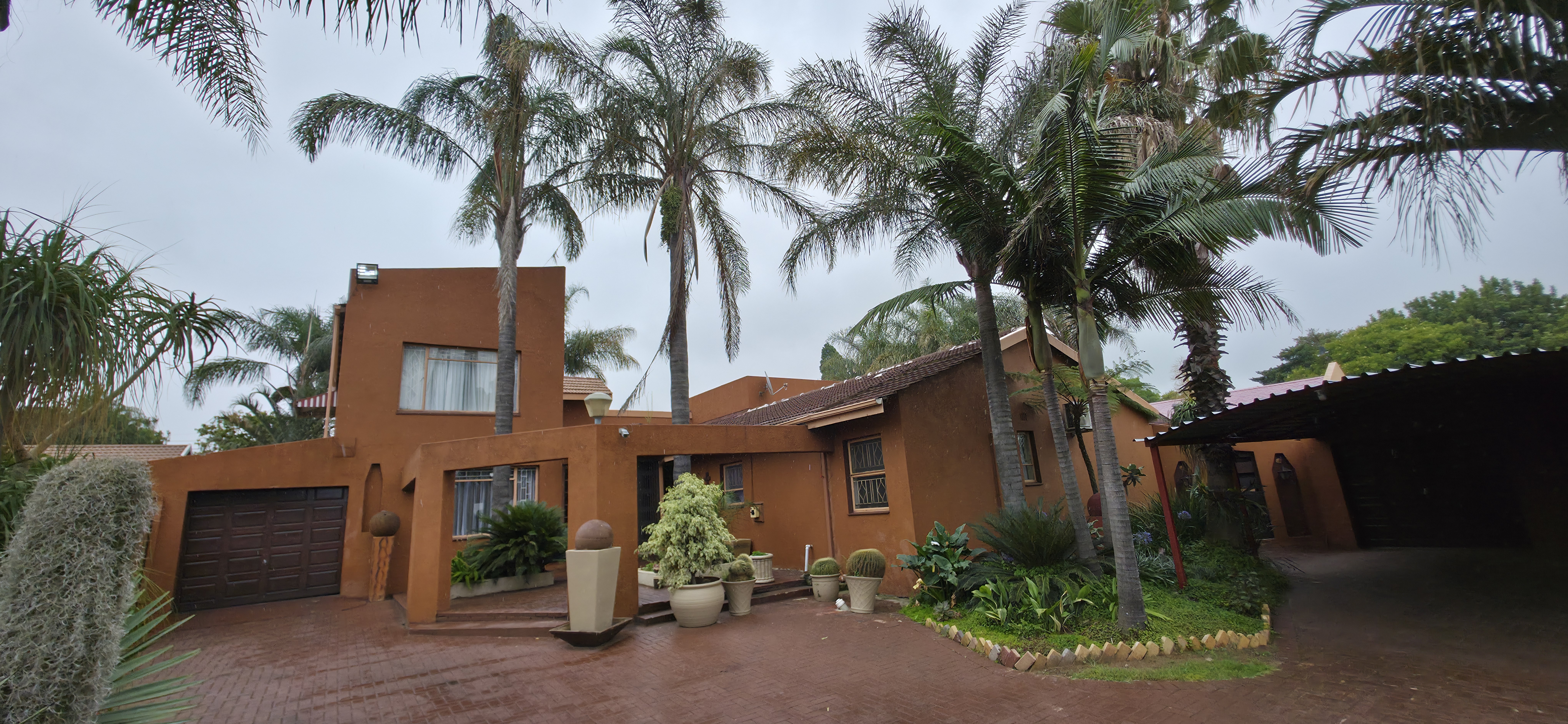 This property boasting an impressive living space. This expansive residence features 6 spacious bedrooms and 4 modern bathrooms, including a luxurious main suite complete with air conditioning and an en-suite bathroom for ultimate comfort. The chef's kitchen is equipped with a 5-burner gas hob and electric oven, complemented by a separate scullery and laundry for added convenience. Enjoy cozy evenings in the large living areas featuring an anthracite fireplace and air conditioning, or entertain guests on the covered patio with a built-in braai and bar counter, all while overlooking the inviting heated pool. With ample parking for 4 vehicles in the garages and 2 additional carports, plus enhanced security with CCTV and a 2500-liter JoJo tank with pressure pump, this home is designed for both comfort and peace of mind.