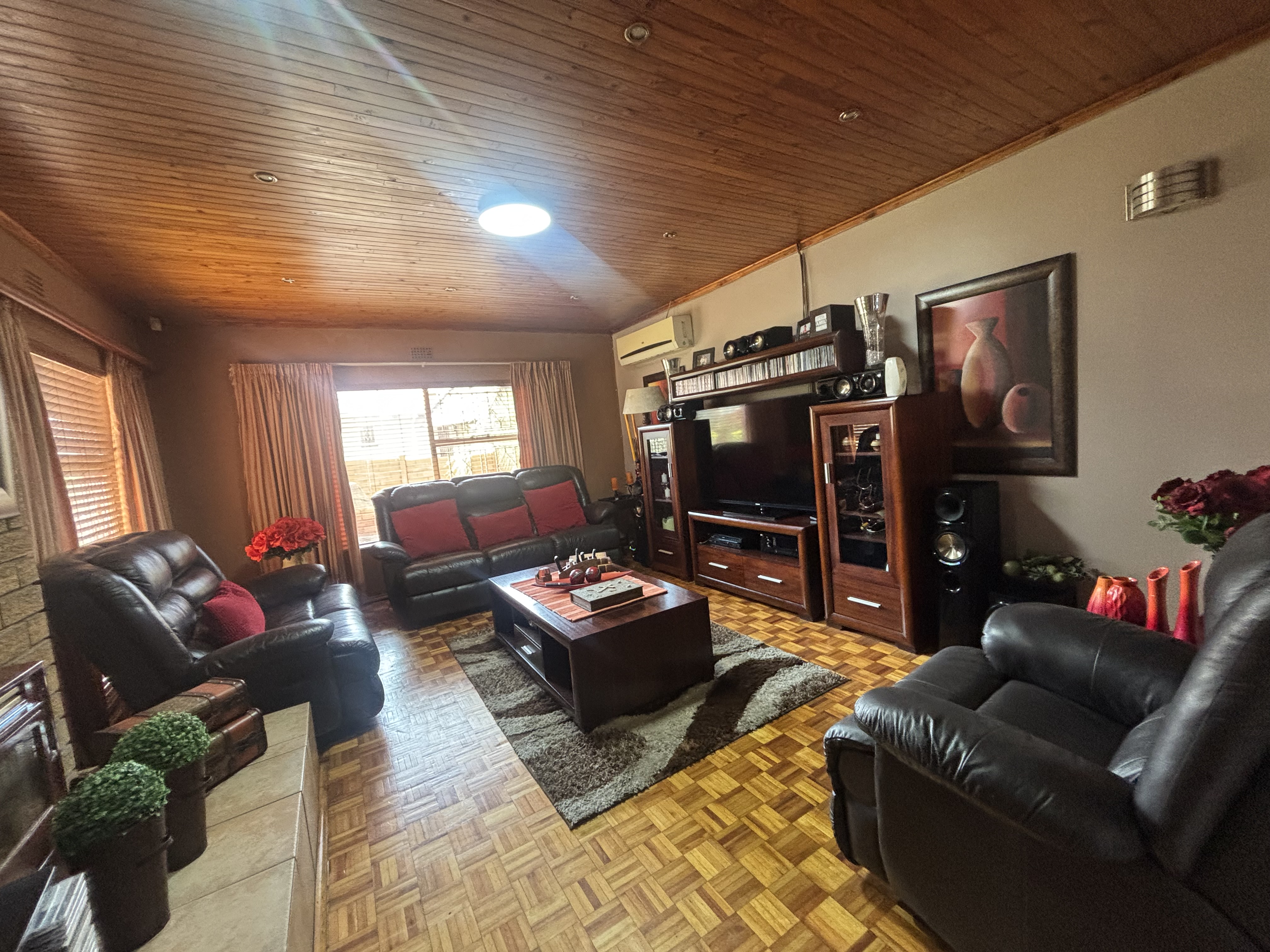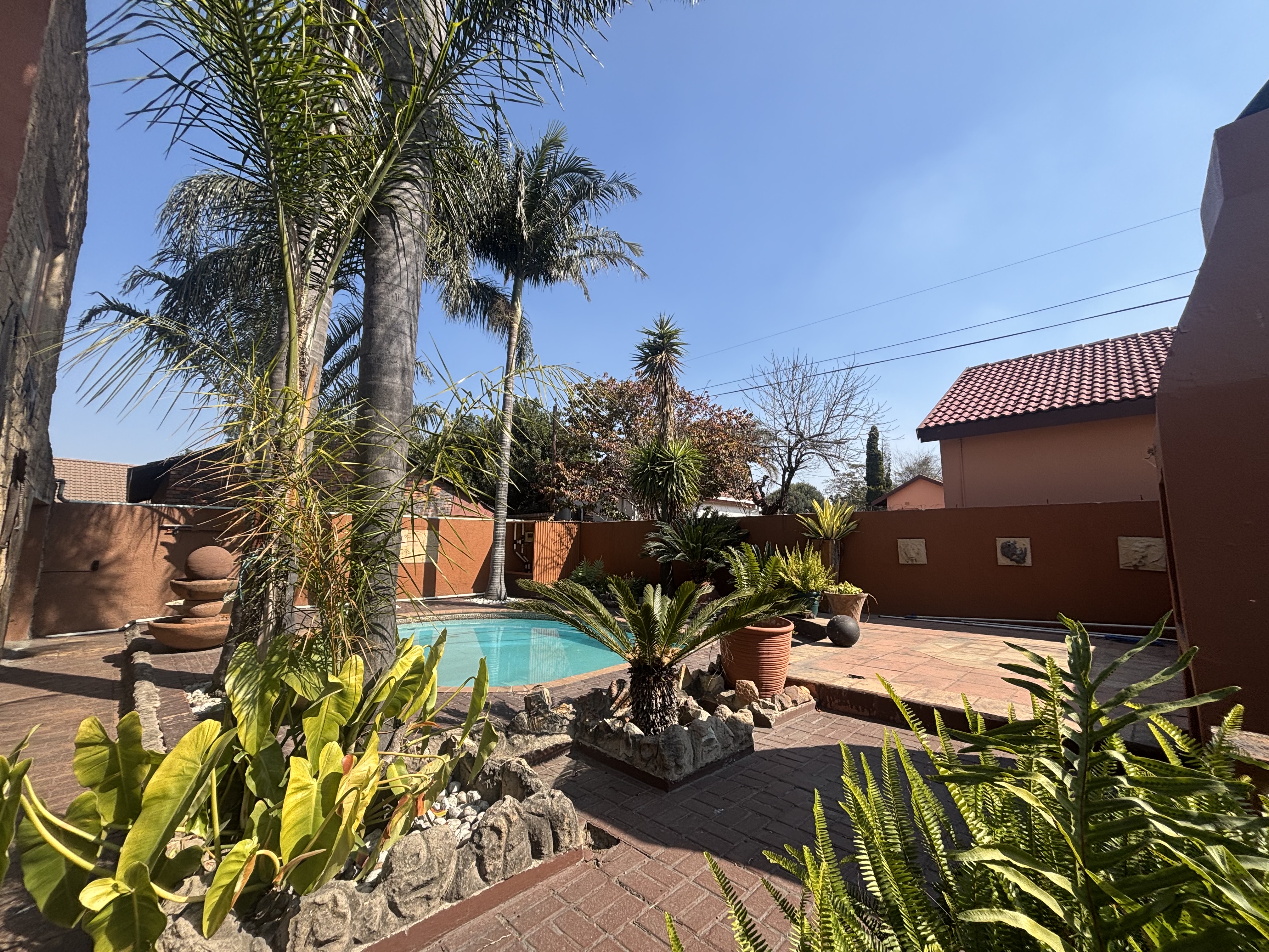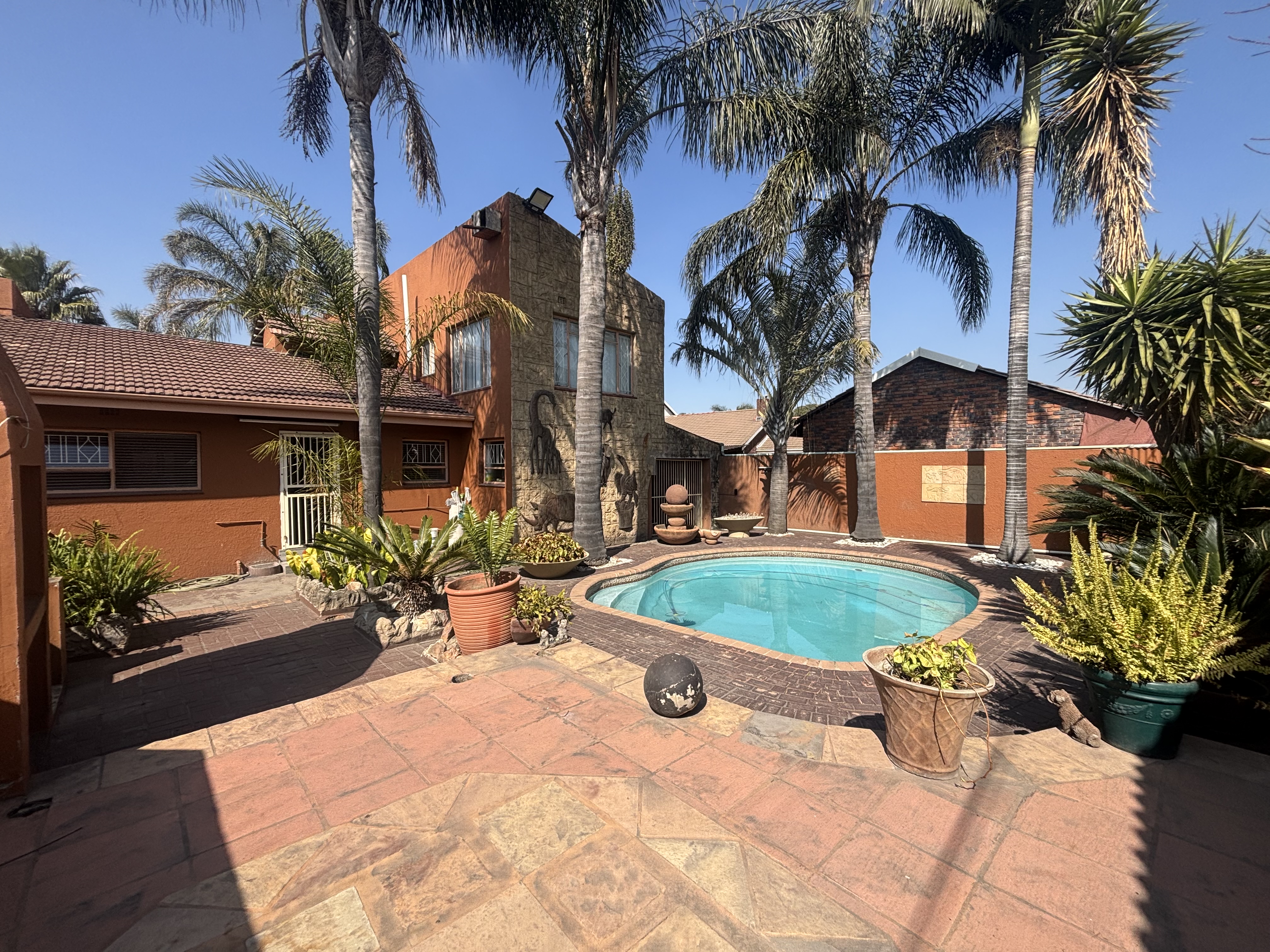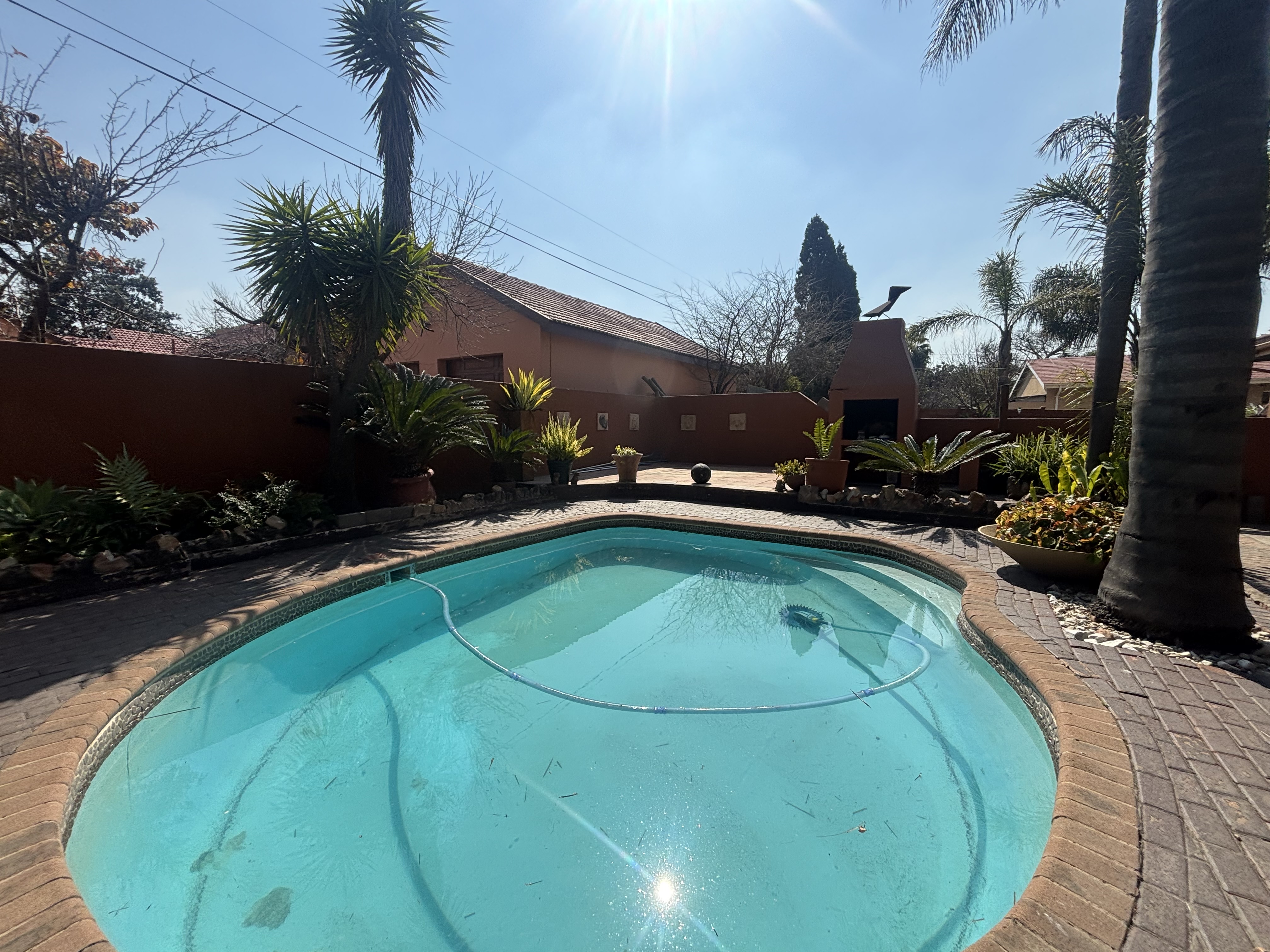 The lush, beautifully landscaped garden boasts a heated pool and a covered entertainment area complete with a sleeper bar and braai. Ample parking and security enhance this exceptional property. Don't miss the opportunity to view this gem!
