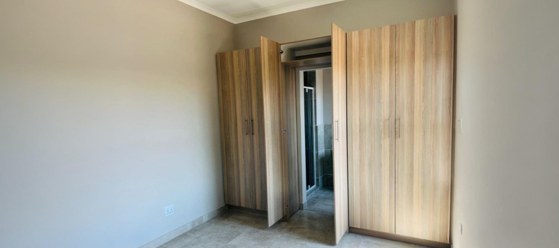 The townhouse boasts three well-sized bedrooms, all with built-in cupboards. The main bedroom includes an en-suite bathroom, while the remaining two bedrooms are serviced by a second, well-appointed bathroom.