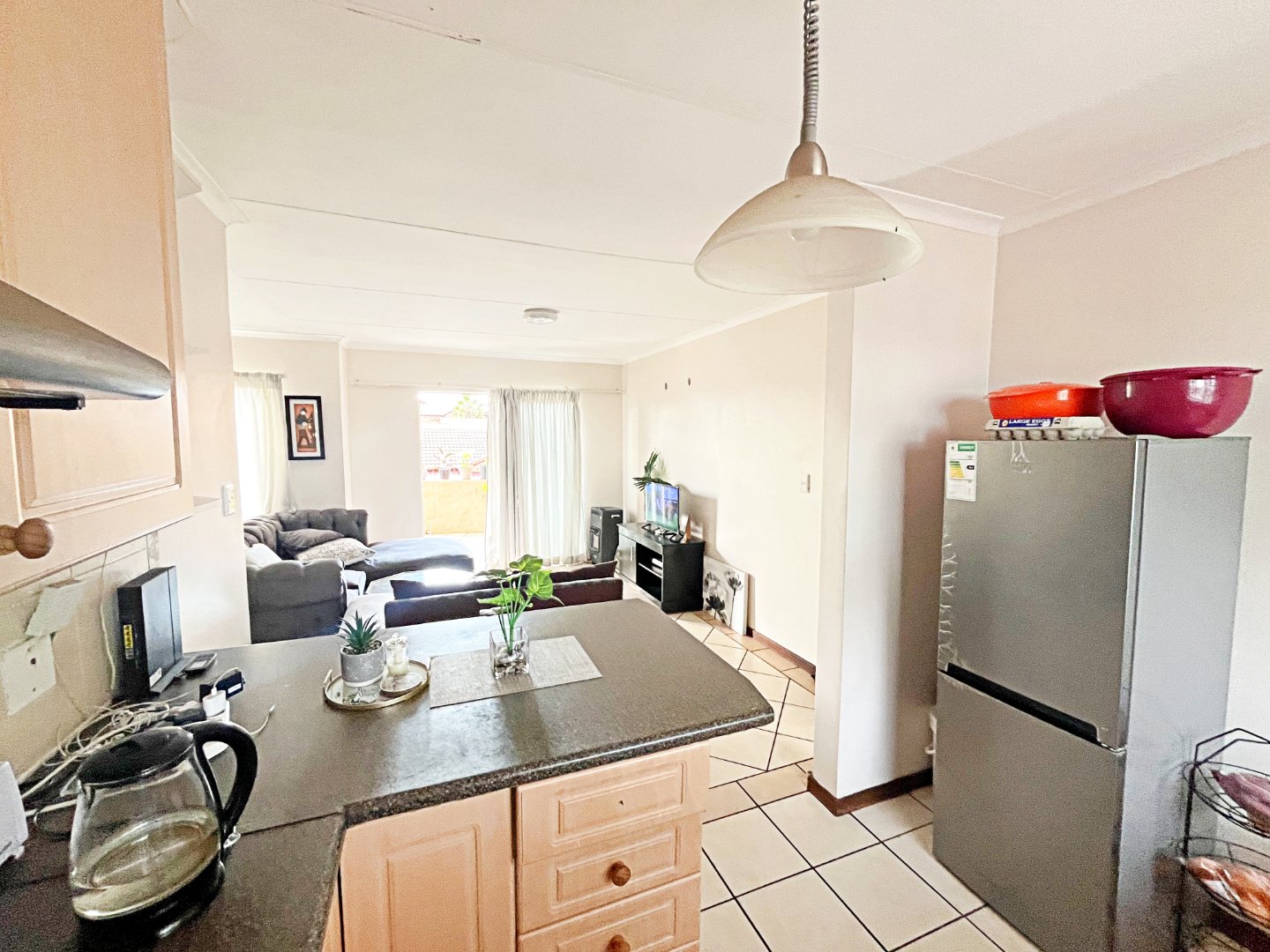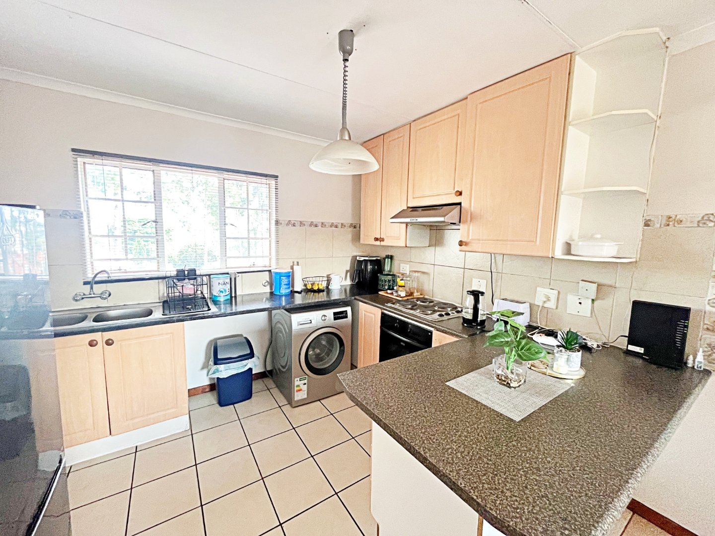 The kitchen is designed for convenience, offering space for 2 under-counter appliances, a double fridge, and ample cupboard space for all your culinary needs.