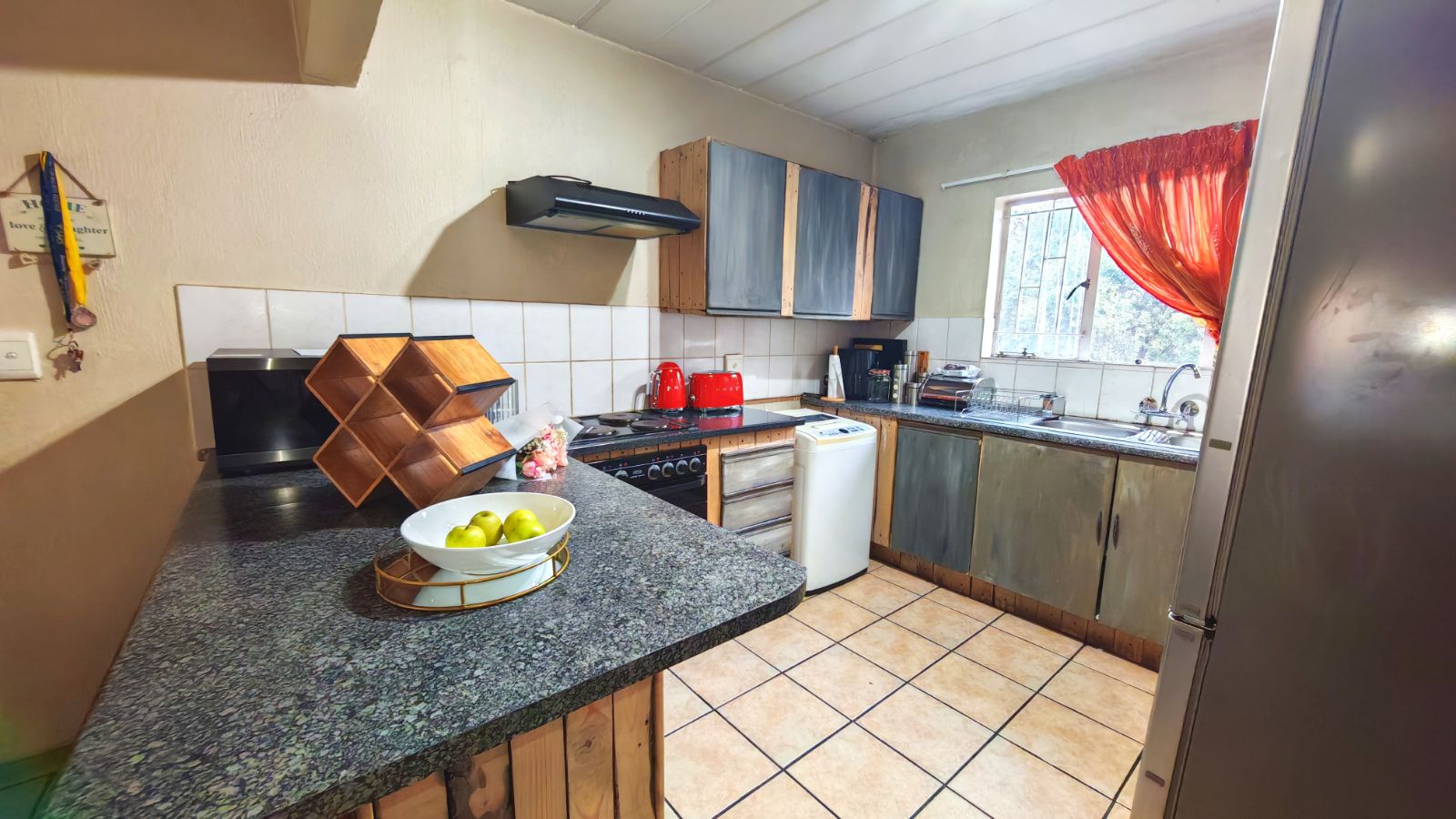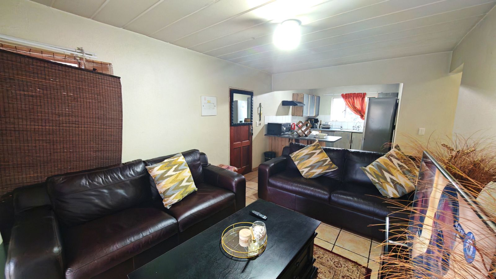 The open-plan design allows the kitchen to flow naturally into the dining and lounge area, creating a bright and welcoming space. Sliding doors lead to a private, covered balcony with braai—ideal for morning coffee or relaxed evenings.