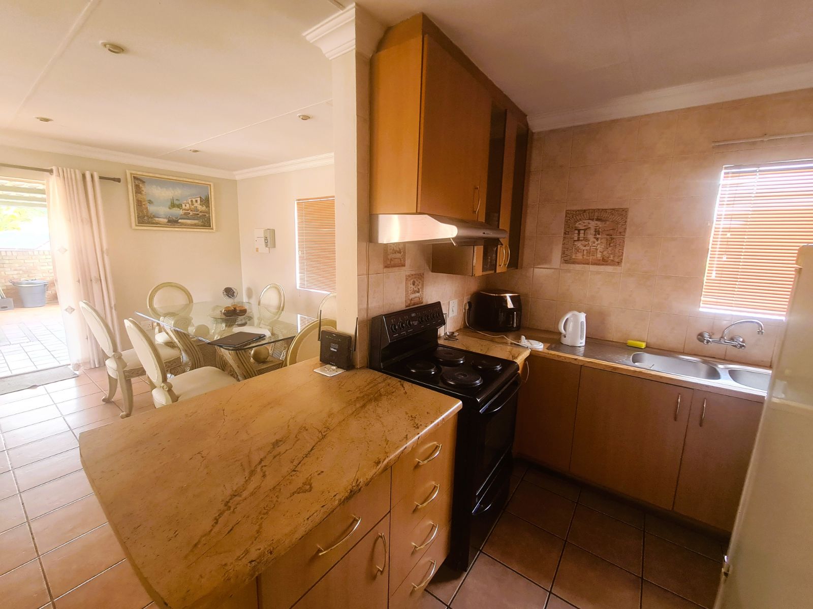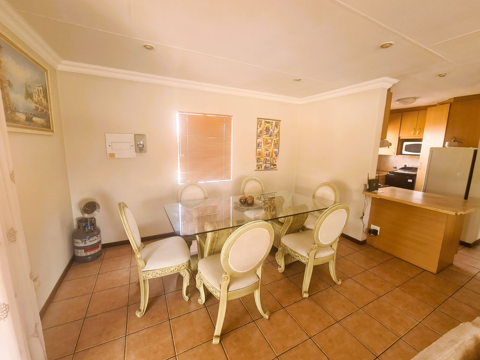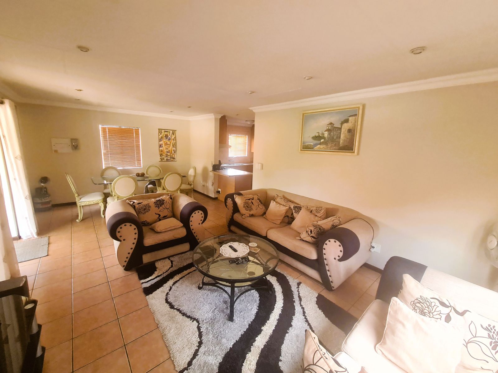 Tiled Lounge and dining area.