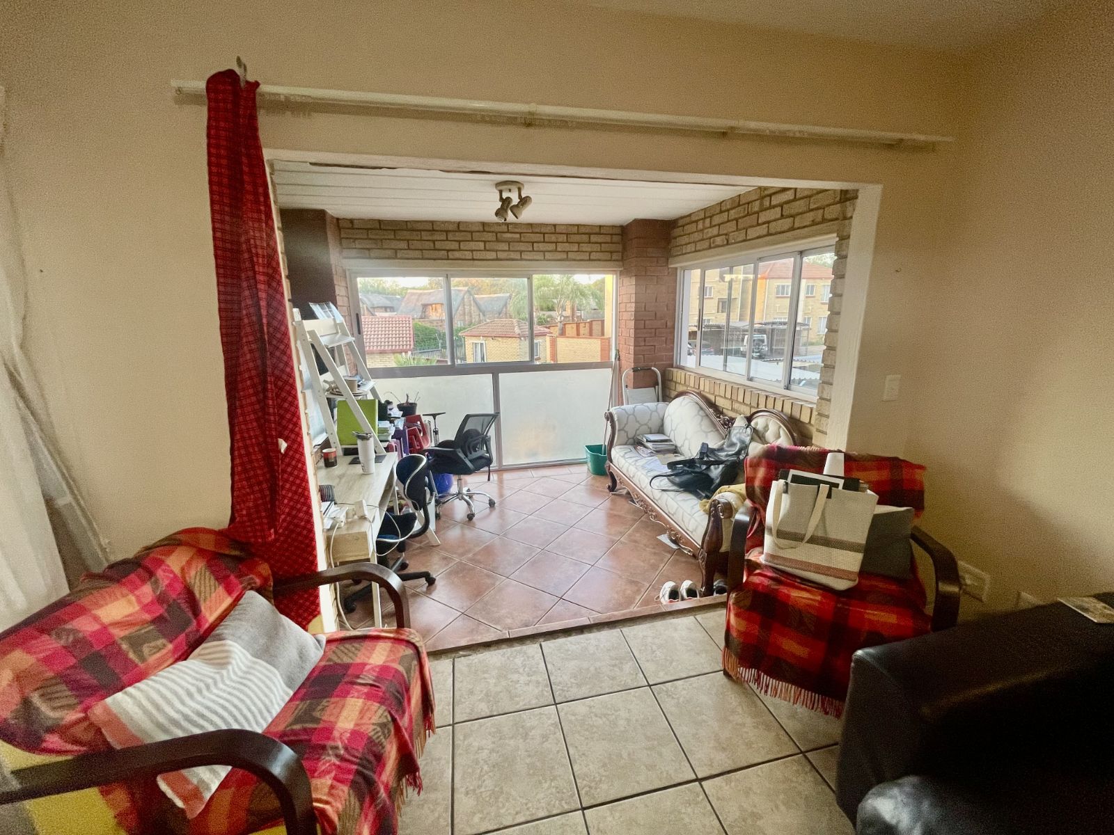 Balcony converted into an office space – perfect for working from home, but easily adaptable into a dining room