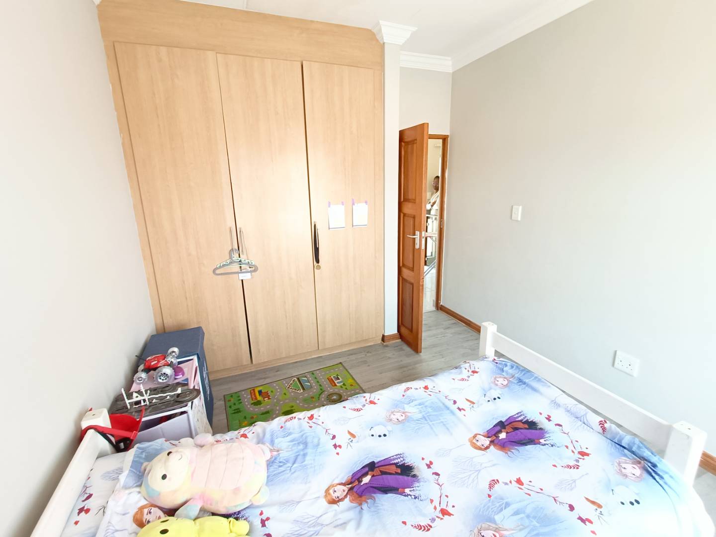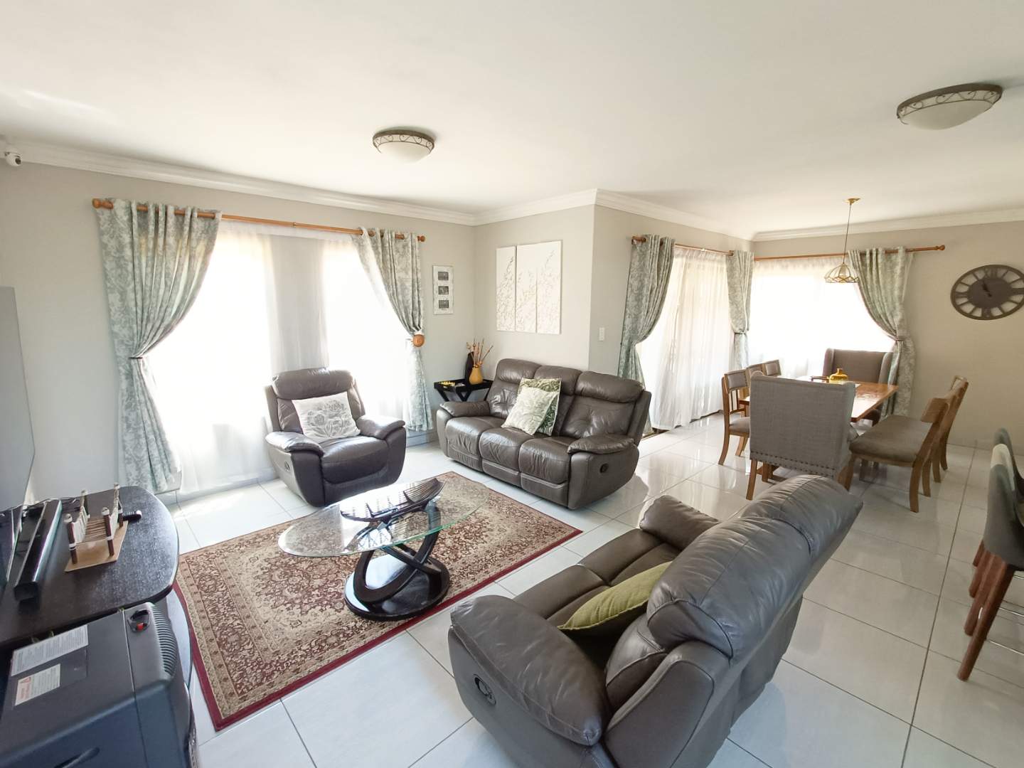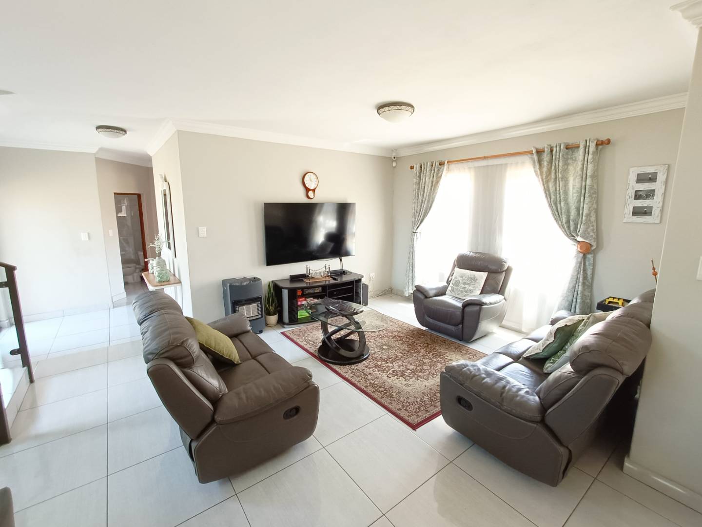 Additional features include a double garage, fibre-ready connectivity, and solar panels that enhance energy efficiency. This pet-friendly home is also equipped with security beams and cameras, ensuring peace of mind.