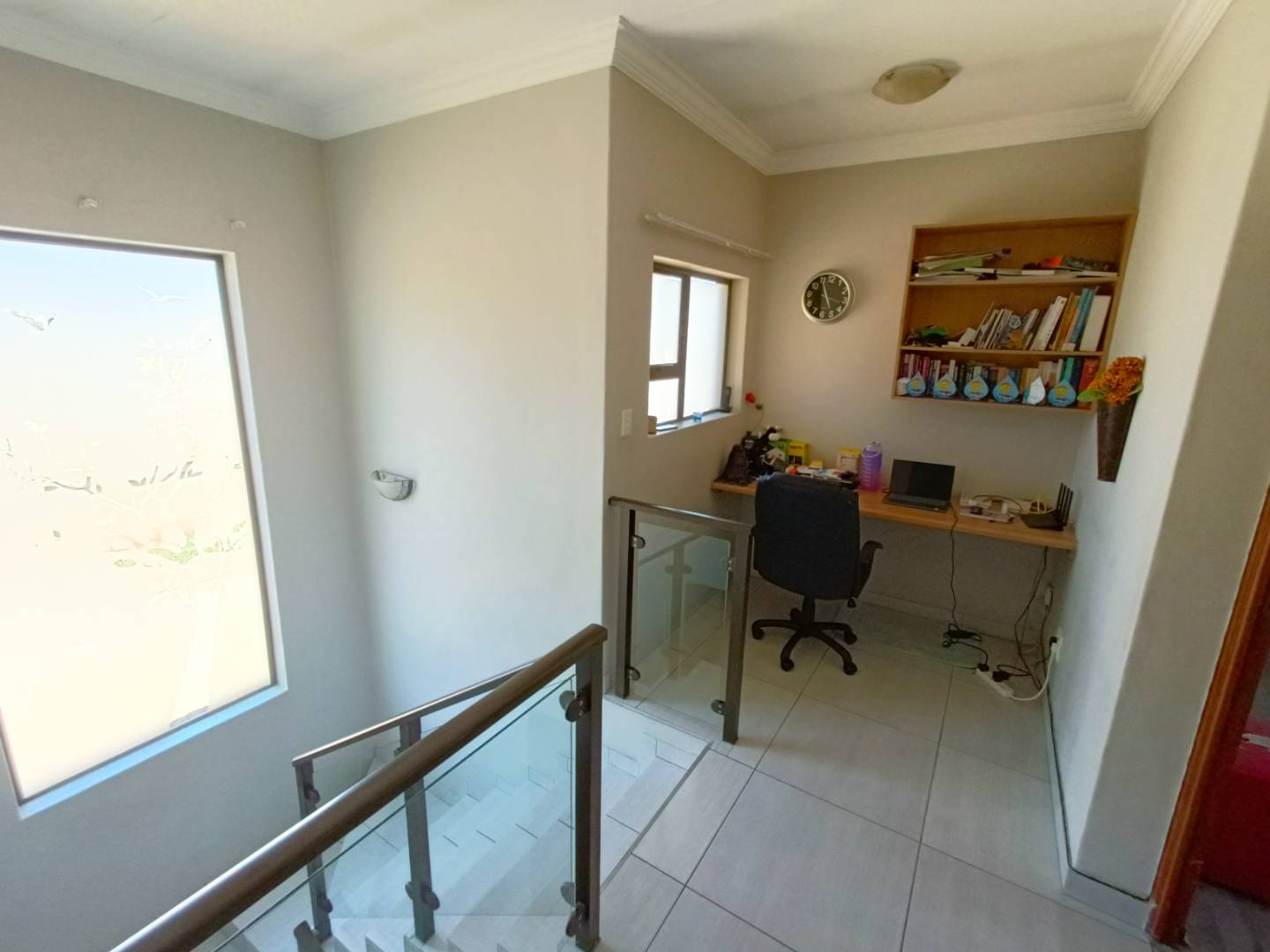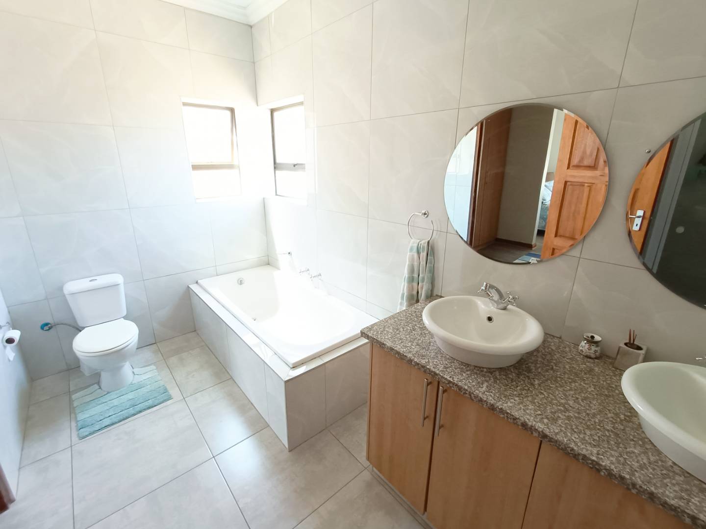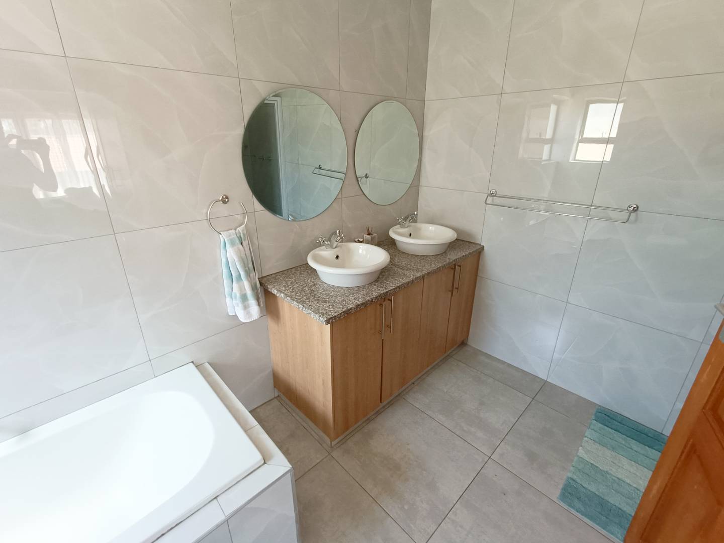 Additional features include a double garage, fibre-ready connectivity, and solar panels that enhance energy efficiency. This pet-friendly home is also equipped with security beams and cameras, ensuring peace of mind.