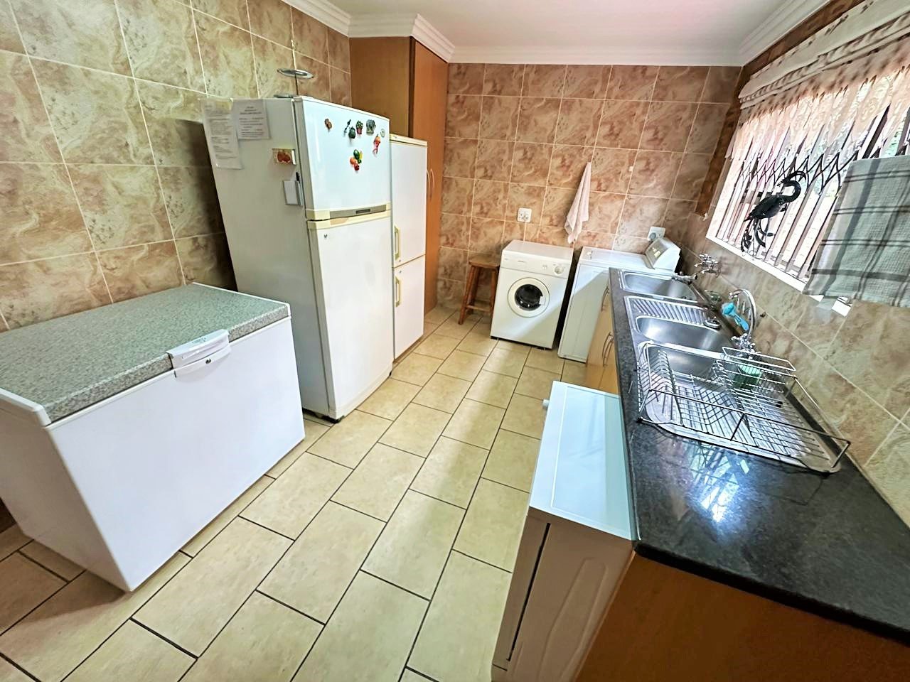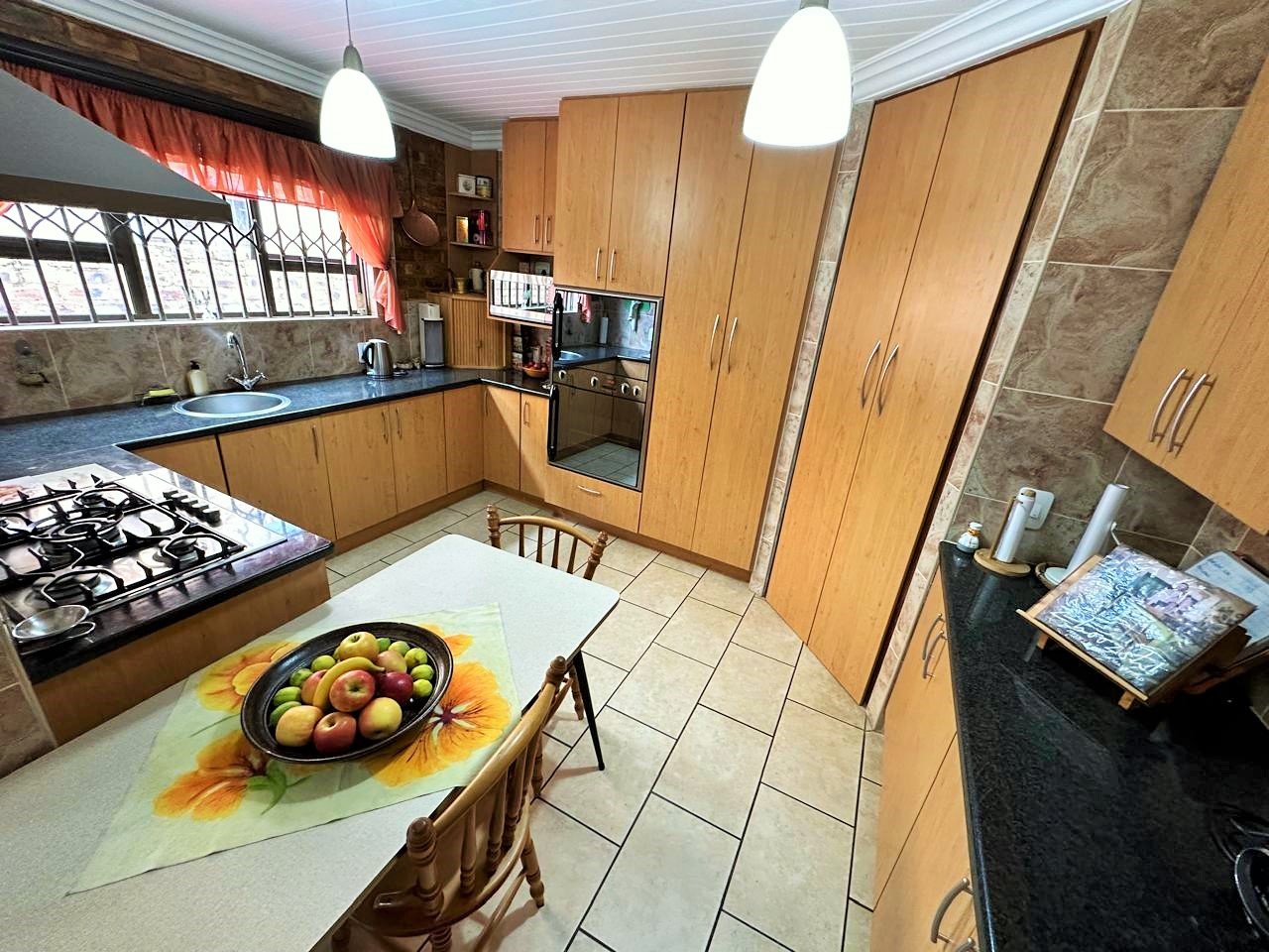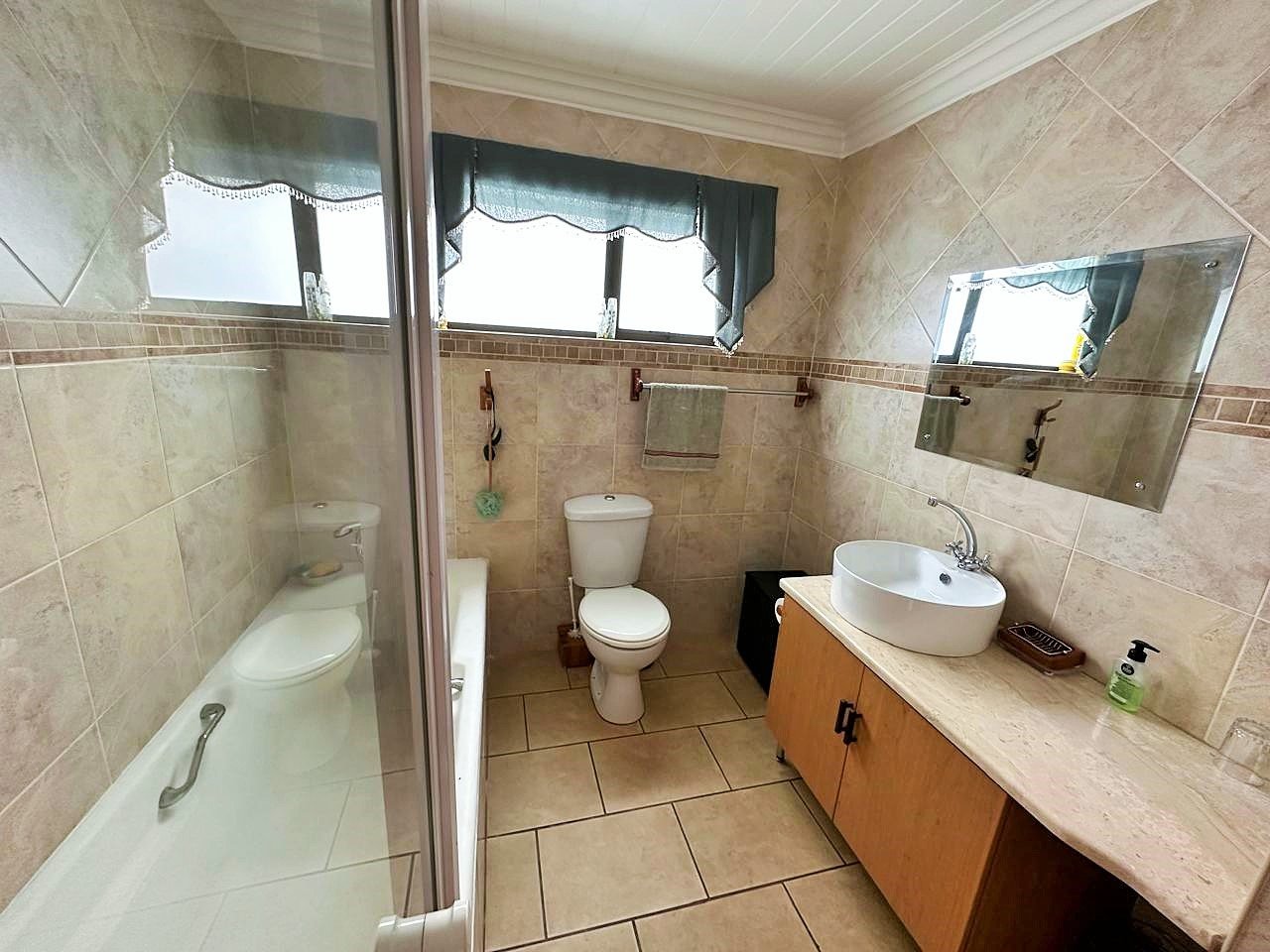 The downstairs section boasts an impressive kitchen with granite tops, floor-to-ceiling cupboards, a separate scullery that will accommodate all your appliances, as well as a huge main bedroom with a walk-in-closet and a full en-suite bathroom (heaters). Also find a guest toilet and study that could double as a fourth bedroom.