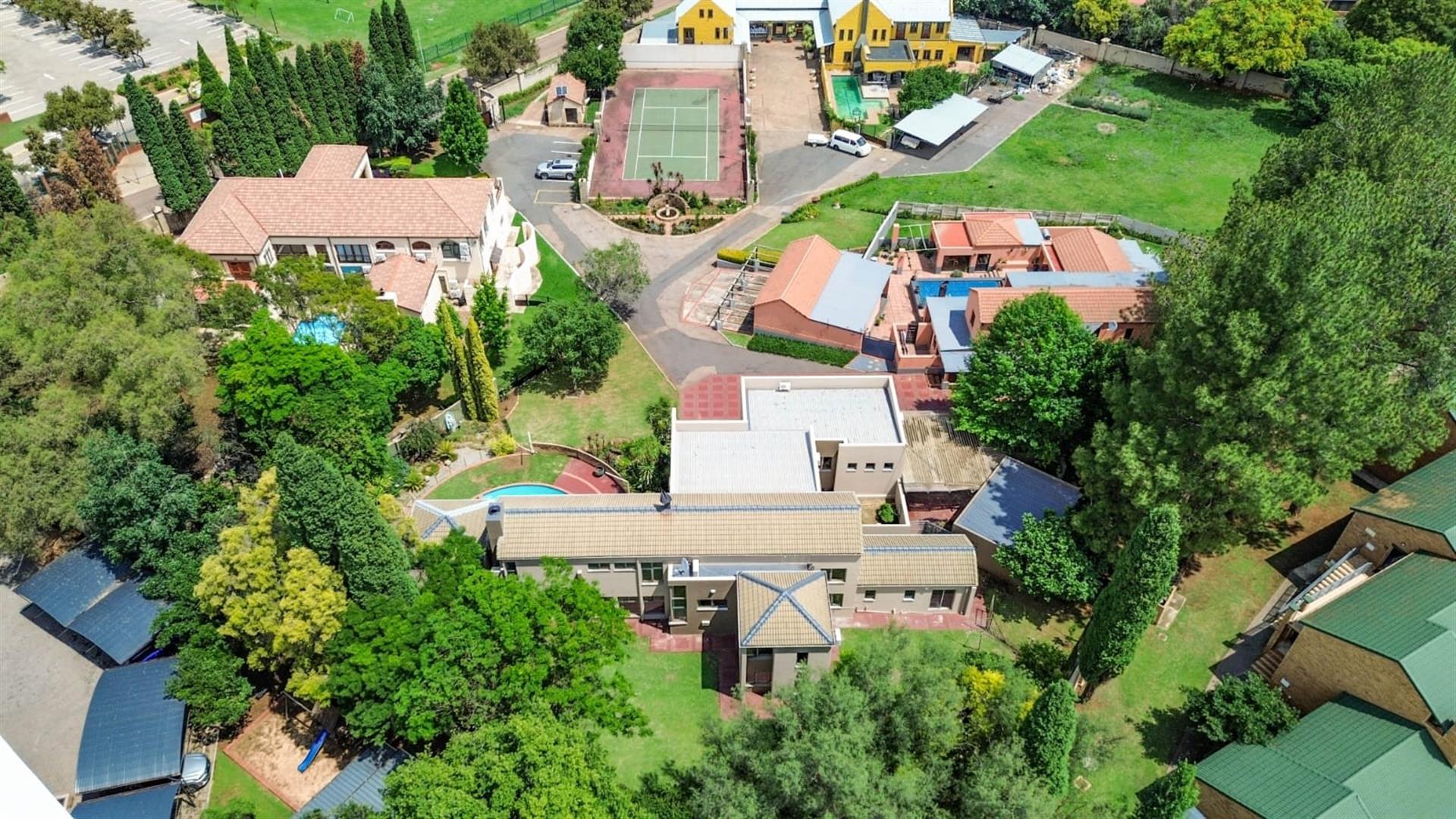 The family room has a fireplace and opens onto a covered patio with a built-in braai overlooking the swimming pool with spectacular views over Centurion.