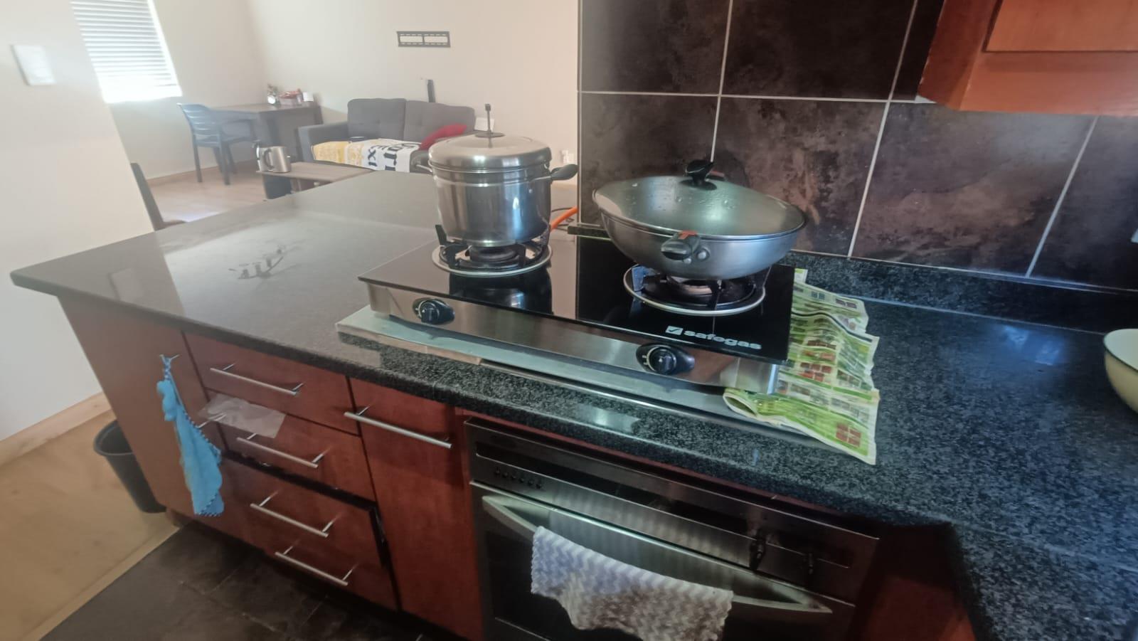The two spacious bedrooms are serviced by two modern bathrooms, with the main bedroom boasting an elegant en-suite shower. The complex offers a range of amenities, including a sparkling swimming pool with braai facilities, perfect for relaxing and socializing.
