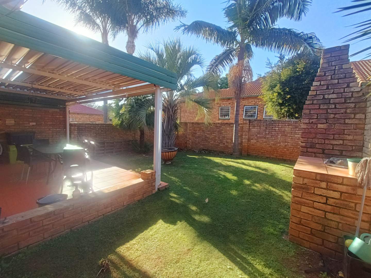Step outside to enjoy the inviting patio, which boasts a louvre deck and a built-in braai, ideal for hosting barbecues or simply enjoying outdoor leisure time.The garden adds a touch of nature to the property, offering a serene spot for pets or gardening enthusiasts.
