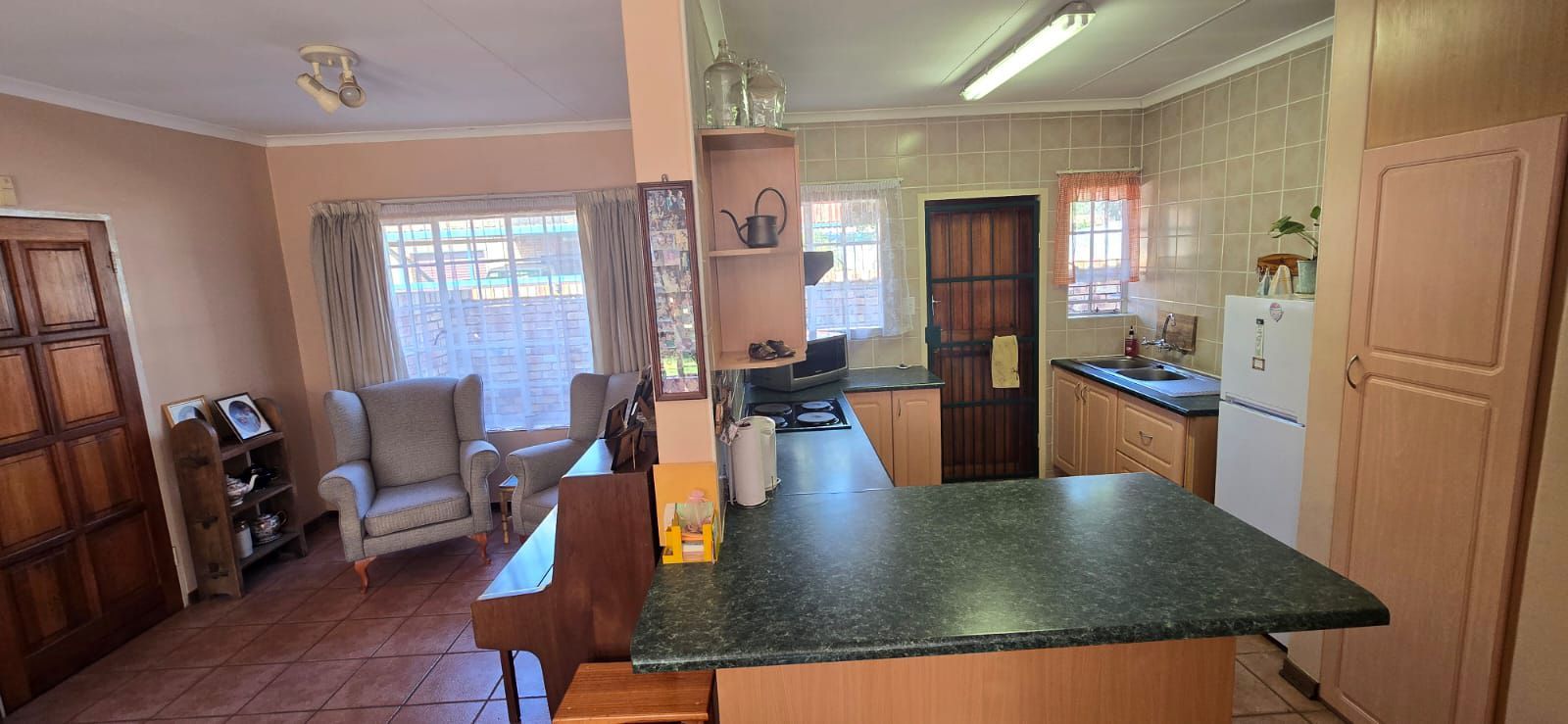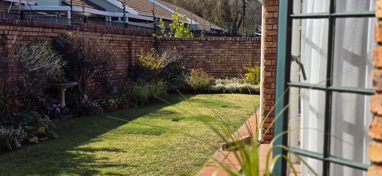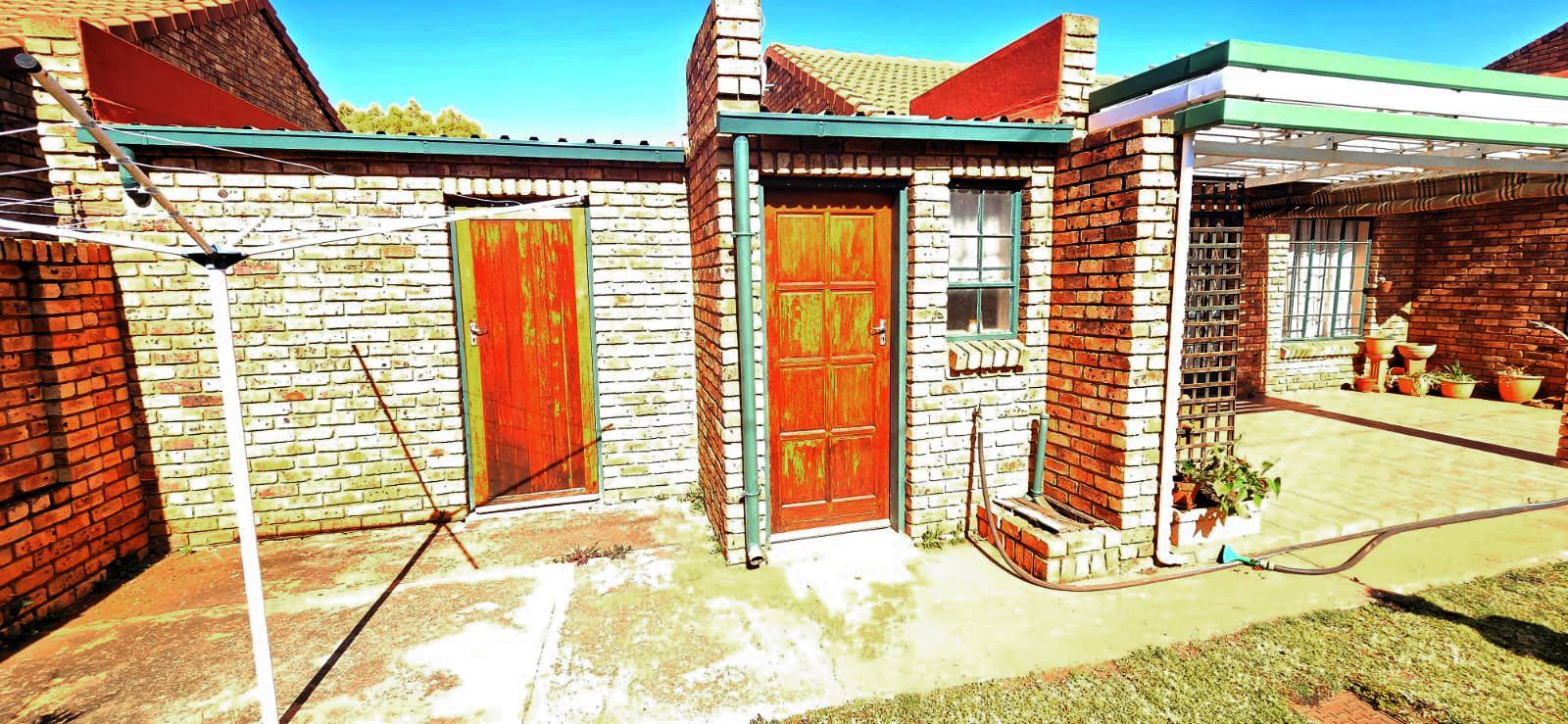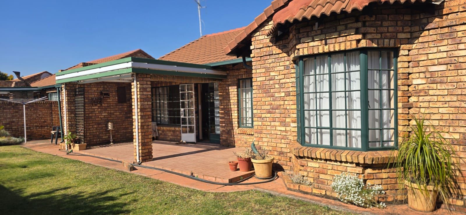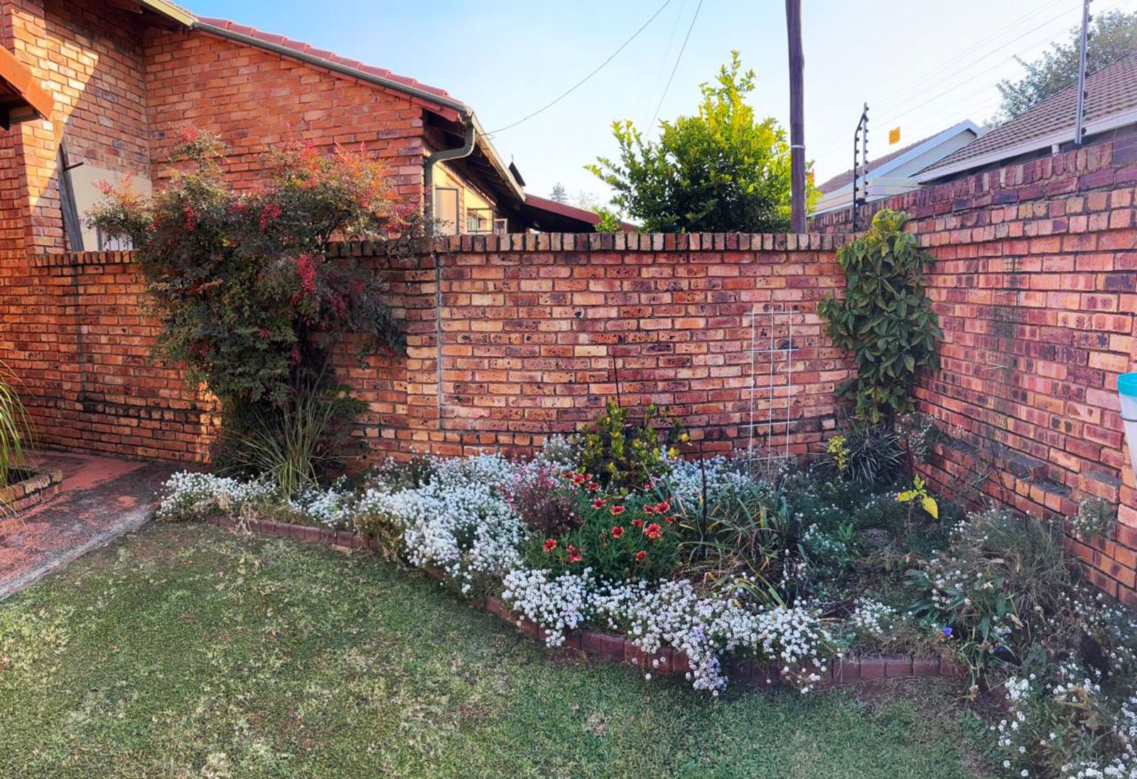 This delightful home offers three comfortable bedrooms, each with carpeted flooring and built-in cupboards. The main bedroom boasts an en-suite bathroom, and there's a second full bathroom, both beautifully tiled to the roof with a basin, toilet, and bath. The French Cottage windows and doors open gracefully onto a veranda, secured discreetly with Trelidor gates and burglar bars that complement the home's aesthetic.