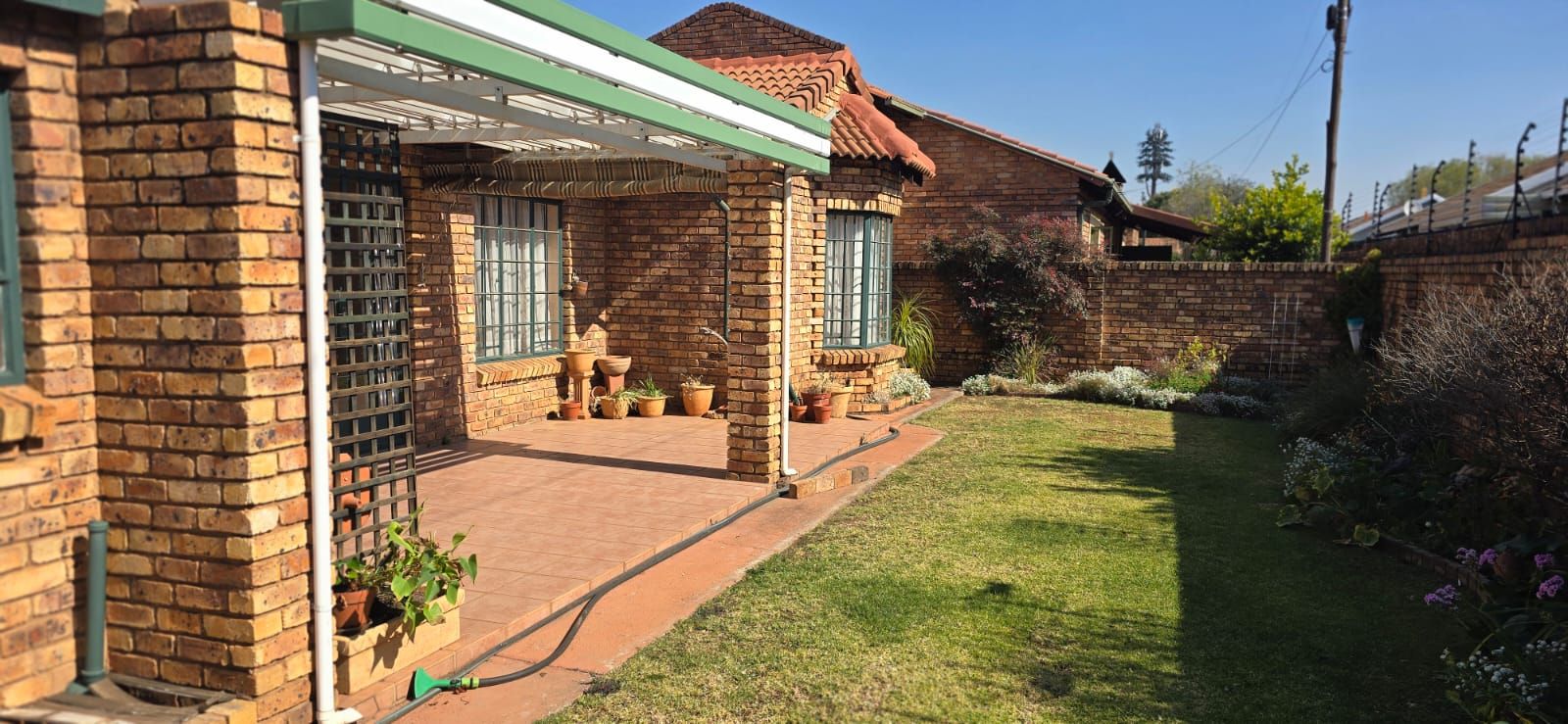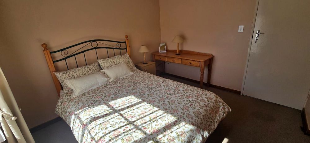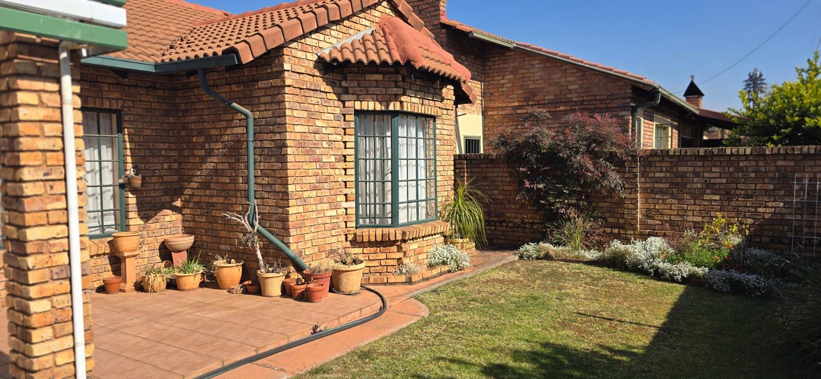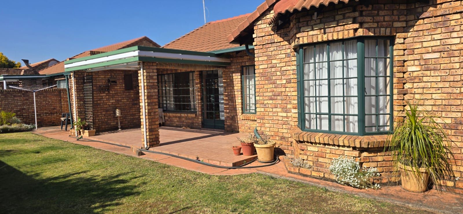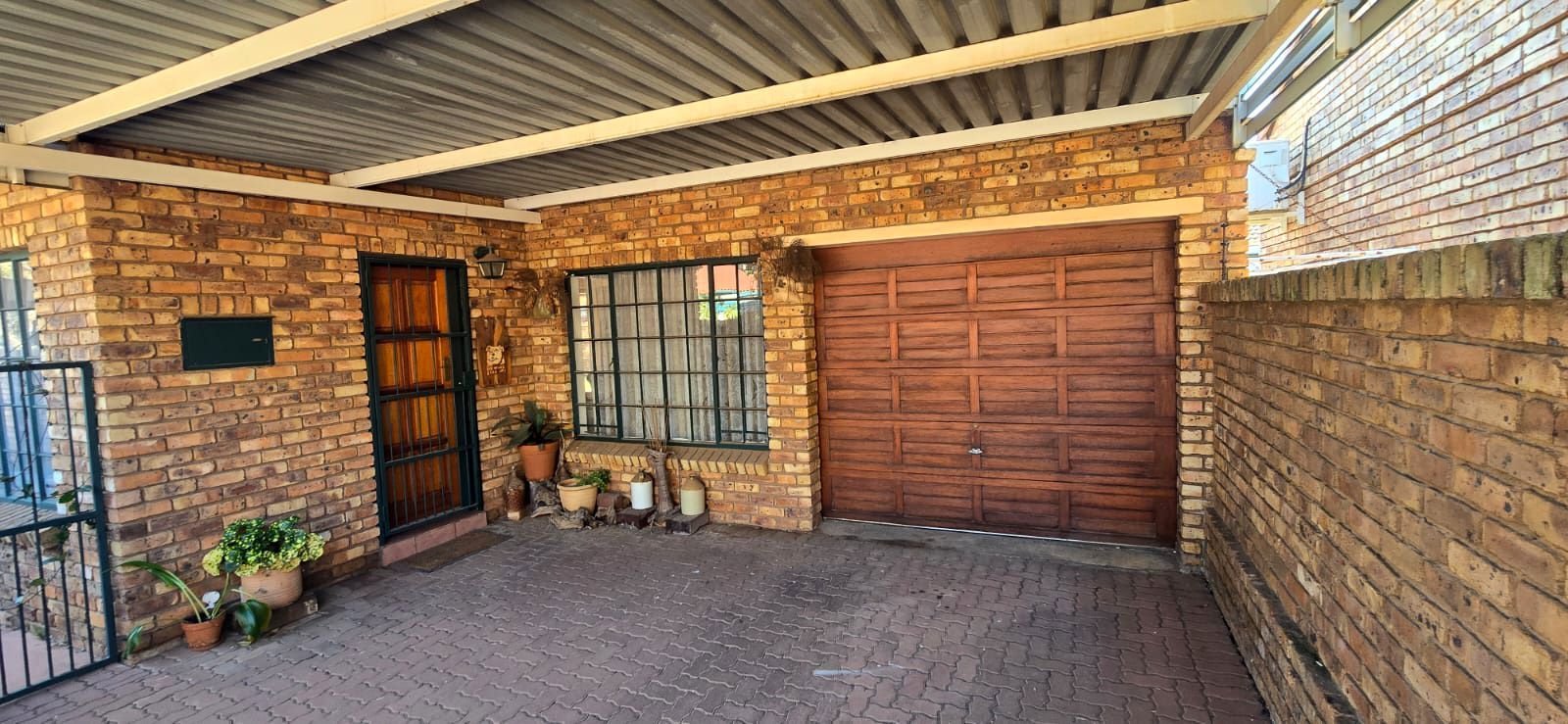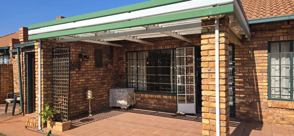 This delightful home offers three comfortable bedrooms, each with carpeted flooring and built-in cupboards. The main bedroom boasts an en-suite bathroom, and there's a second full bathroom, both beautifully tiled to the roof with a basin, toilet, and bath. The French Cottage windows and doors open gracefully onto a veranda, secured discreetly with Trelidor gates and burglar bars that complement the home's aesthetic.