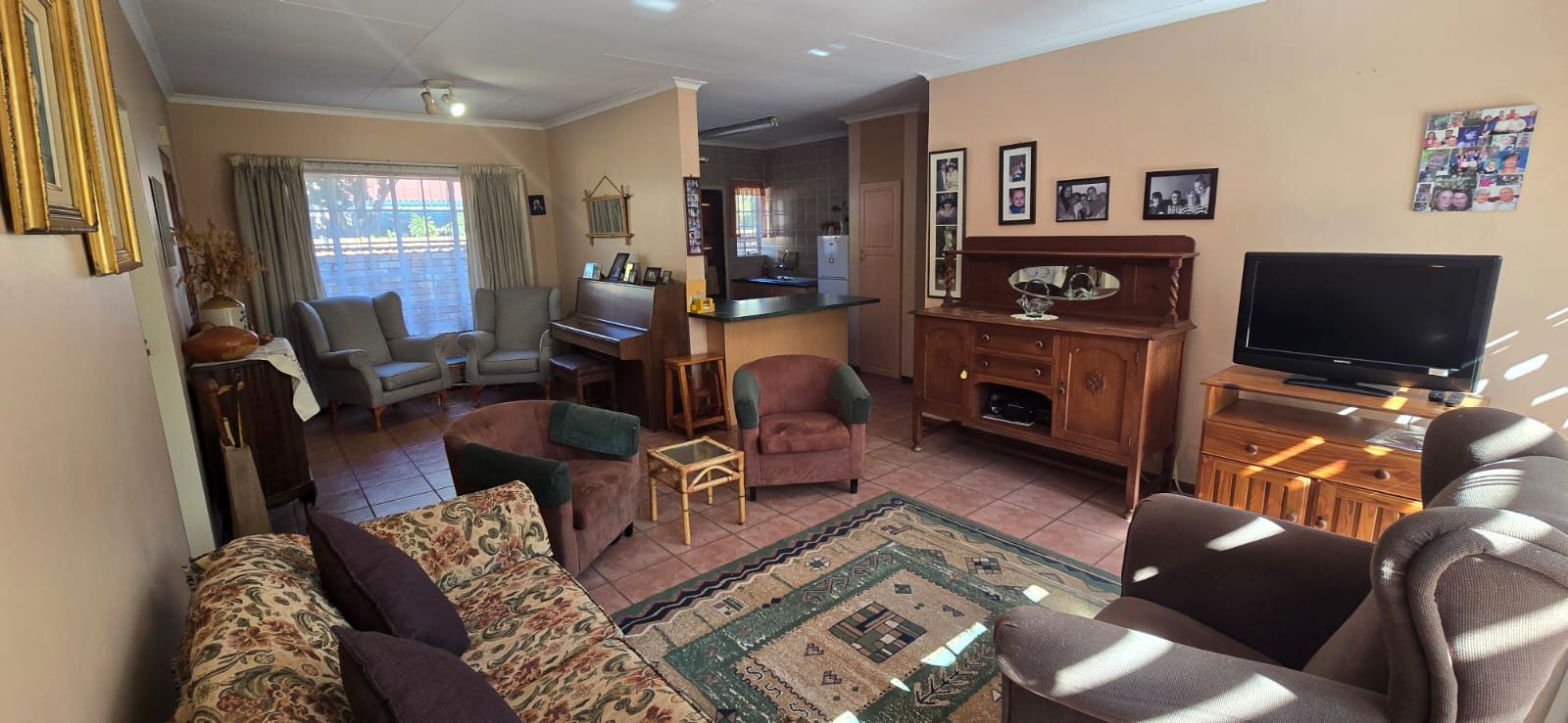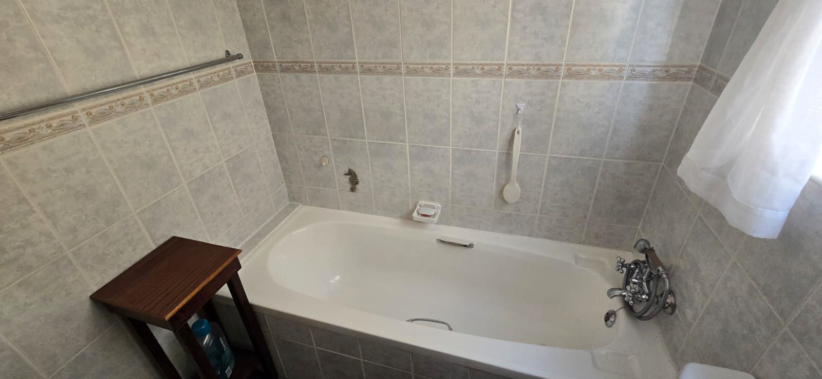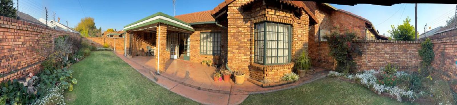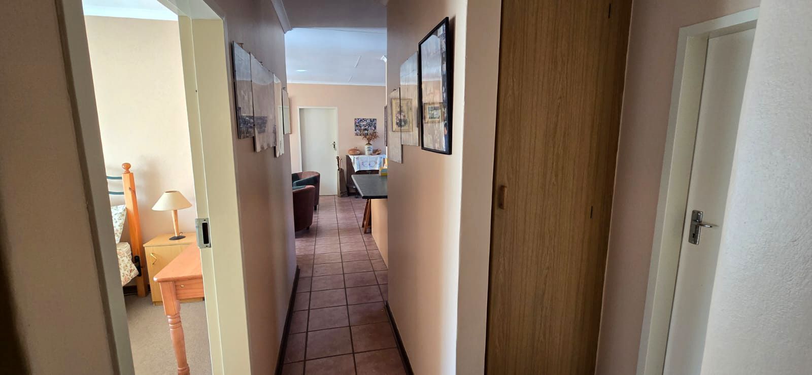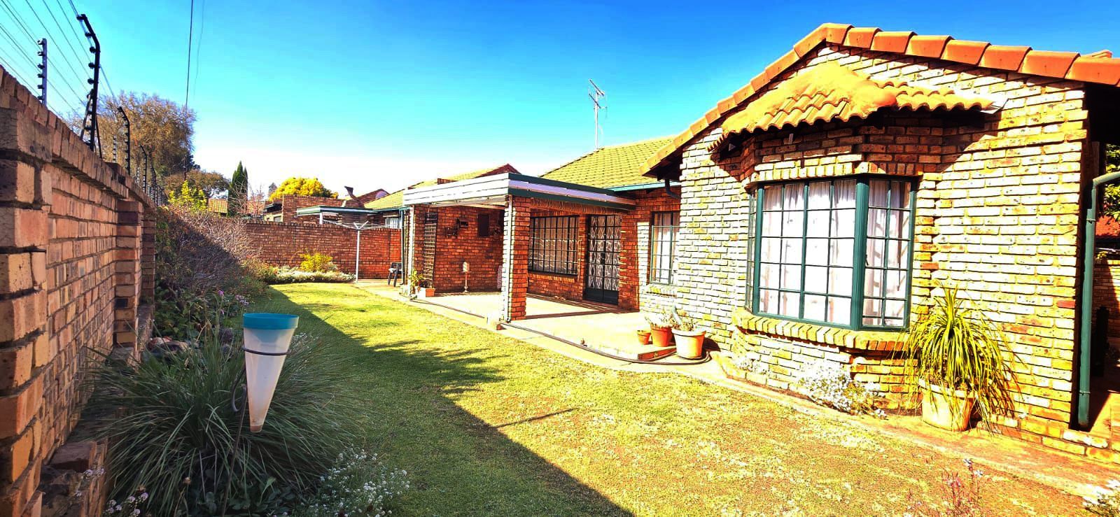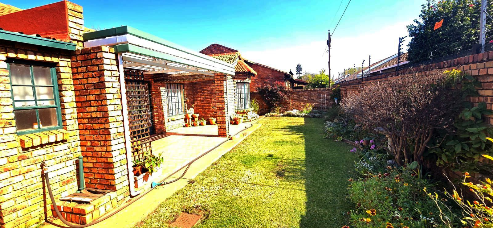 This delightful home offers three comfortable bedrooms, each with carpeted flooring and built-in cupboards. The main bedroom boasts an en-suite bathroom, and there's a second full bathroom, both beautifully tiled to the roof with a basin, toilet, and bath. The French Cottage windows and doors open gracefully onto a veranda, secured discreetly with Trelidor gates and burglar bars that complement the home's aesthetic.