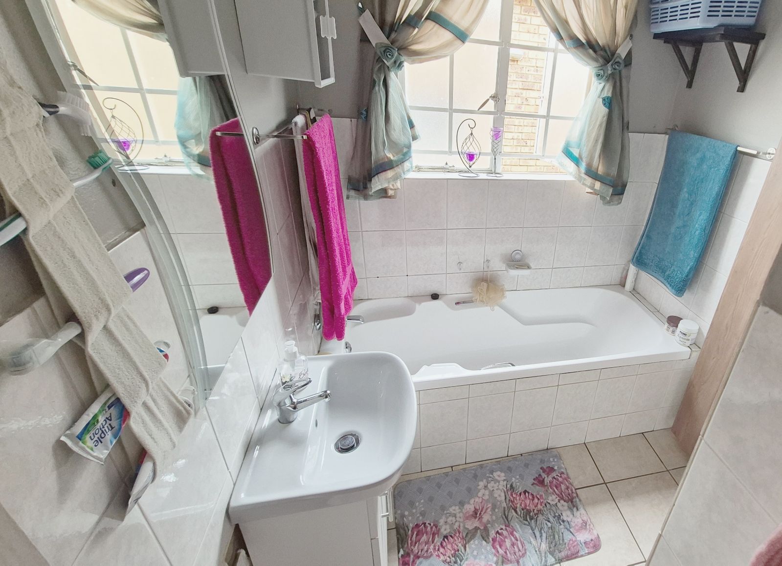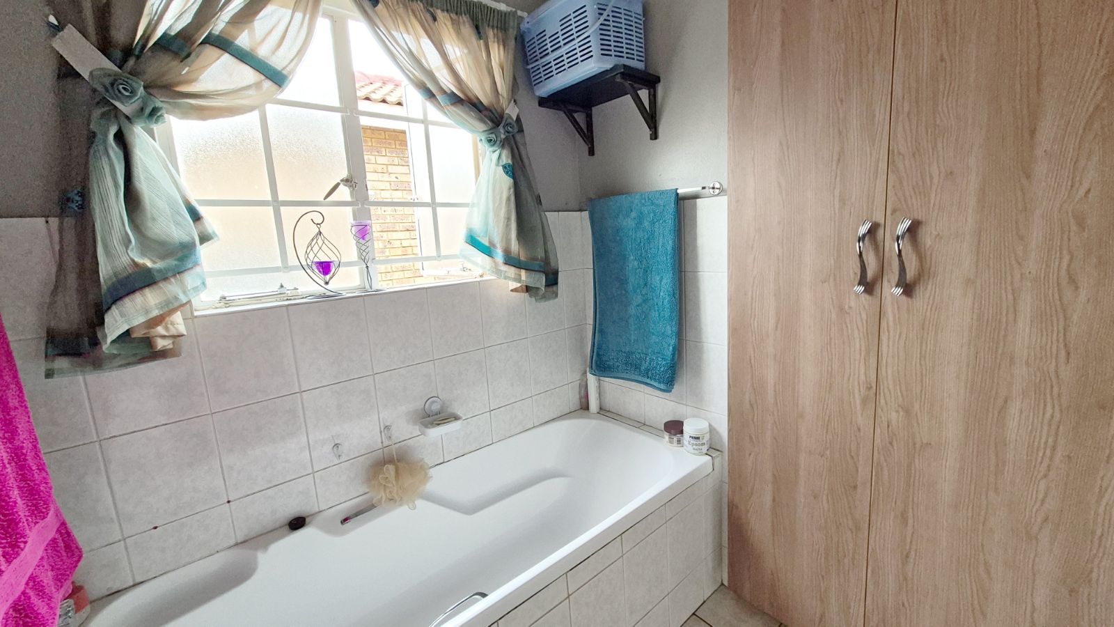 The main bedroom boasts brand-new built-in cupboards and a full bathroom with bath and shower, plus a separate toilet and basin.