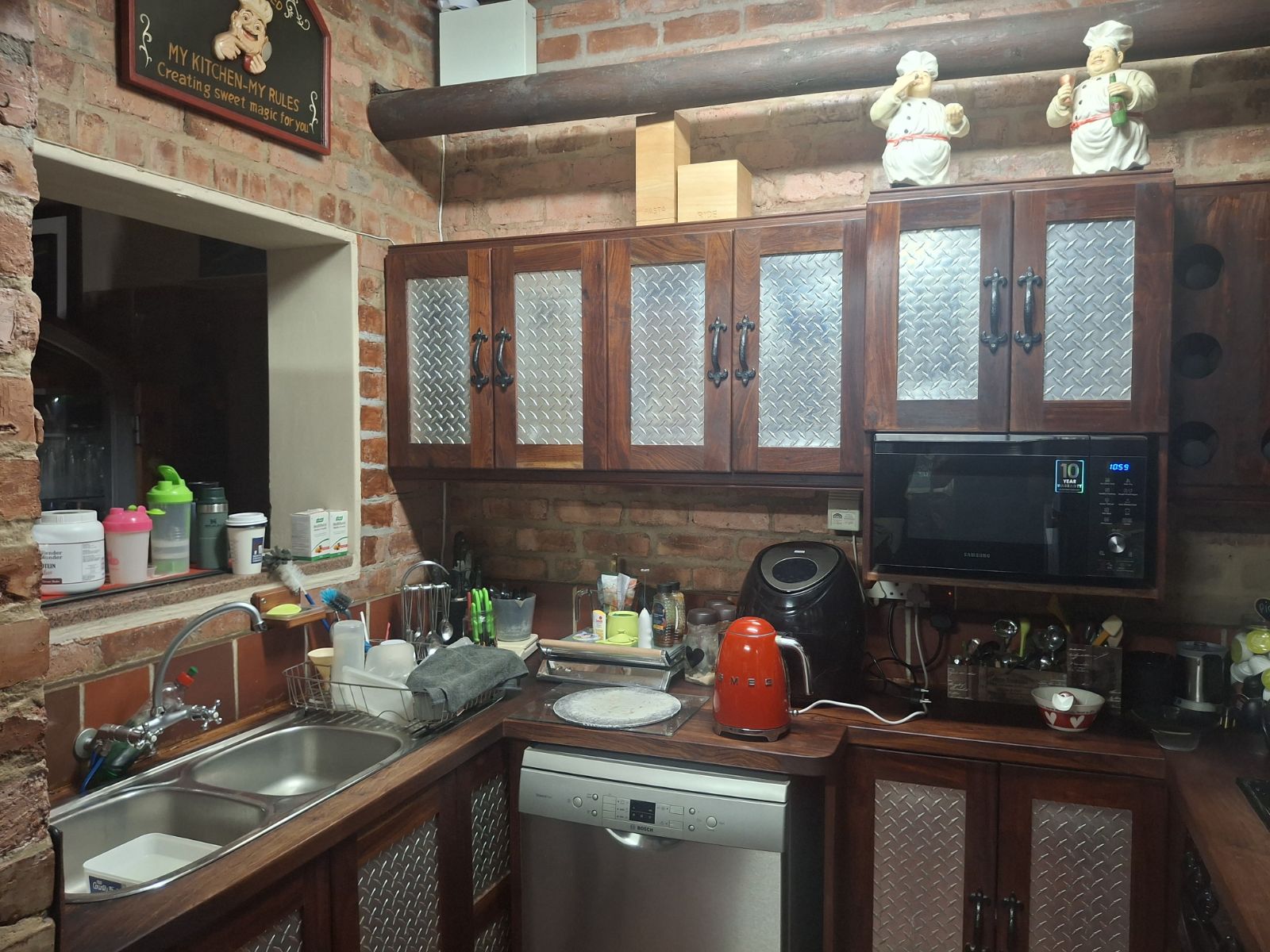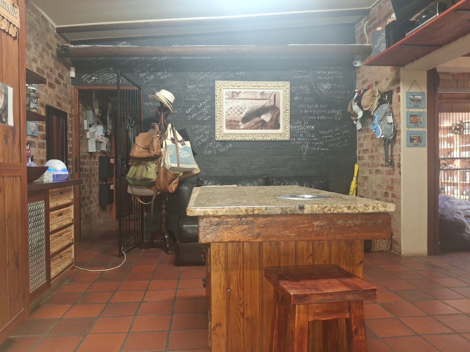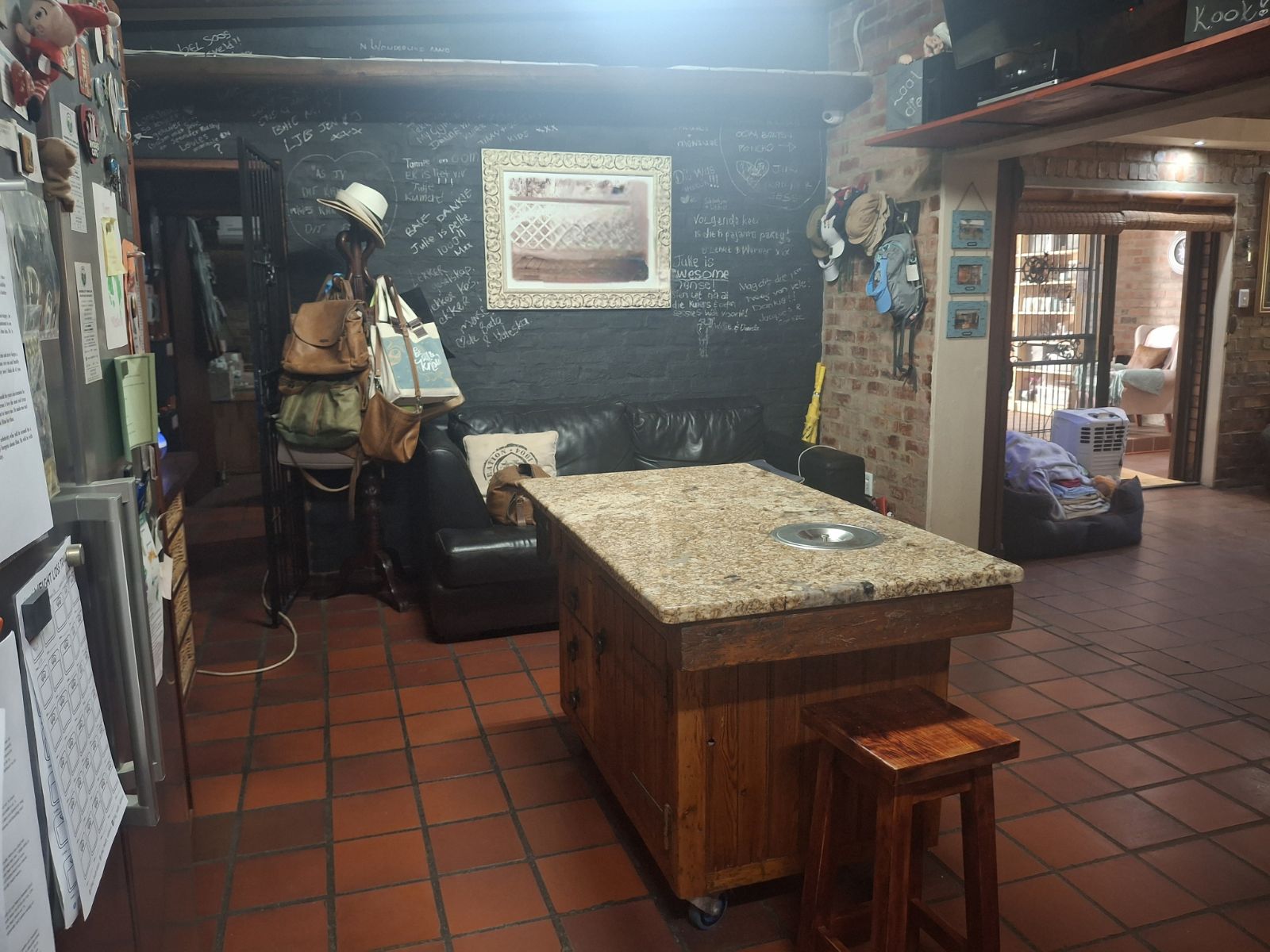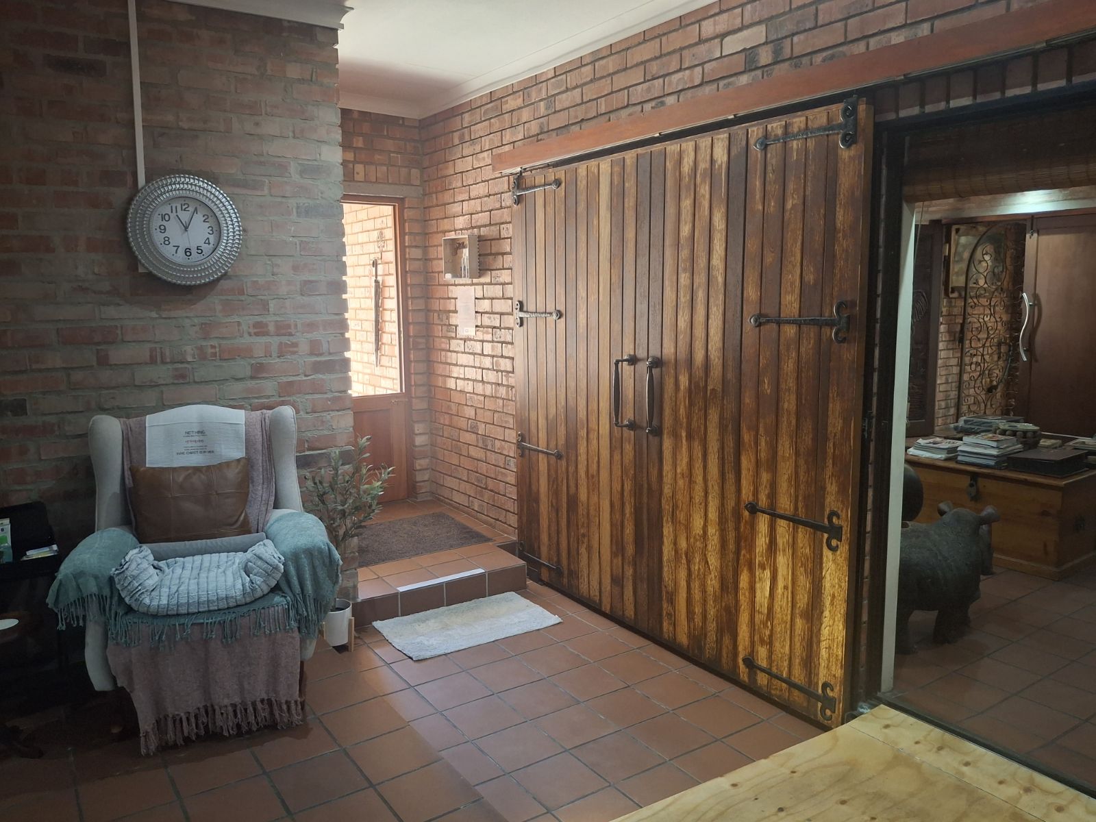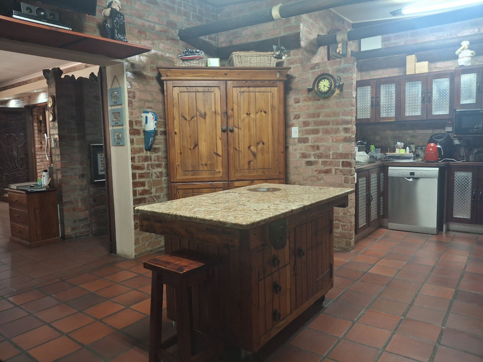 Inside, the home features a large open-plan lounge and braai room that flows naturally into the kitchen and dining area, creating a warm and spacious living environment. A small home office, bar corner and clever layout add even more character.