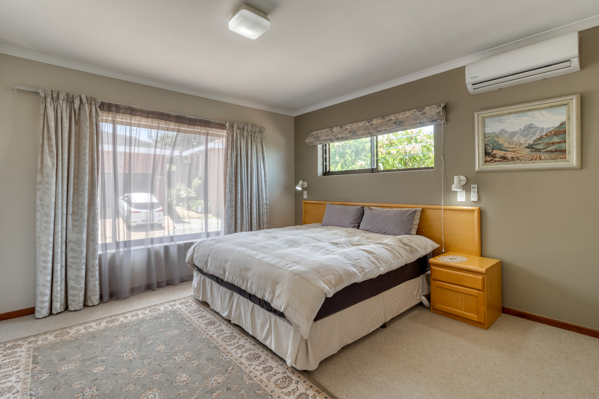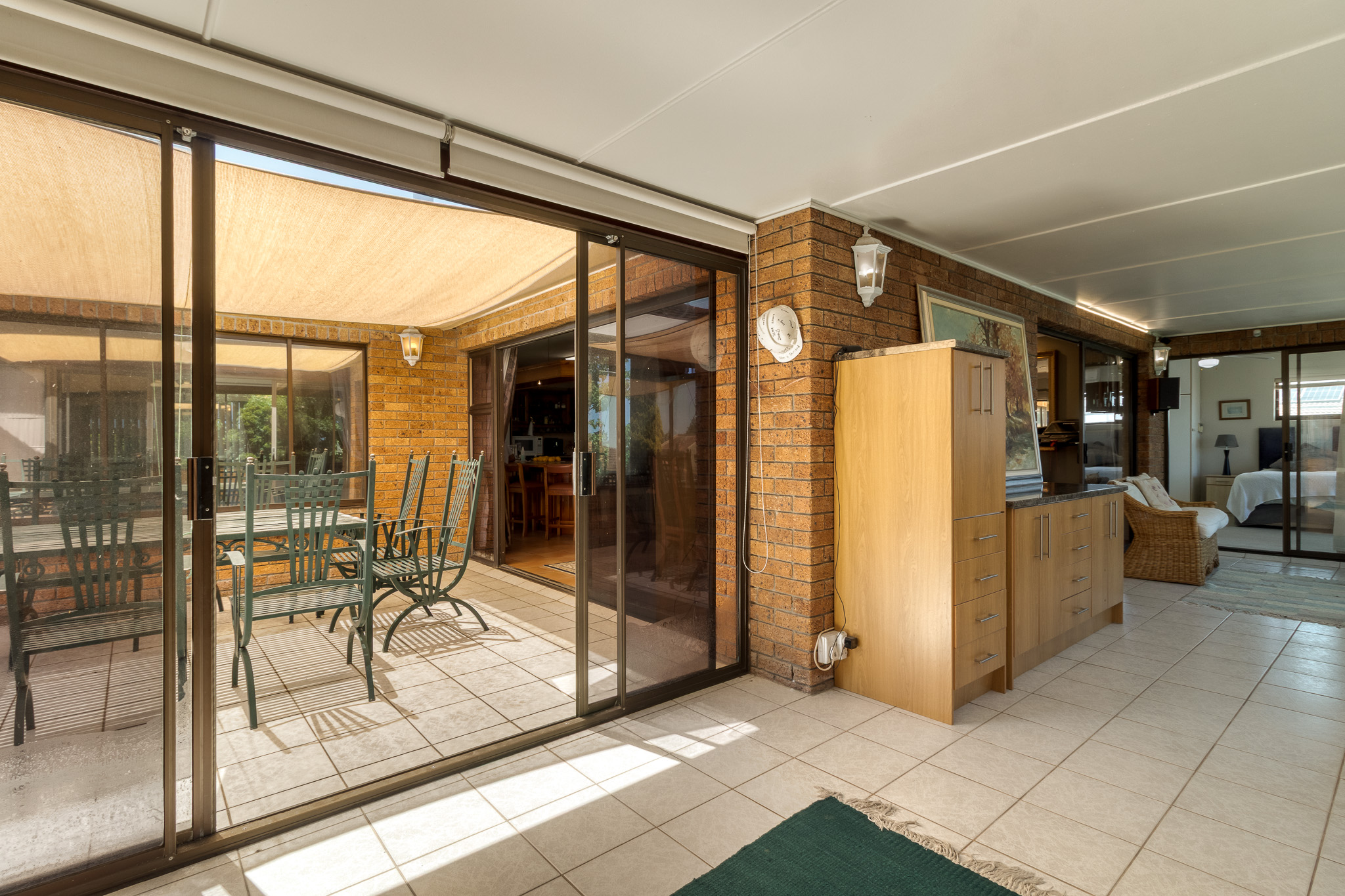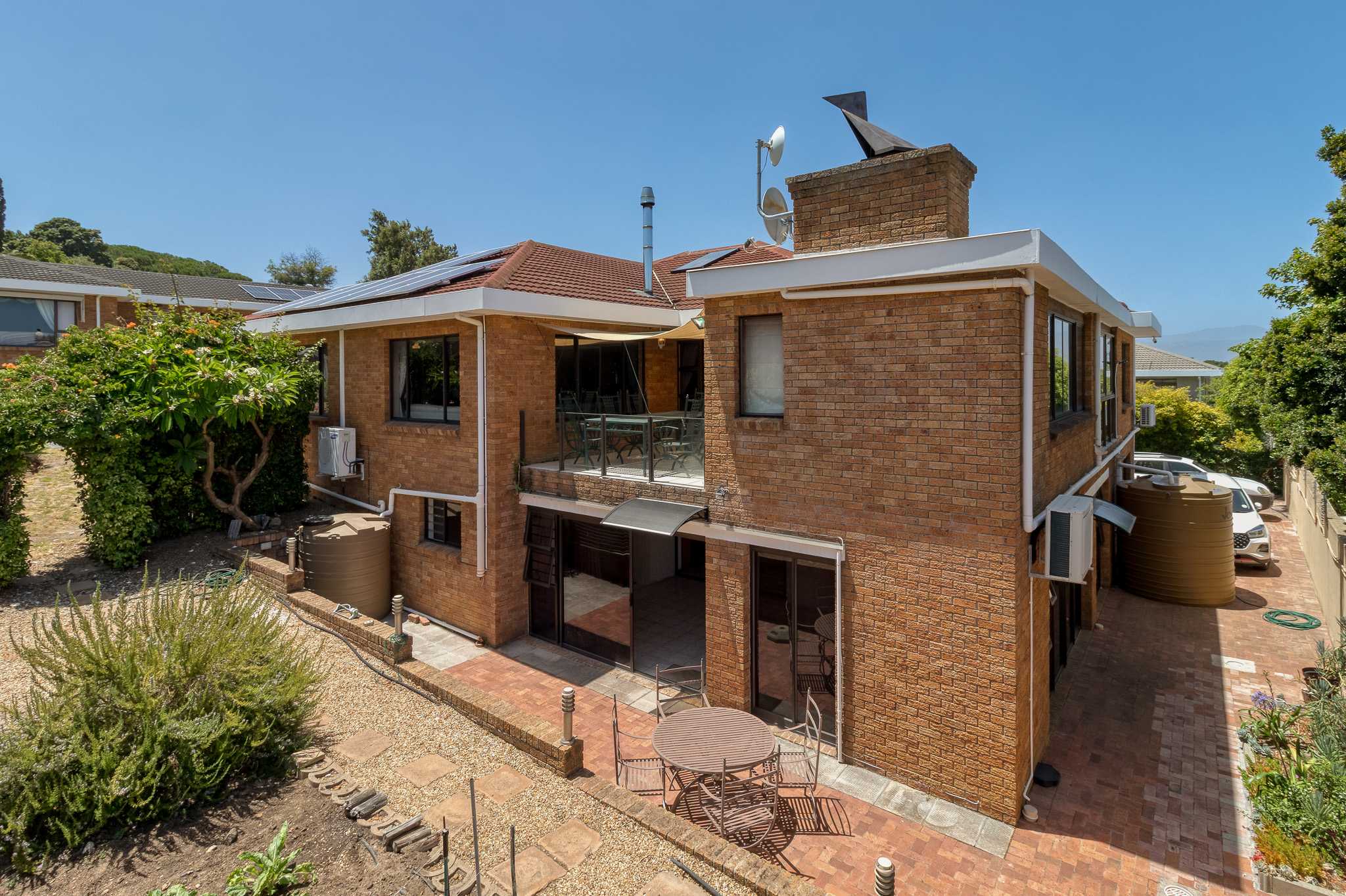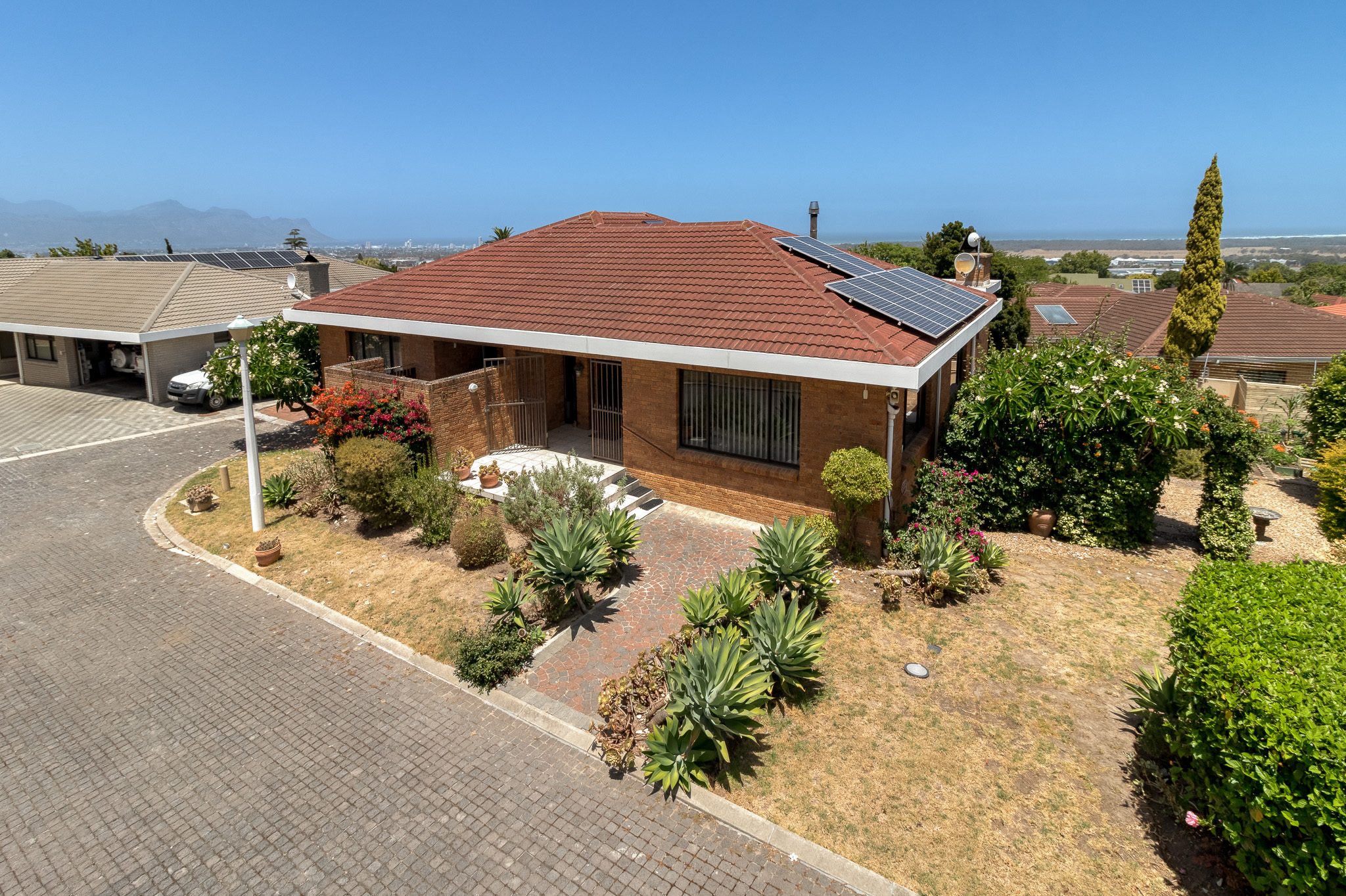 What a stunning opportunity is on offer here in the highly sought after of Die Wingerd in Somerset West. Set in a gated estate of just 8 homes is this beautiful low maintenance residence. The layout is ideal with the large lounge, kitchen, open patio, enclosed braai area and 2 en-suite bedrooms all situated on one level. The beautiful sea views from this level make it a real oasis to relax and enjoy everything that Somerset West has to offer. Downstairs has the added bonus of a large flat with its one bedroom, kitchen and lounge diner with another outdoor patio to relax. The home also boasts a double garage with plenty of parking on the driveway too for all those visitors that a residence like this will attract when entertaining. The complex is extremely well run with a low levy and excellent security. Just some of the many extras includes a solar, battery and inverter system, airconditioning and a water flitration system. There are also additonal store rooms.