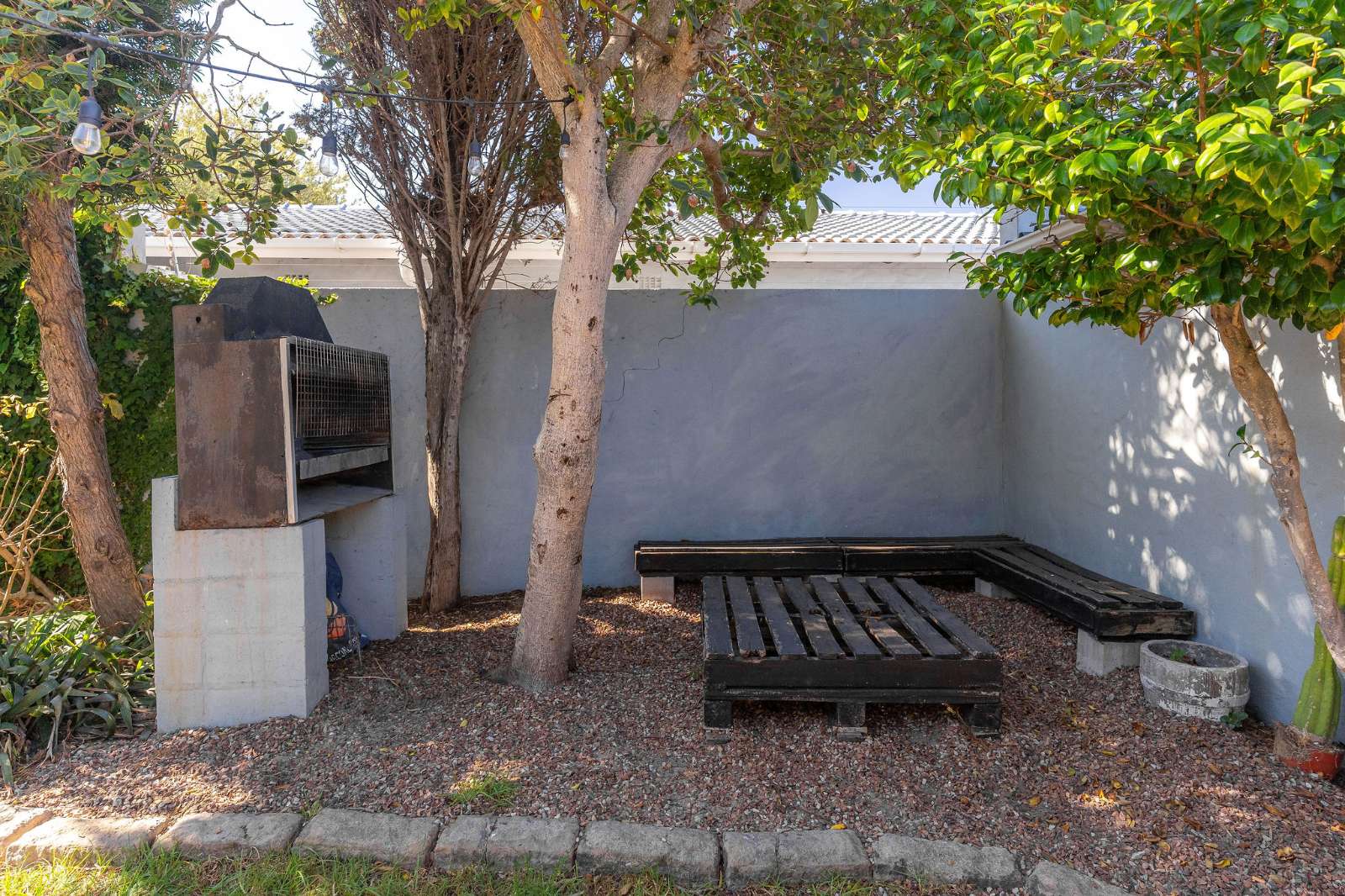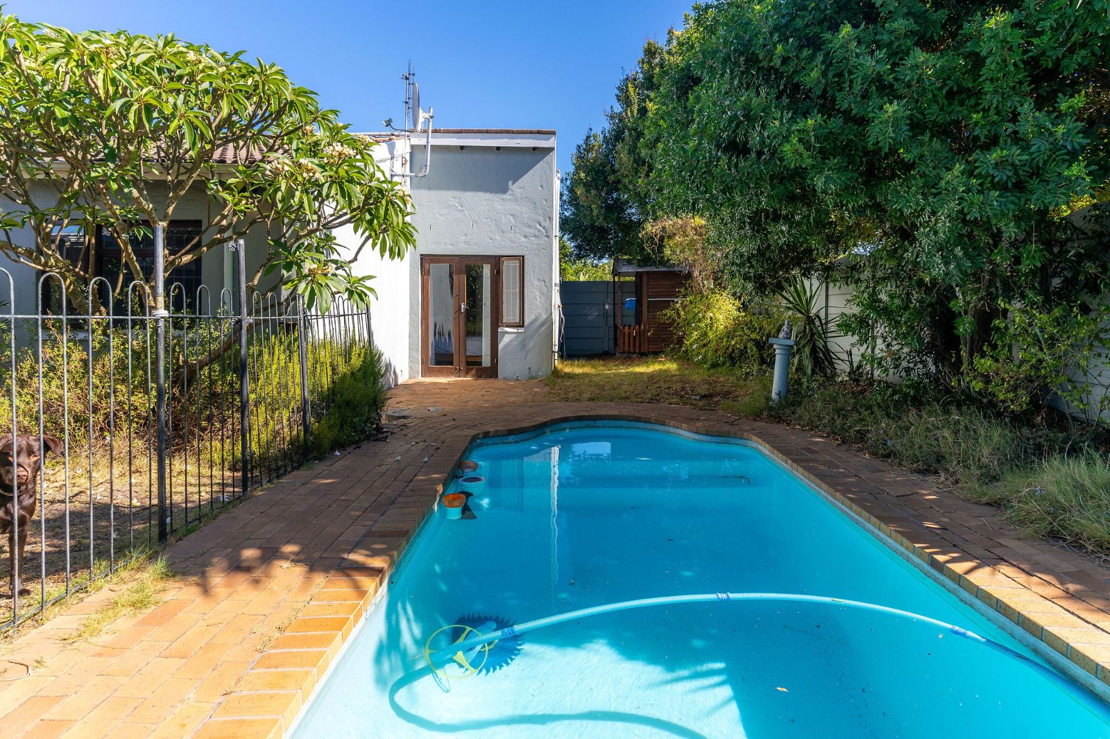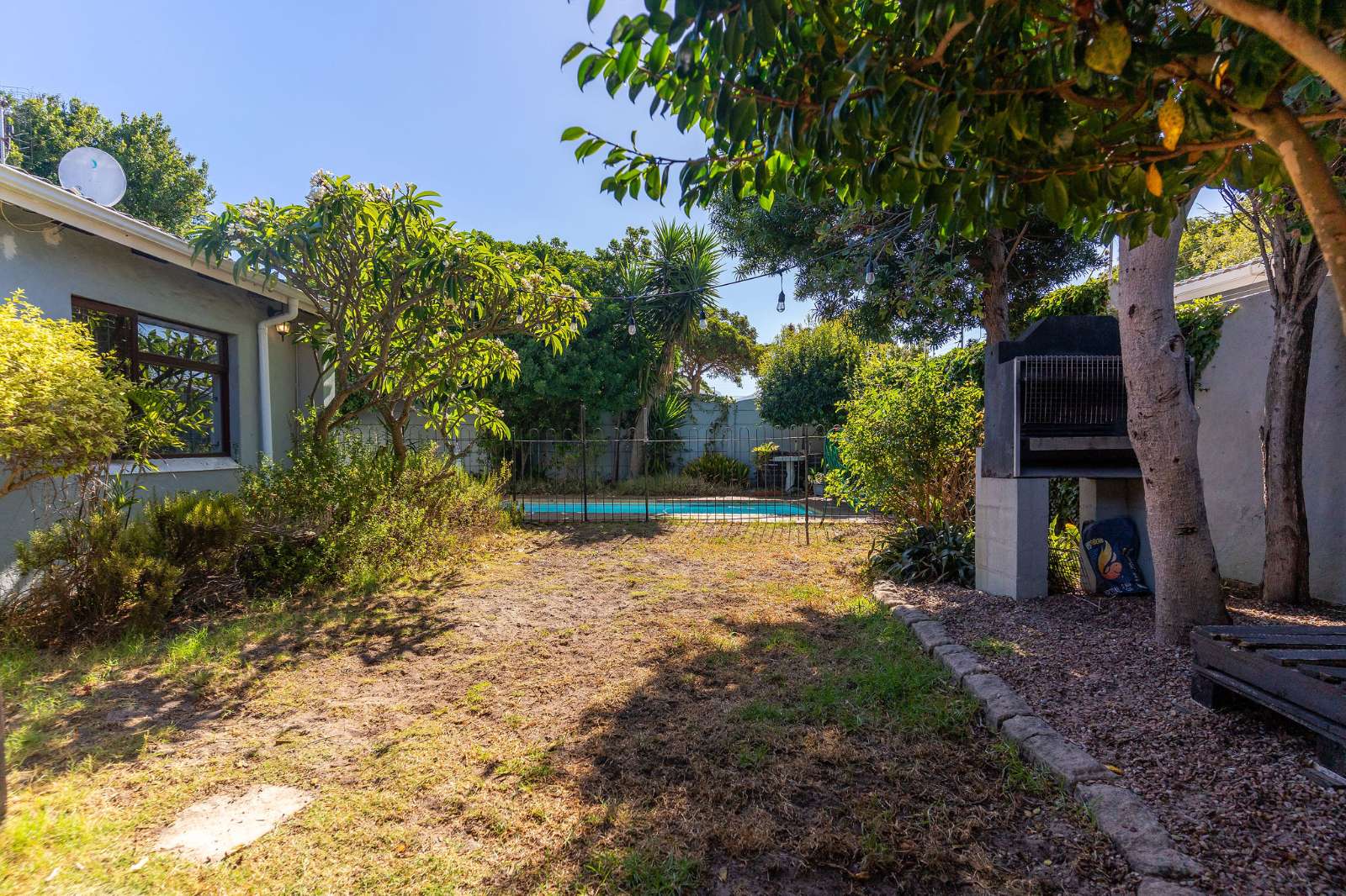 The second and third bedrooms enjoy morning sunshine, offer built-in cupboards and share a family bathroom. The main bedroom is en suite and opens directly onto the garden and pool. A sheltered braai area provides an inviting space for relaxed entertaining with family and friends.