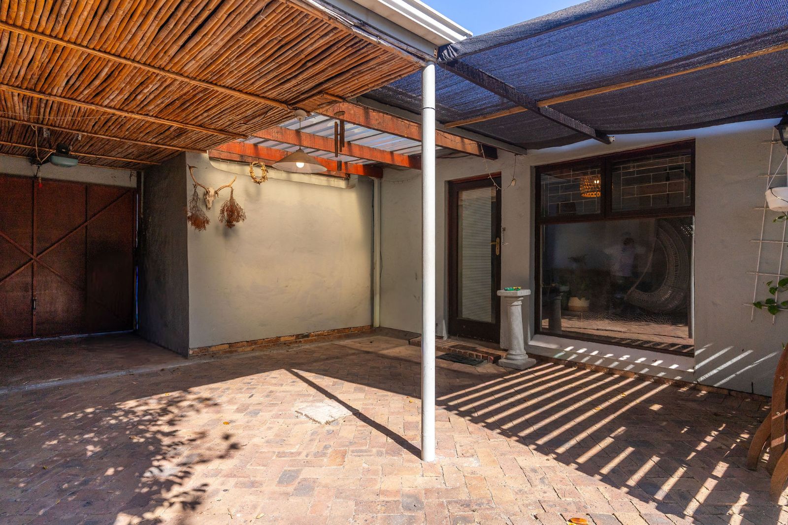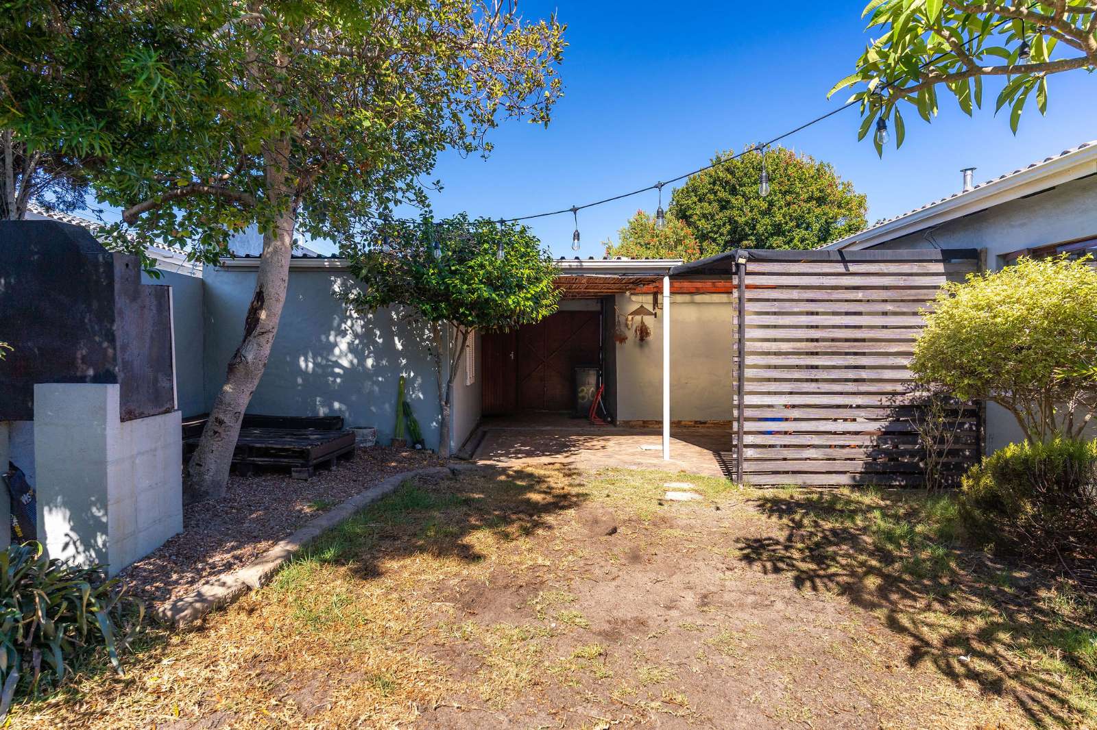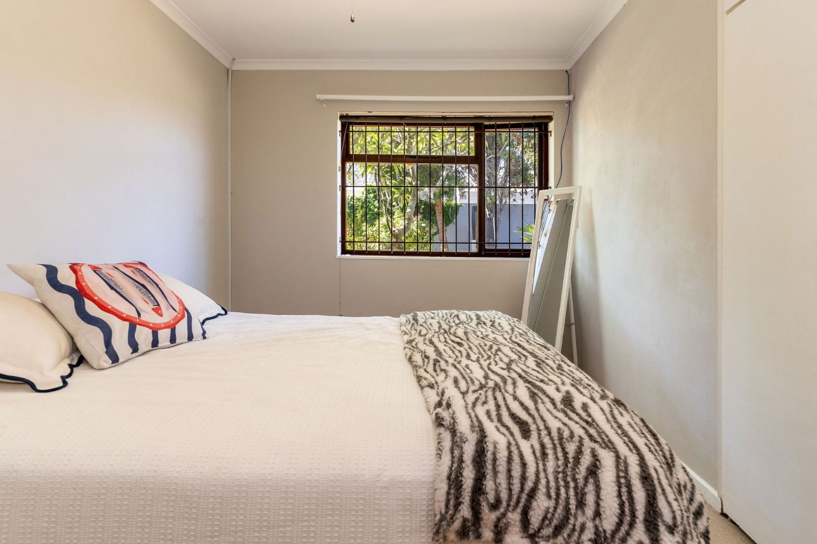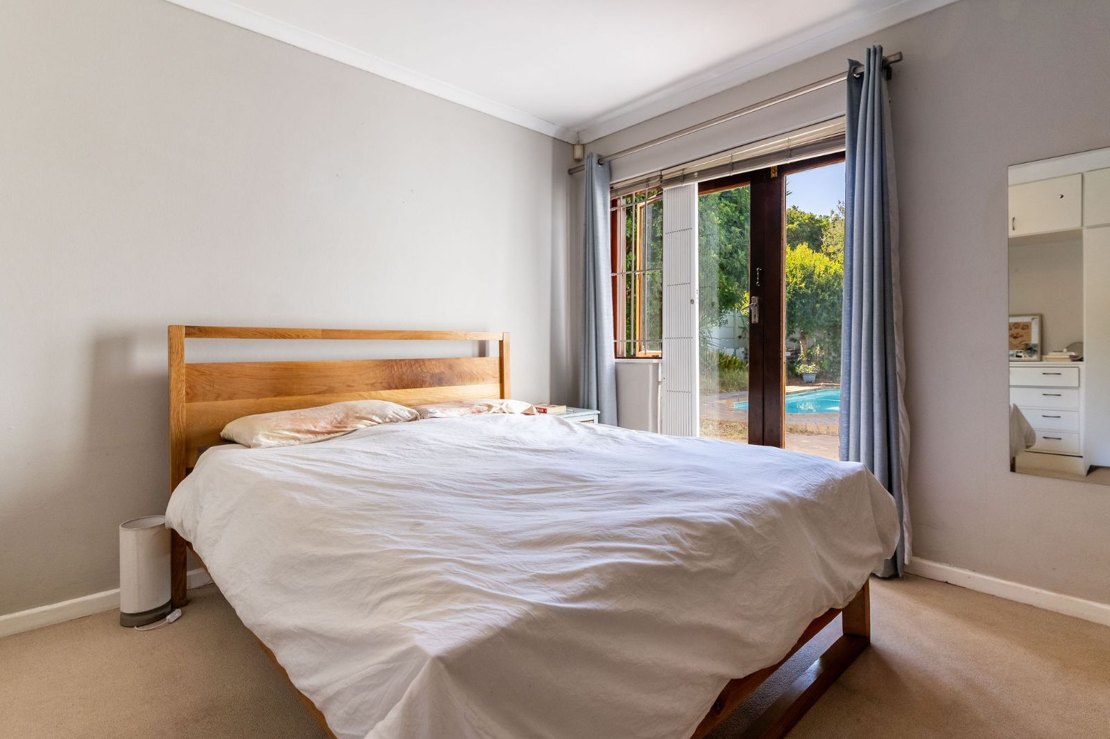 The second and third bedrooms enjoy morning sunshine, offer built-in cupboards and share a family bathroom. The main bedroom is en suite and opens directly onto the garden and pool. A sheltered braai area provides an inviting space for relaxed entertaining with family and friends.