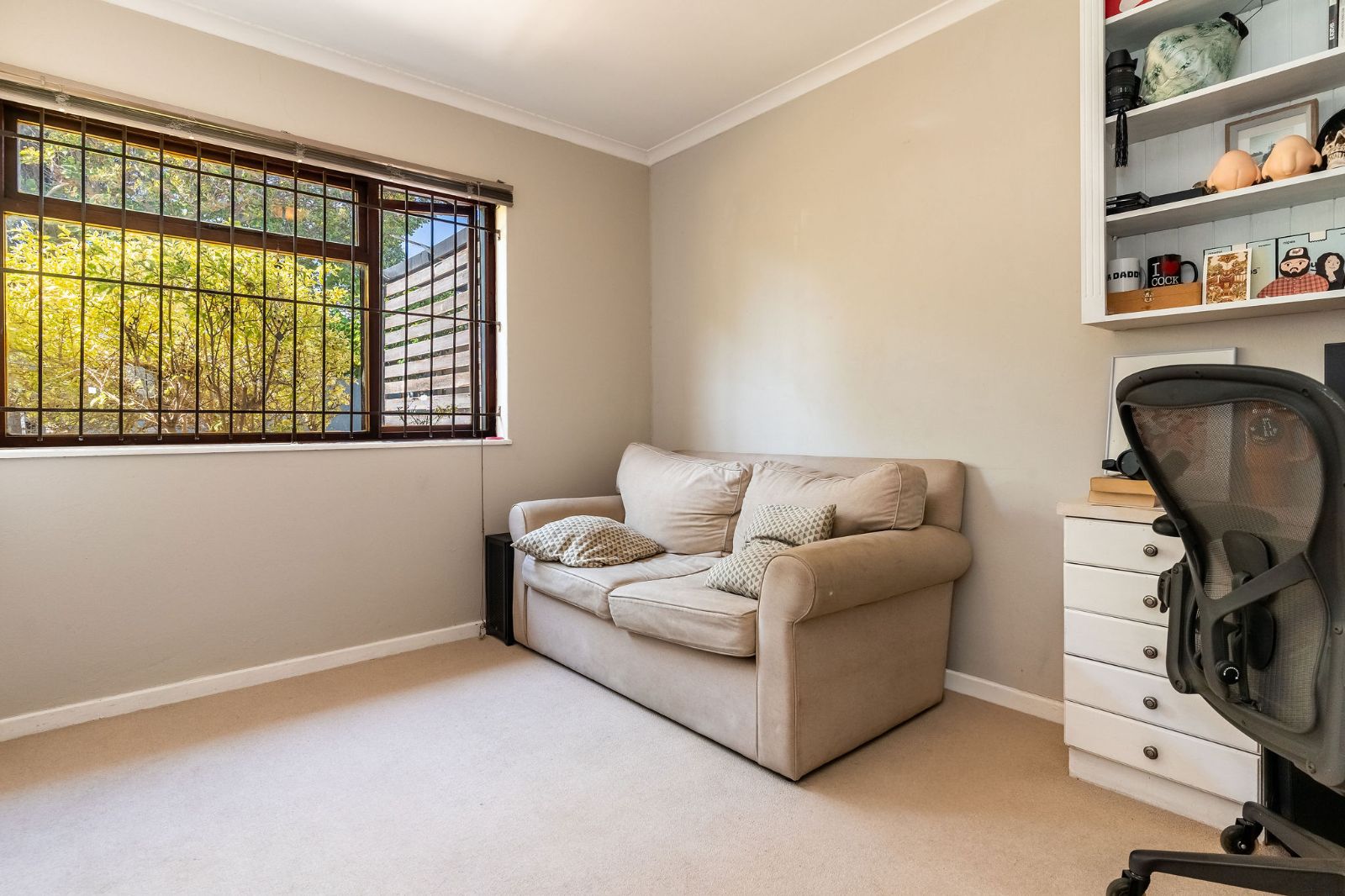 Delightful three-bedroom home, all on one level, offering easy living with a low-maintenance garden and sparkling pool. Tucked away in a quiet, up-and-coming residential pocket bordering Constantia, with a children’s play park conveniently located across the street.