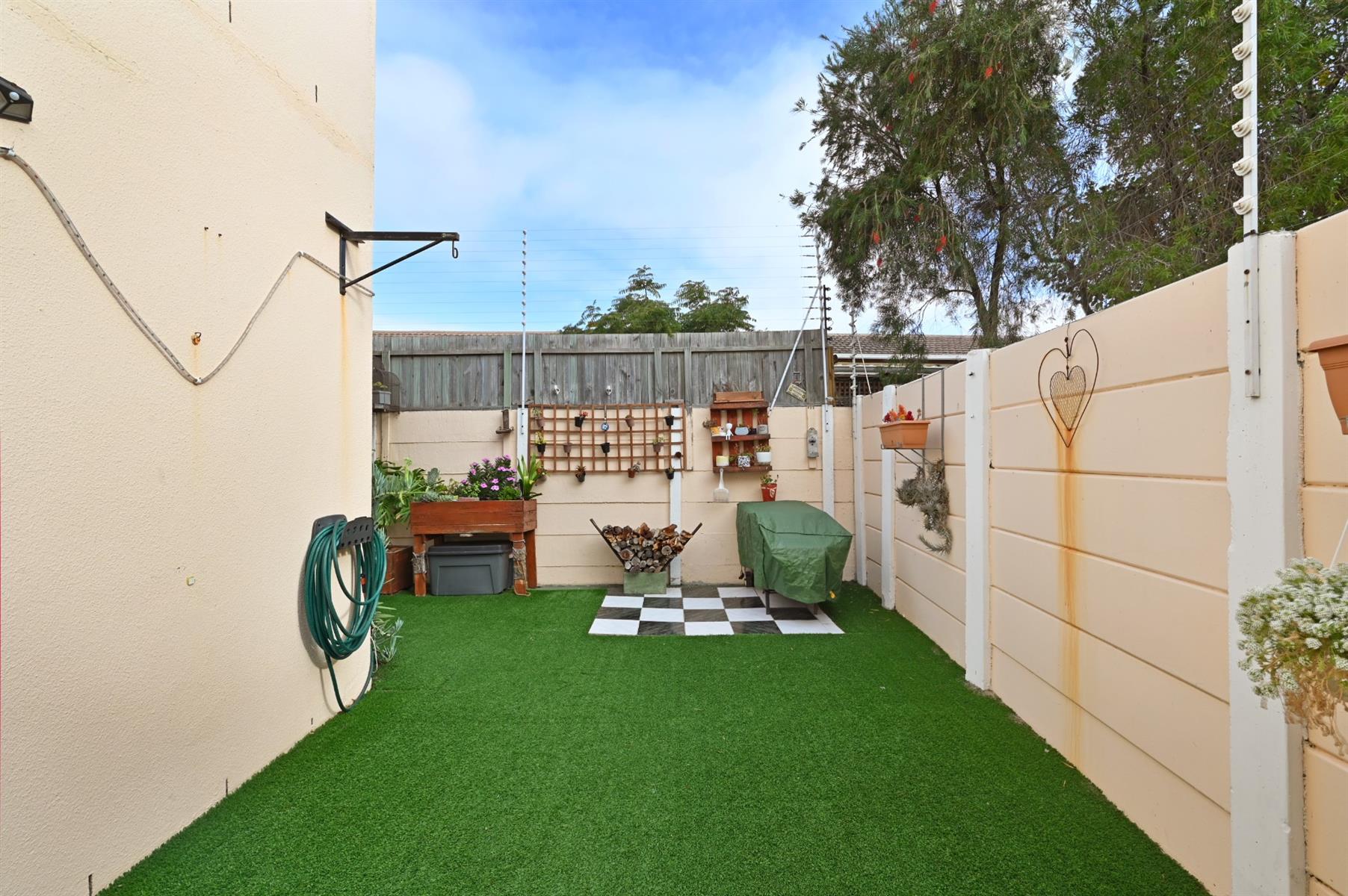 A Wendy house provides extra storage solutions outside, ensuring that this home remains tidy and organised. Located near transport routes in a desirable area of Diep River, this townhouse is a delightful happy home waiting for its new owners.