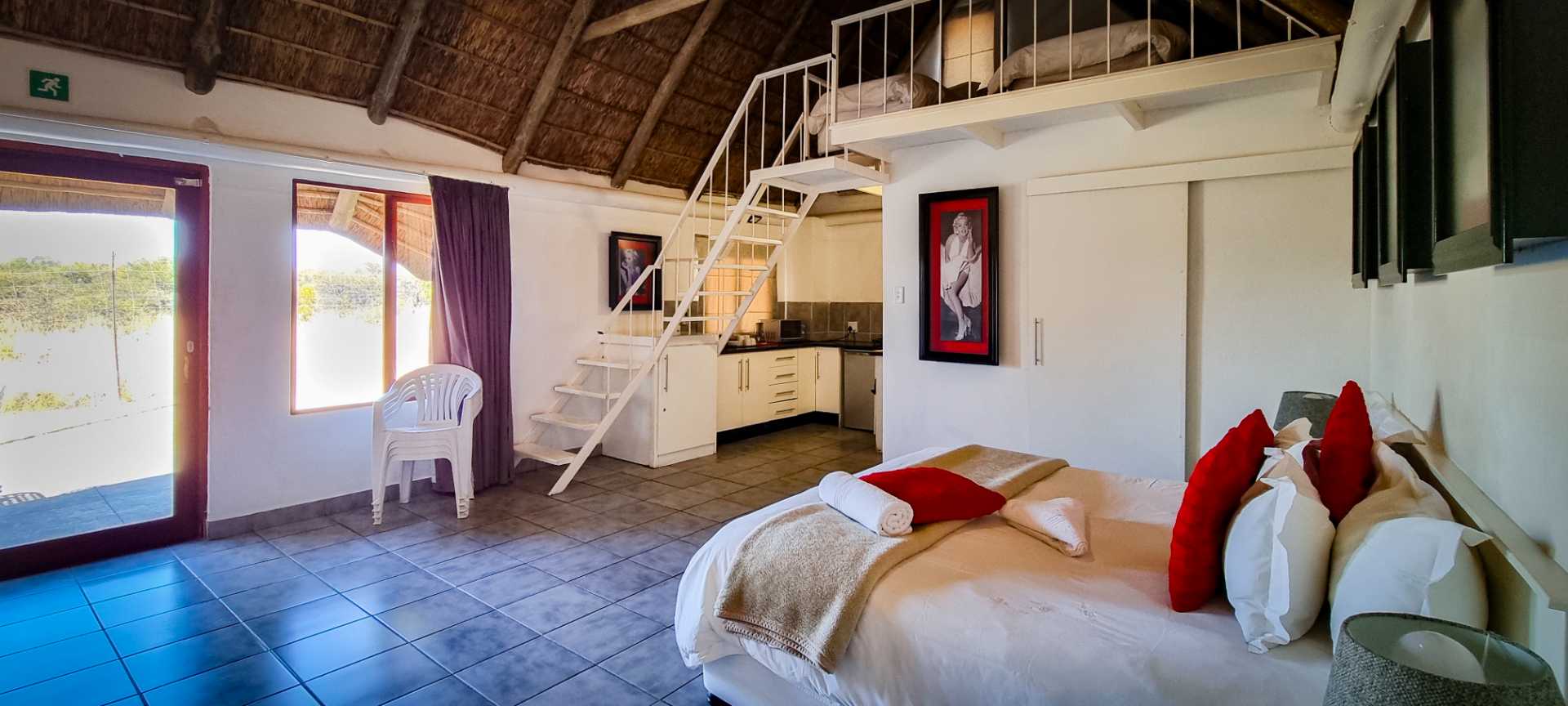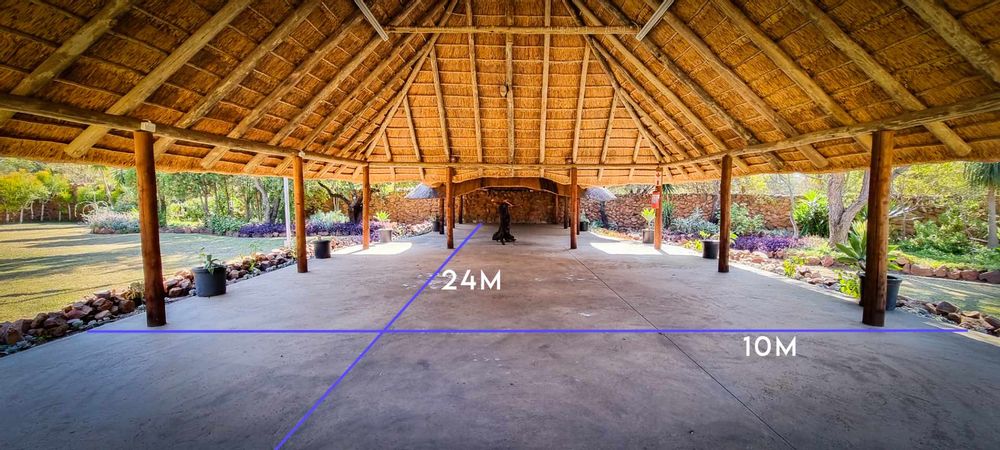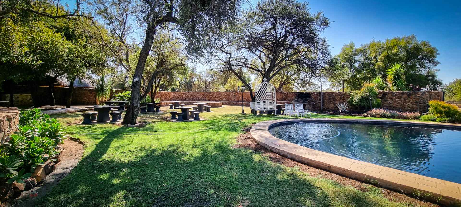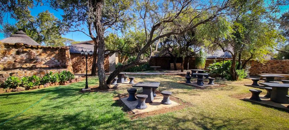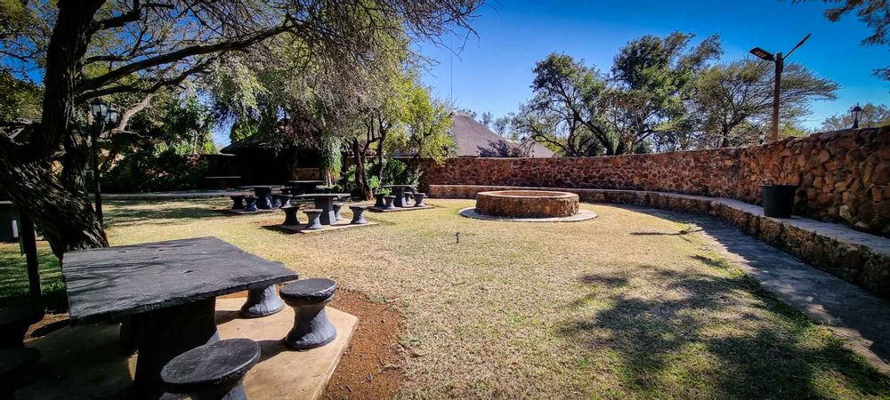 The property's lapa venue/chapel provides an open-sided space perfect for gatherings of up to 100 people, while the garden restaurant with boma creates a picturesque setting for weddings, birthdays, or any celebration.