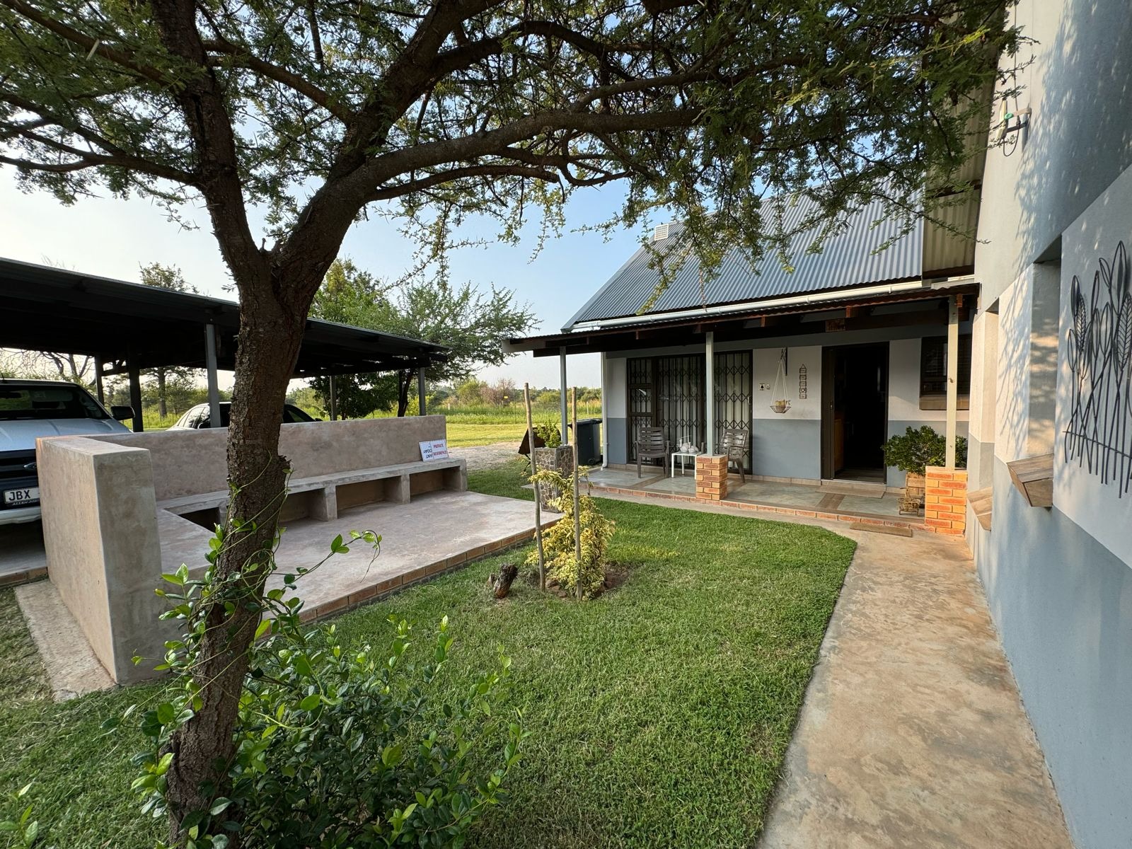Main House with 2 en-suite bedrooms, dream kitchen, open-plan living, 2 studies, solar power, and a Boma.