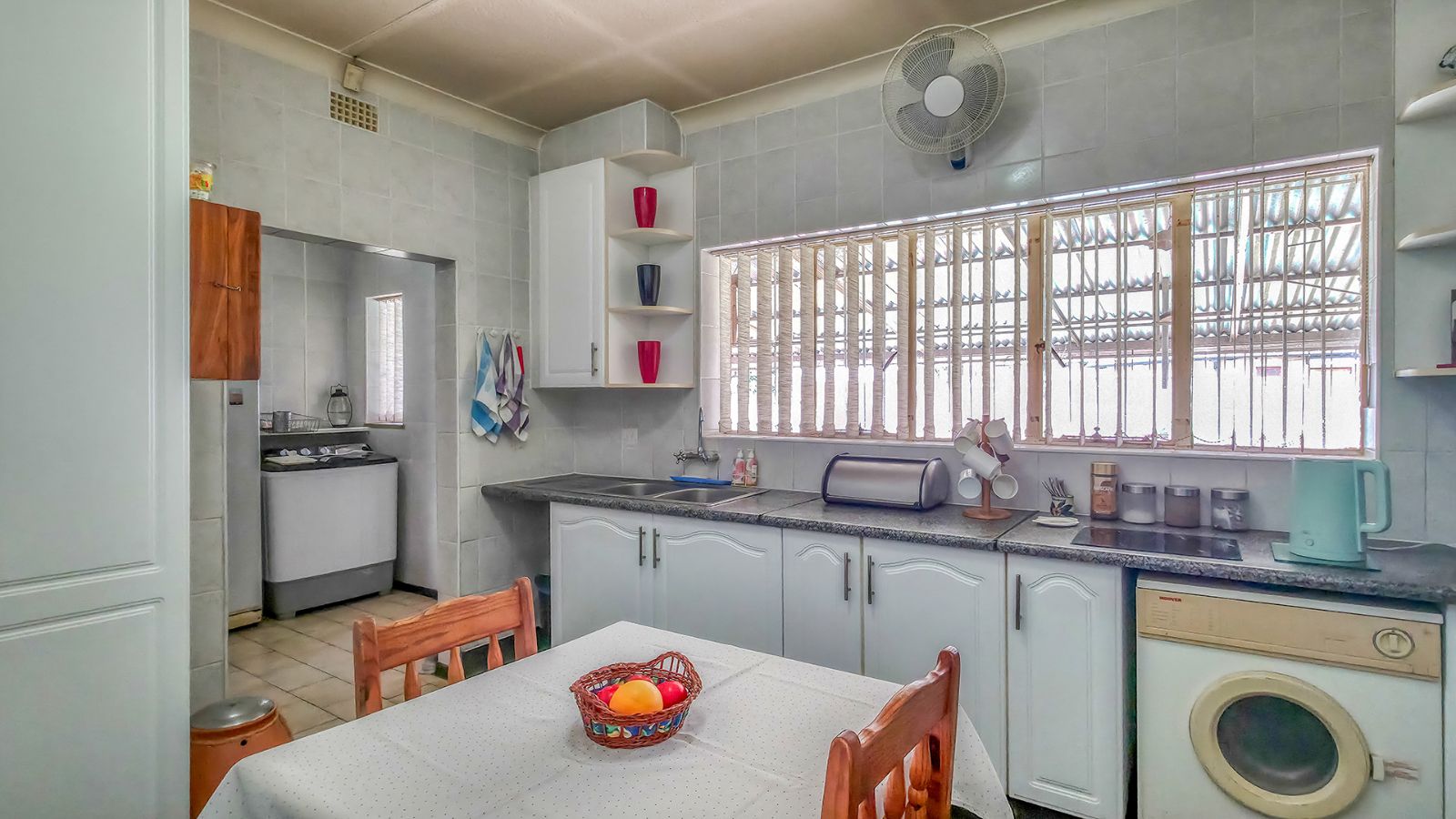 You enter the home through a large entrance hall that leads to a comfortable lounge. A covered stoep with security trellis and a lock-up burglar gate offers a secure, sheltered area that could even be enclosed to enlarge the living space.