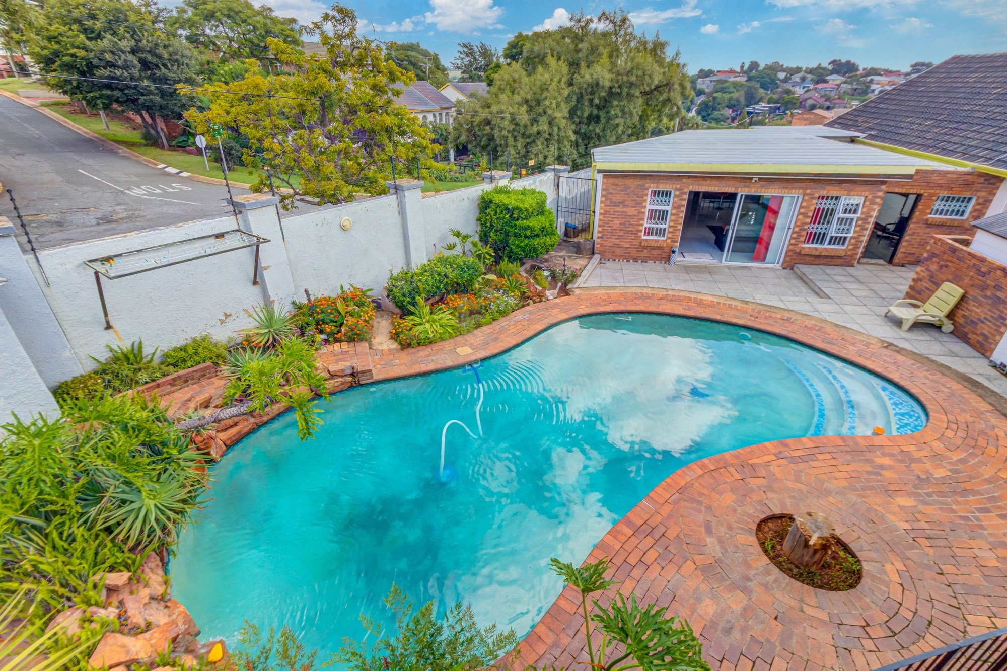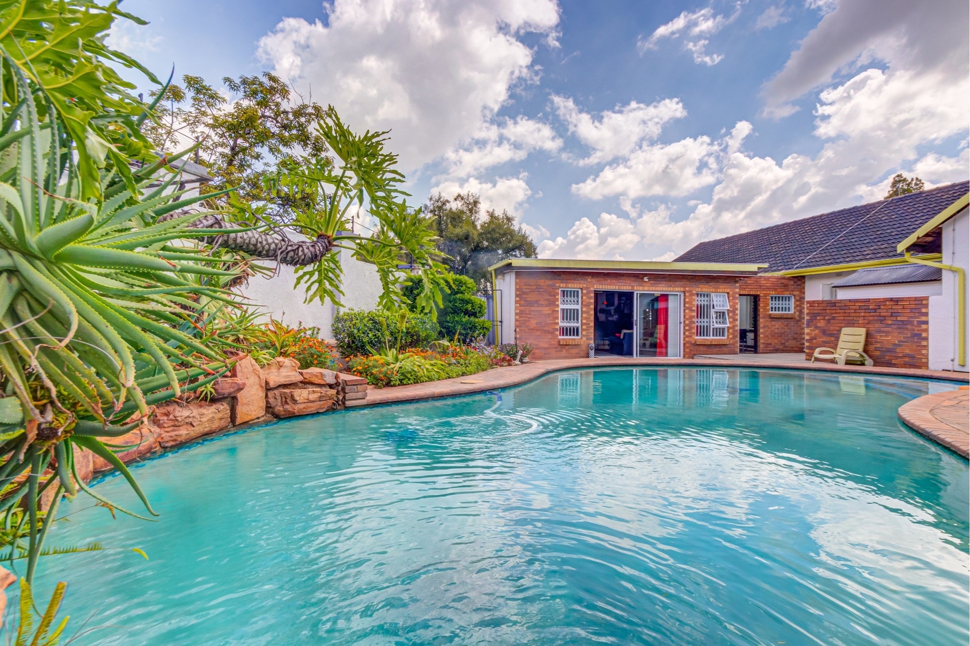 Adding to the property`s versatility is a self-contained bachelor flatlet located above the double automated garage. With private access, this unit is ideal for guests, extended family, professional use, or generating rental income. The garage is complemented by a dedicated tool or storage room, while the expansive paved driveway can accommodate up to ten vehicles. A well-placed garden shed provides additional utility.
