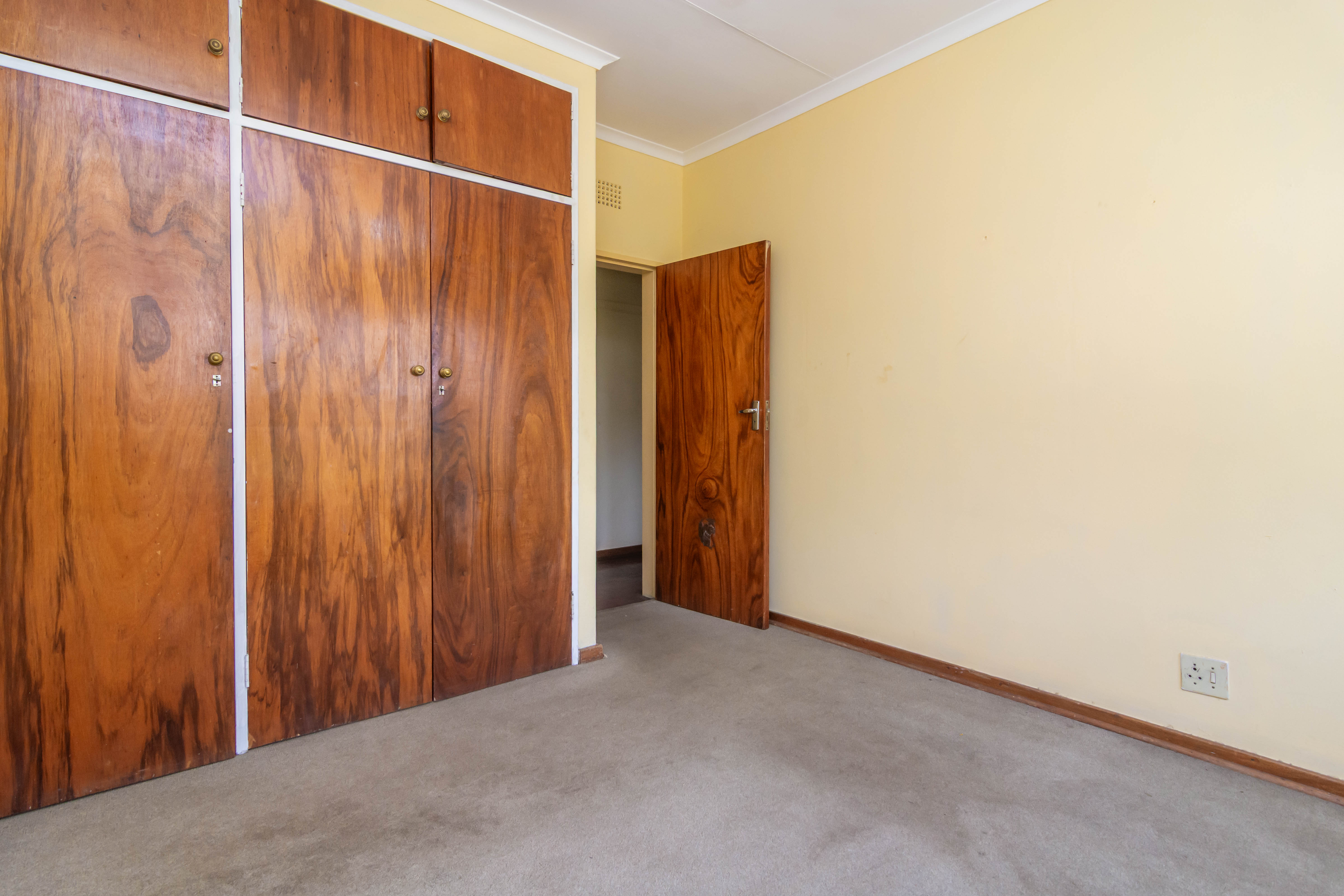 The dining room and passage feature beautiful parquet flooring, while the carpeted bedrooms come fitted with built-in wardrobes for practical comfort. The study, complete with a built-in bookshelf, is perfect for a home office or reading nook.