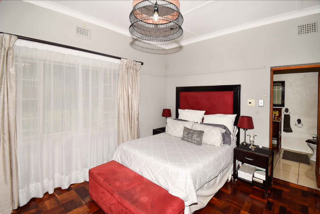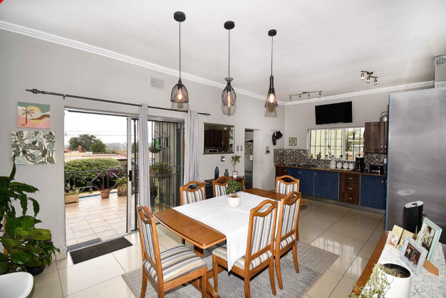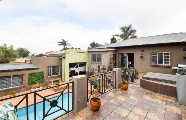 Beautifully upgraded 3-bedroom home with main en-suite, Rhodesian Teak floors, and two warm living areas (one with Jetmaster fireplace, one with underfloor heating). Modern kitchen with scullery, dining room opening to patio with jacuzzi, and an indoor braai room with bathroom and balcony overlooking the pool.