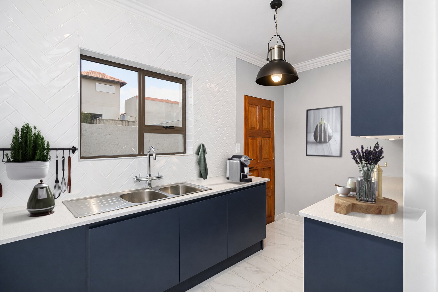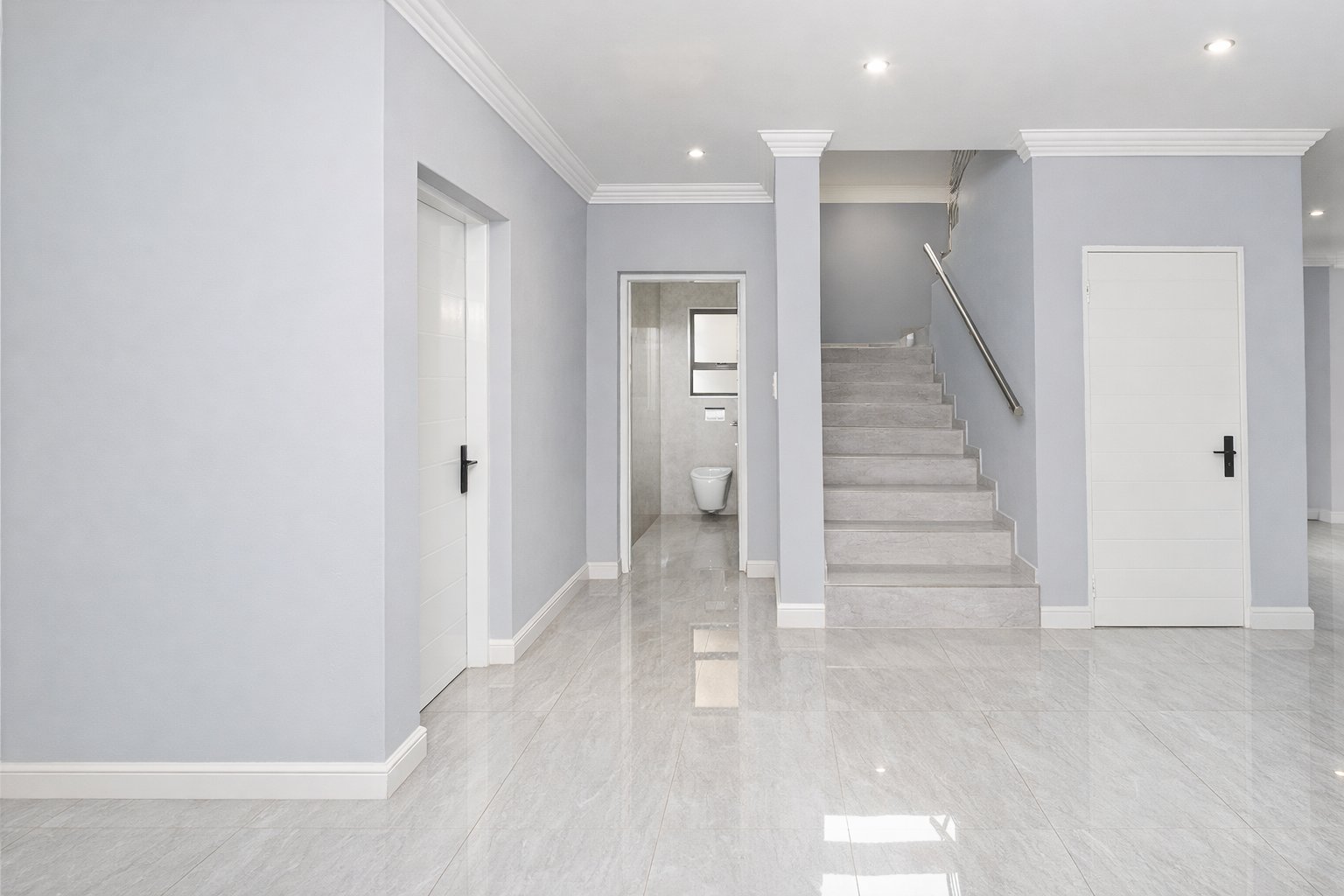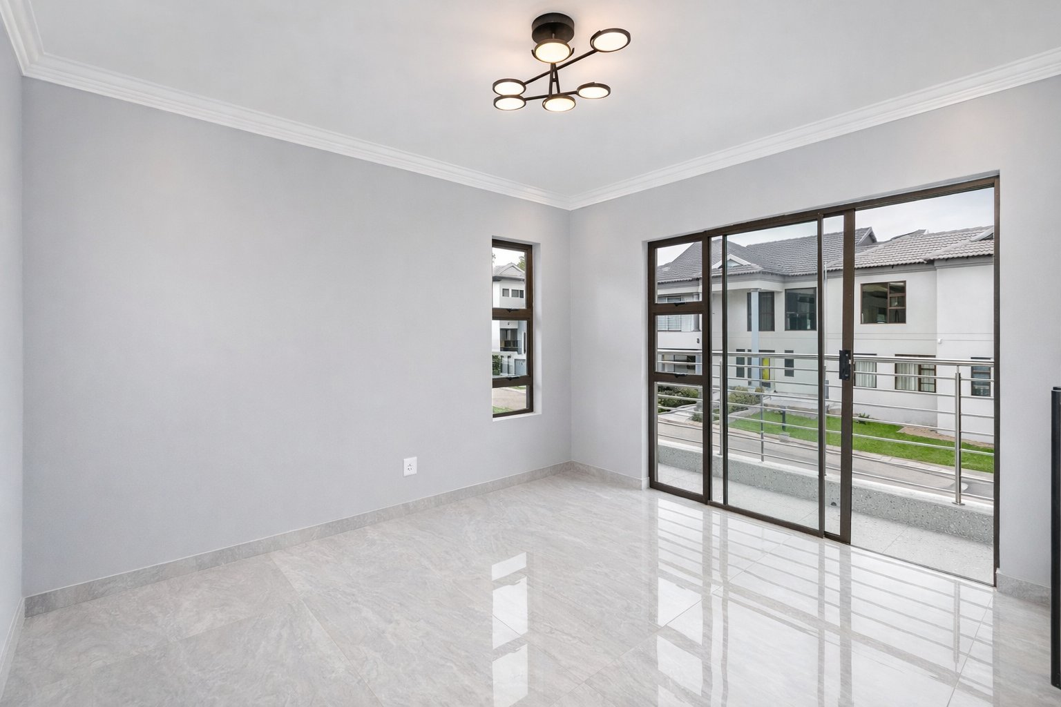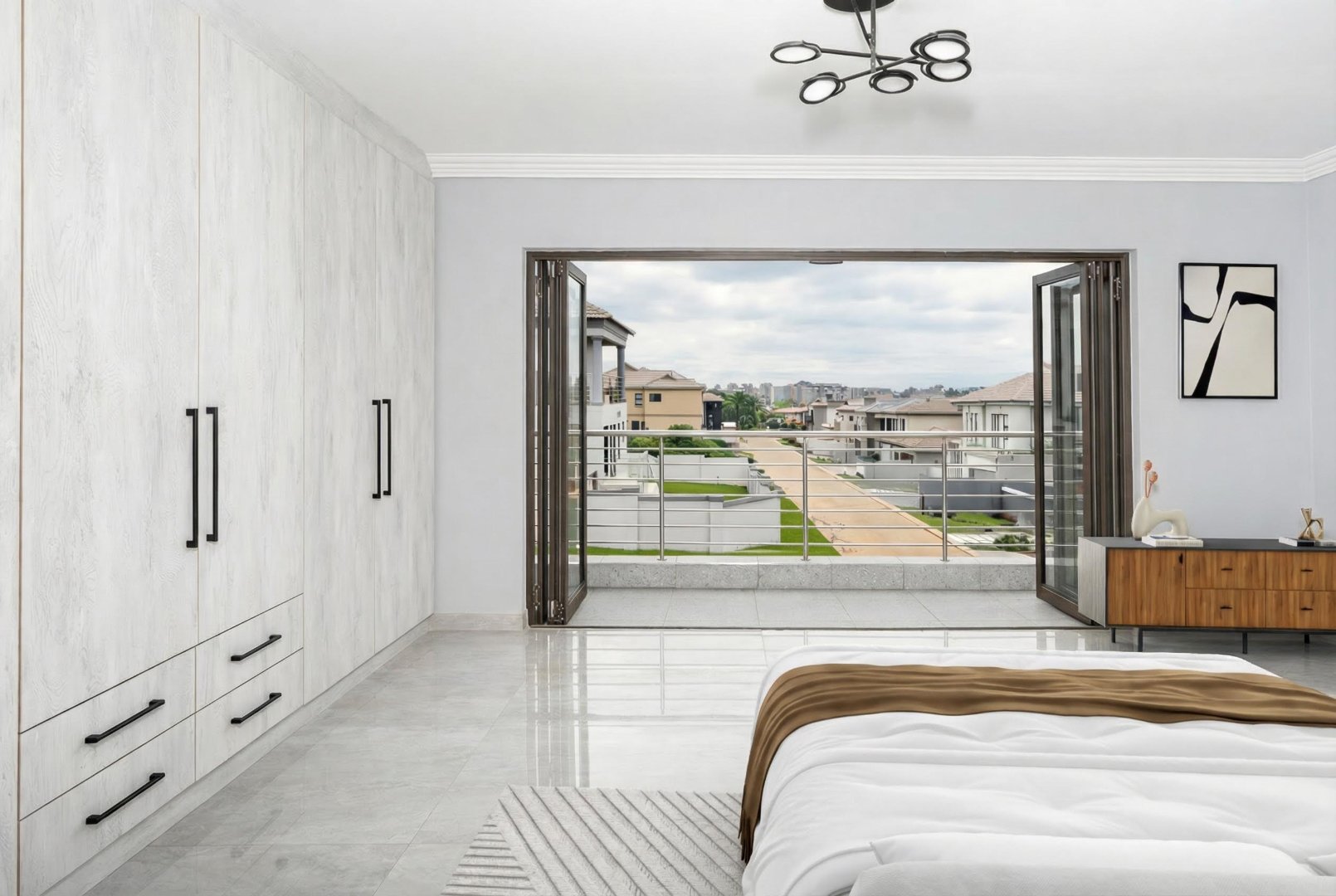 This newly built, digitally staged modern home in the sought-after Ruimsig Country Estate offers refined living with generous proportions and elegant finishes throughout. A welcoming entrance hall leads into an open-plan living space featuring seamless, high-gloss tiling that flows consistently through the home.